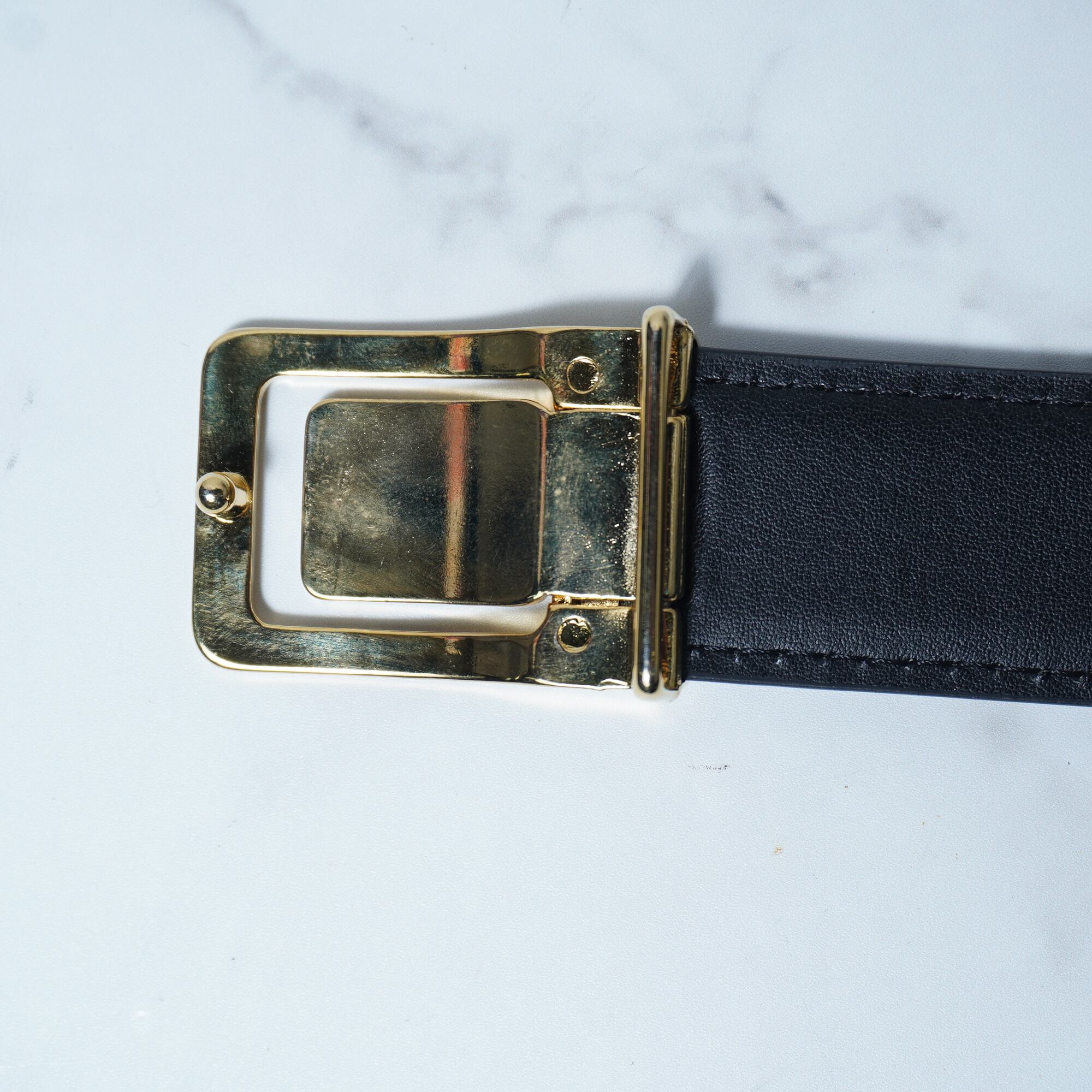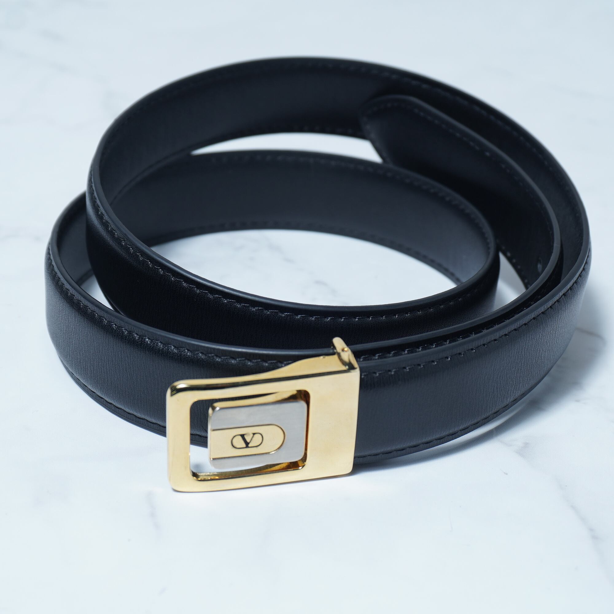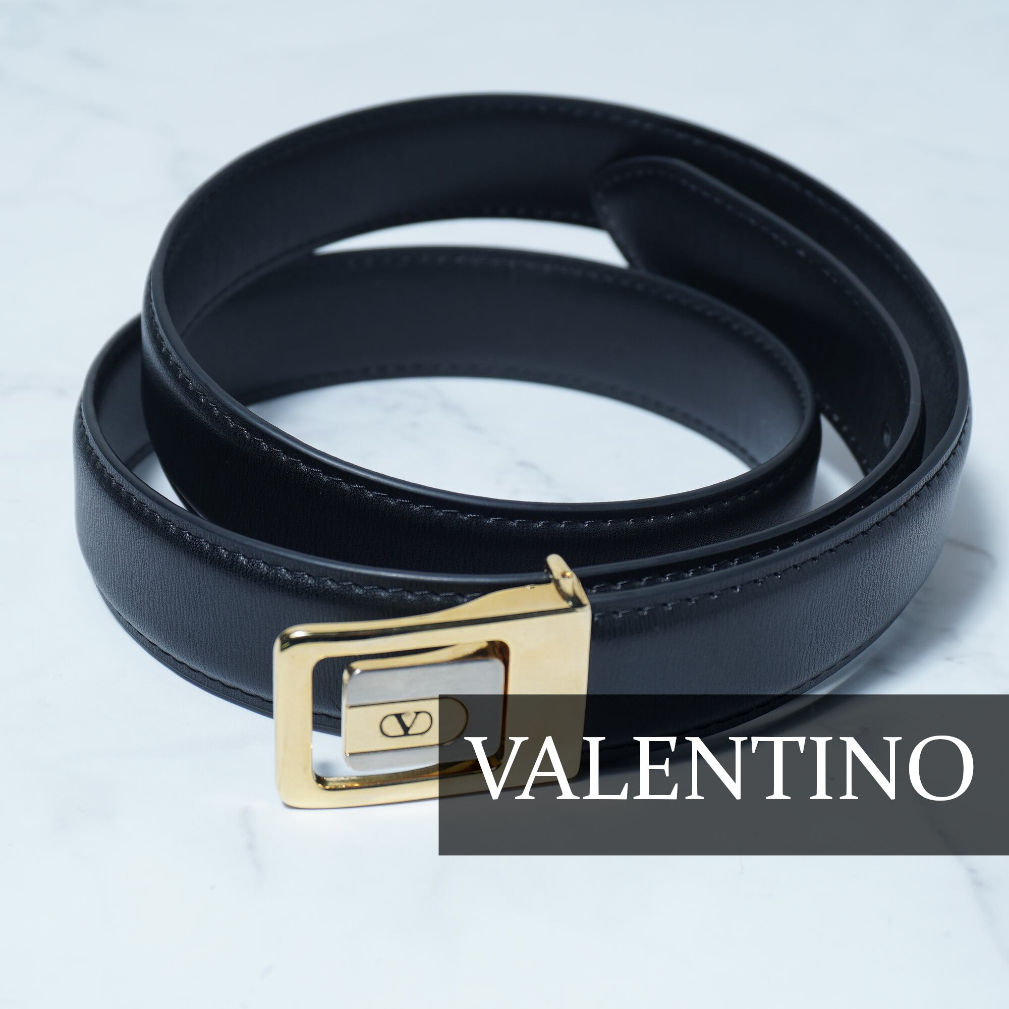 ・洗練されたデザインが魅力のヴァレンティノロゴ入ゴールドバックルレザーベルト