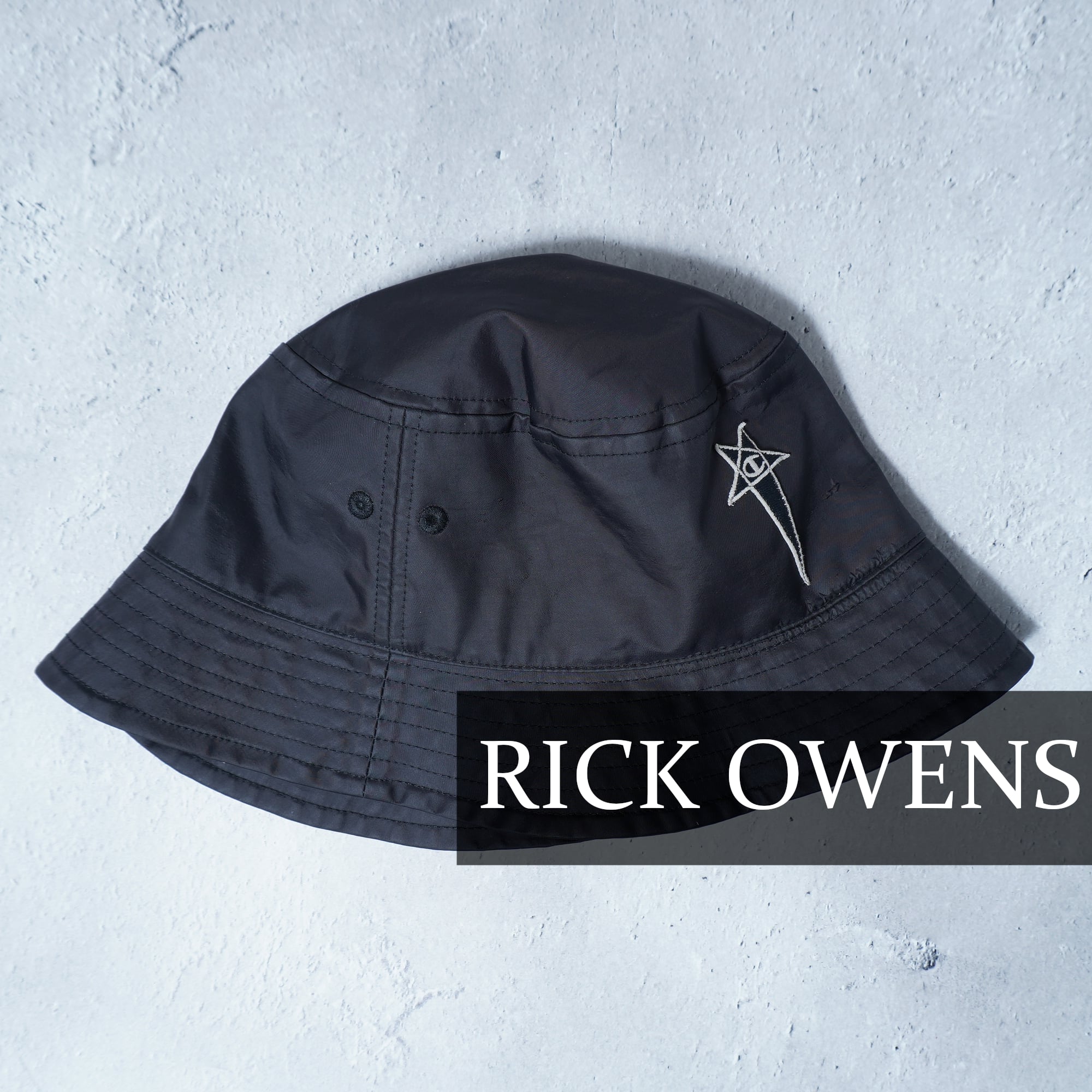 【Rick Owens × Champion】リックオウエンス×チャンピオン タグ付ペンタグラムロゴナイロンバケットハット black