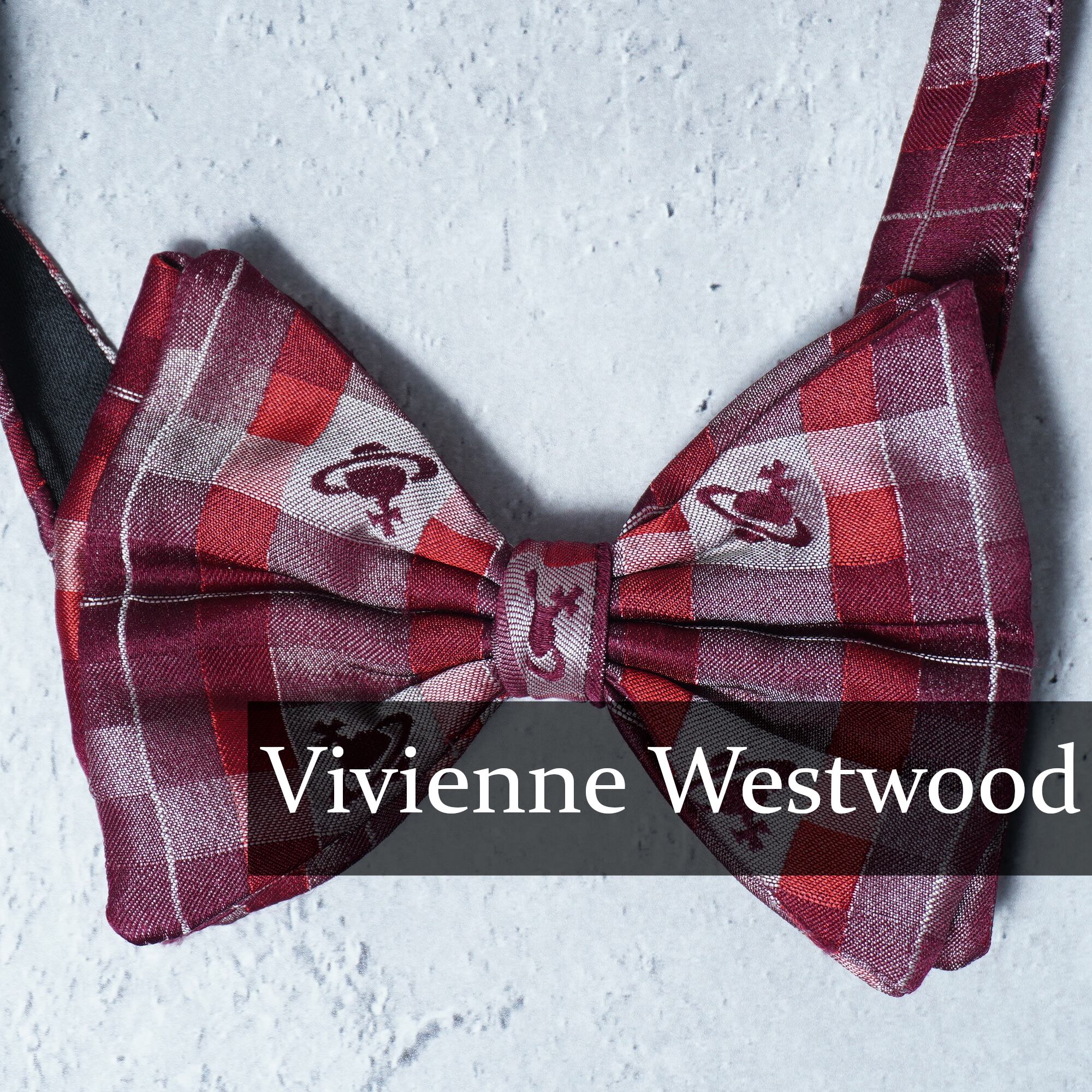 【Vivienne Westwood】ヴィヴィアンウエストウッド SILK100%オーブロゴ・チェック柄ネクタイ red&bordeaux