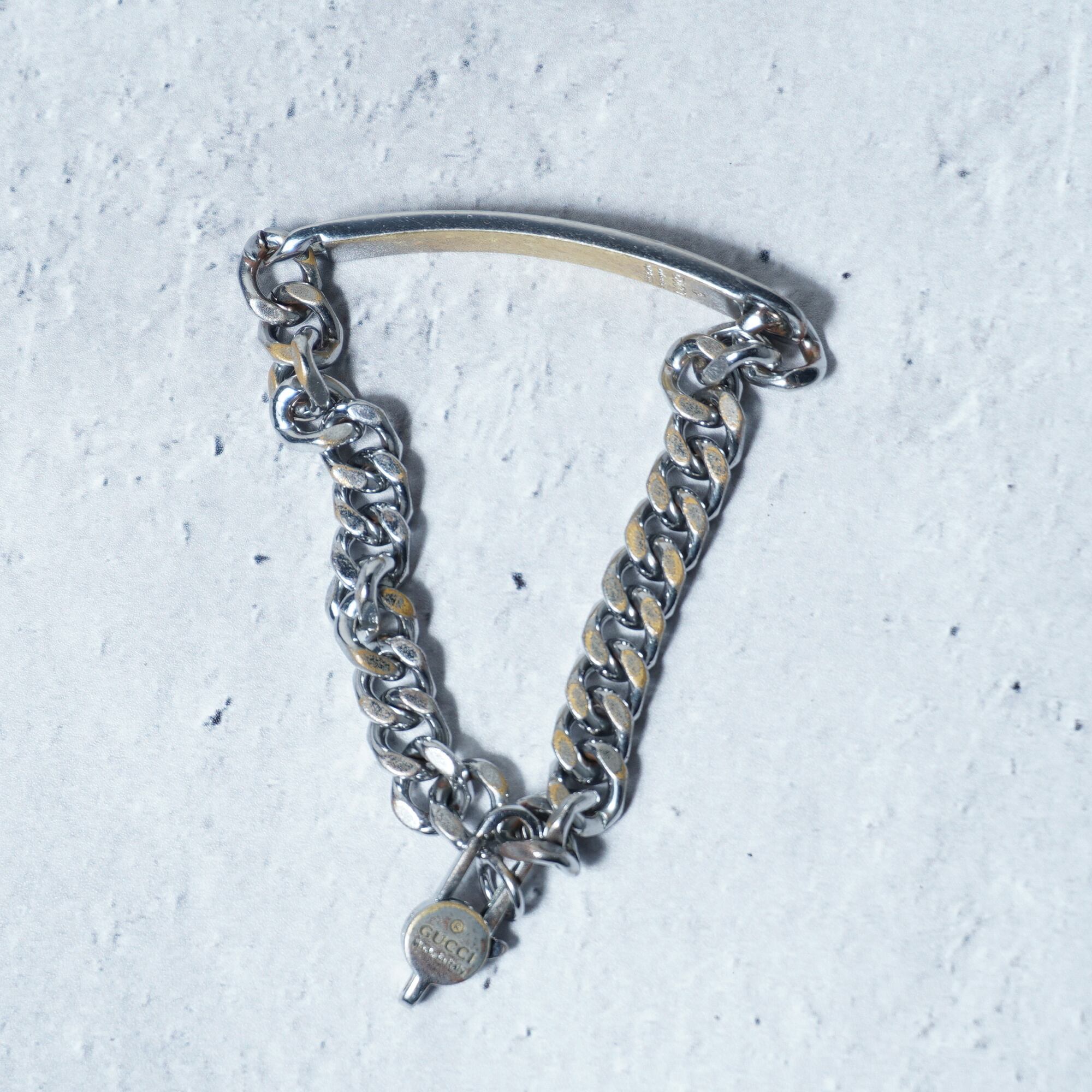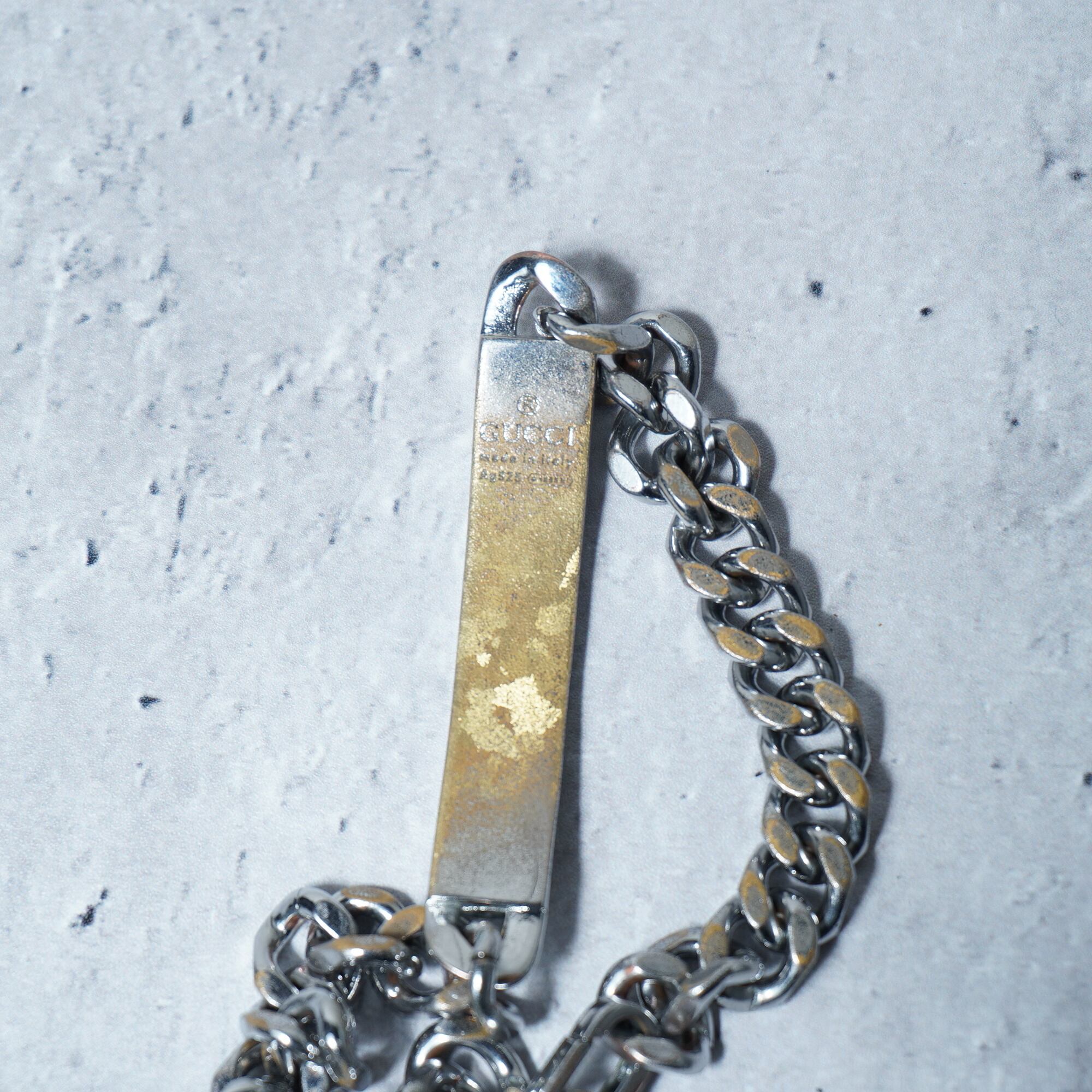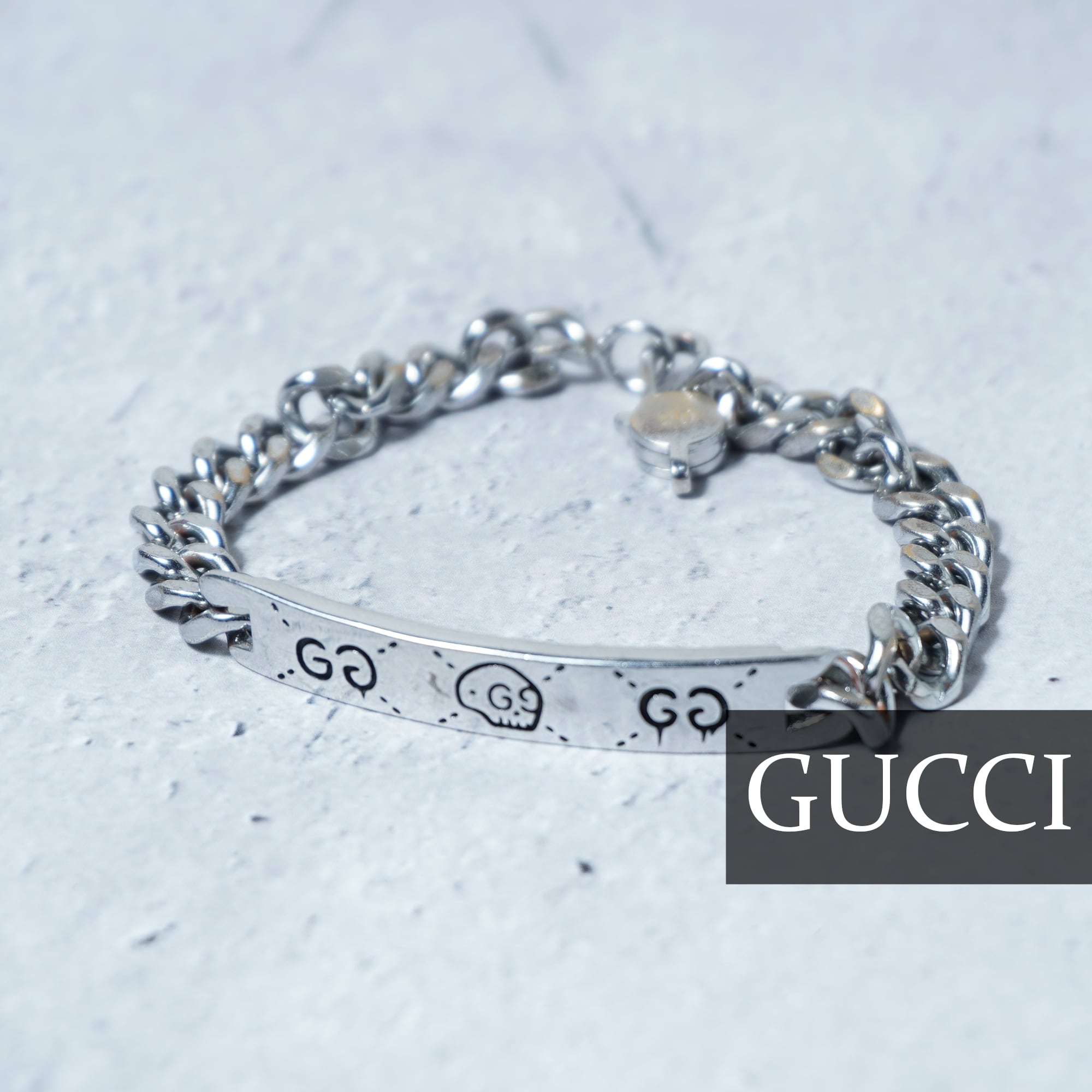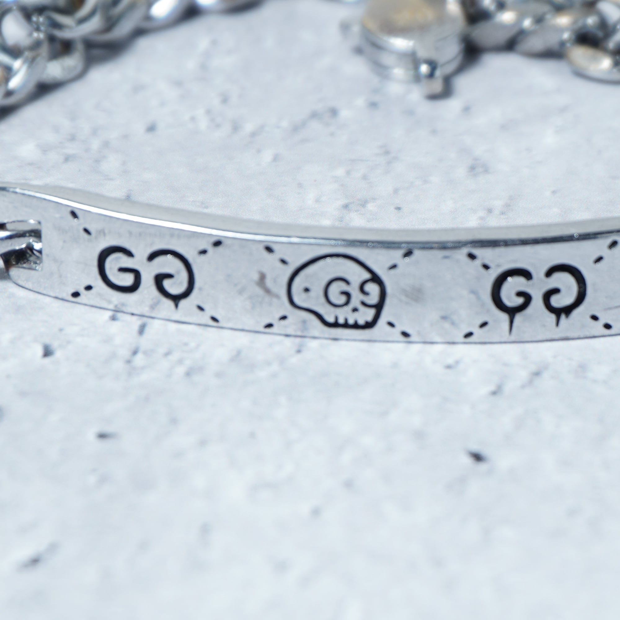 【GUCCI】グッチ シルバー925 スカルGGロゴプレートチェーンブレスレット