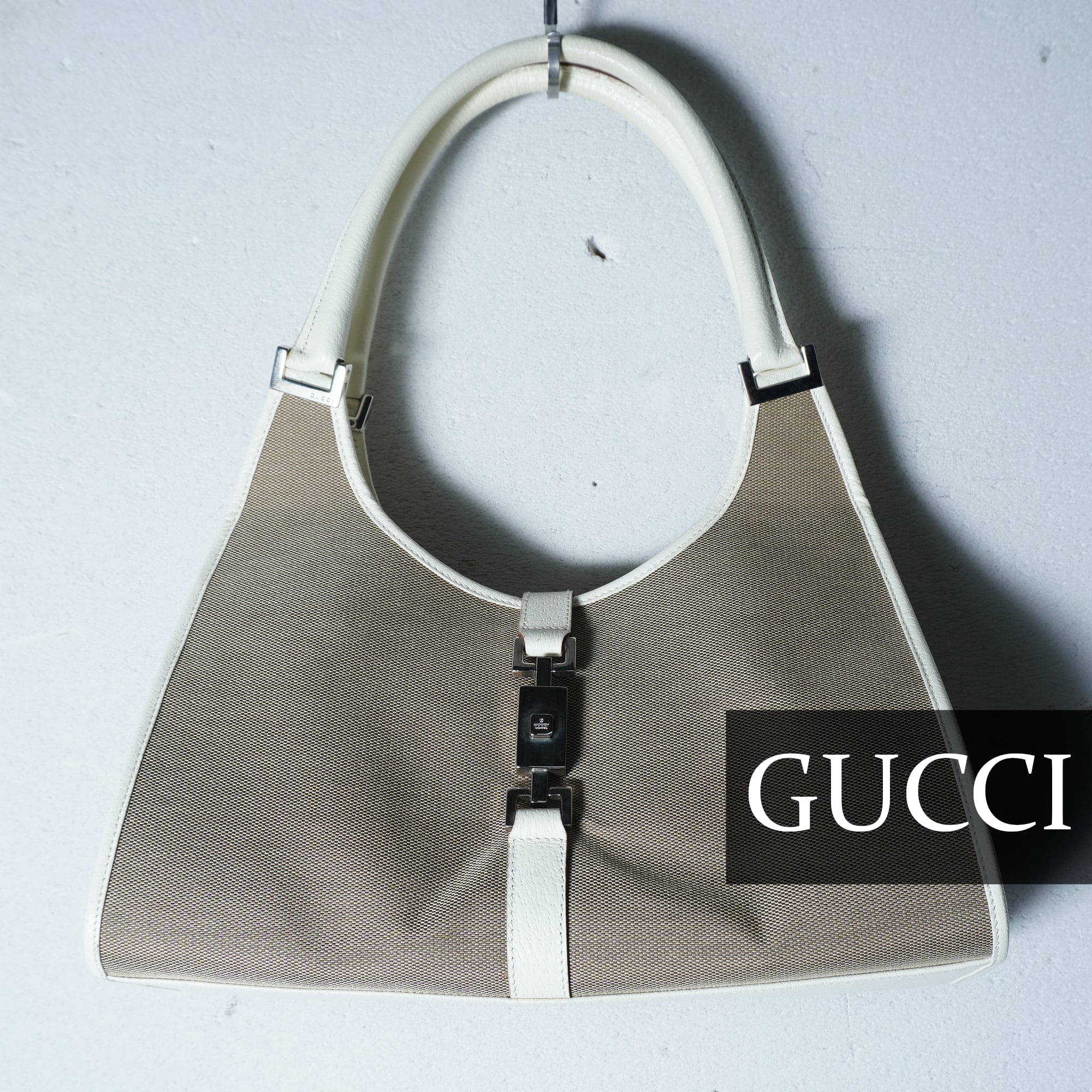 【GUCCI】グッチ ジャッキーキャンバス・レザーハンドバッグ beige & white