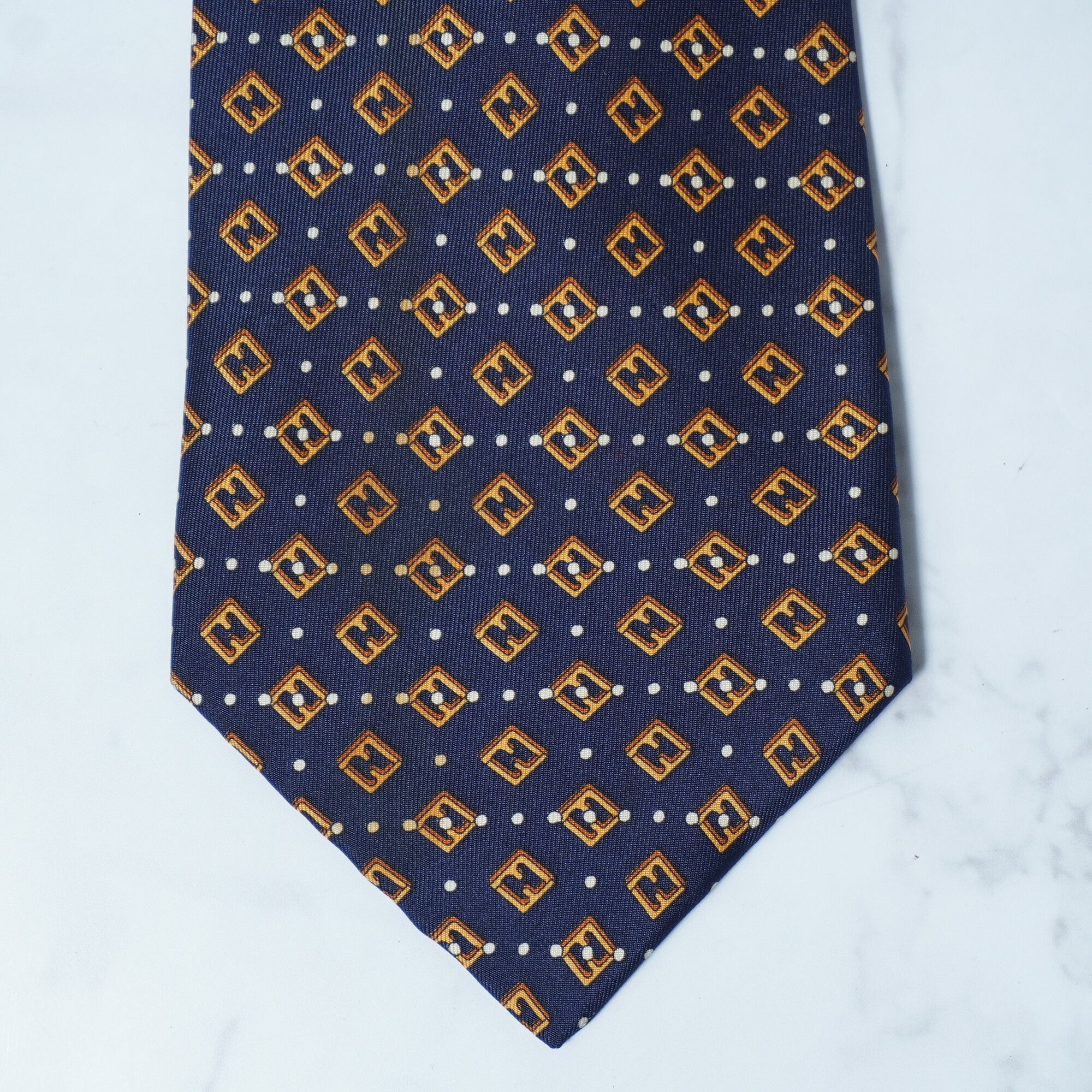 【FENDI】フェンディ SILK100% ズッカ ドット柄ネクタイ navy