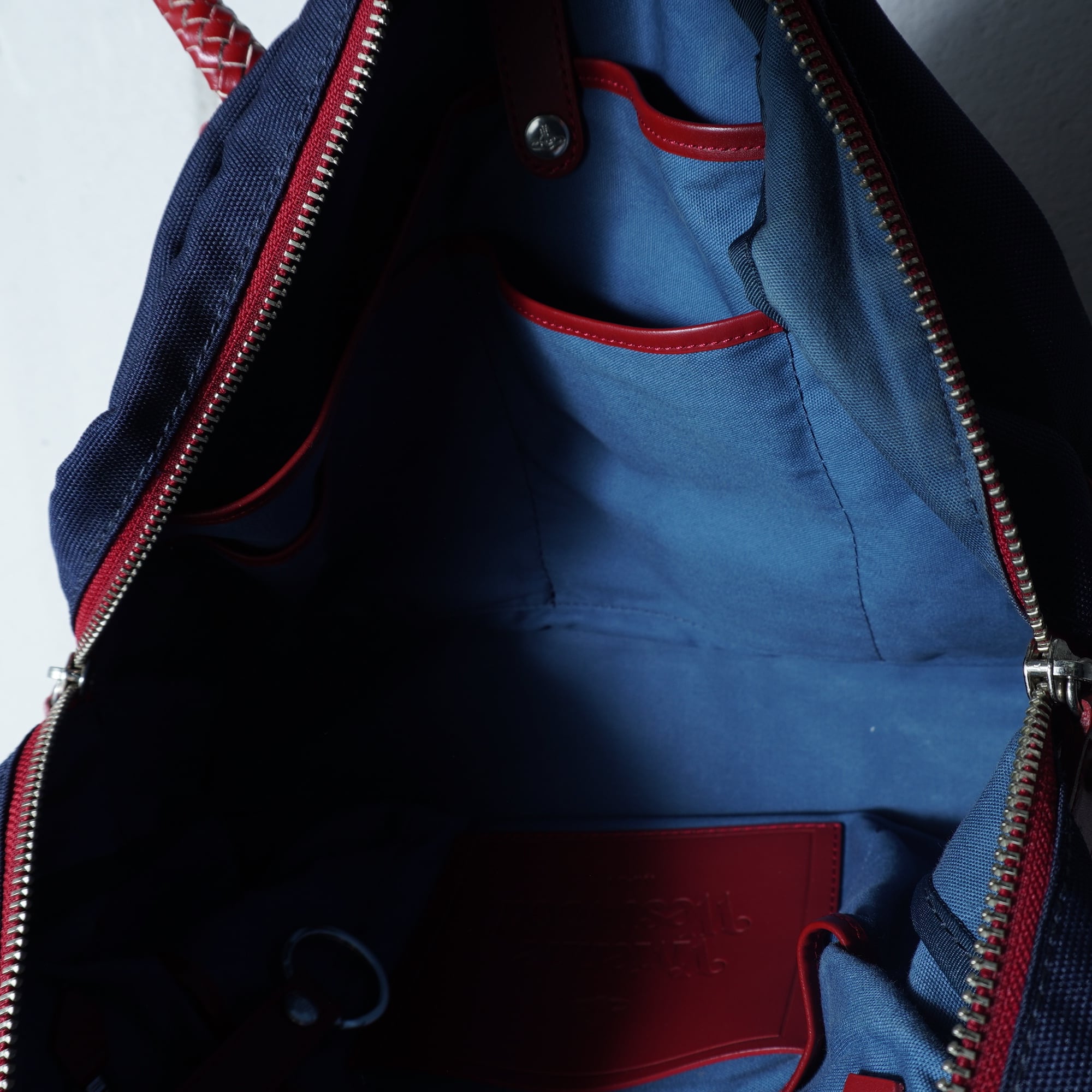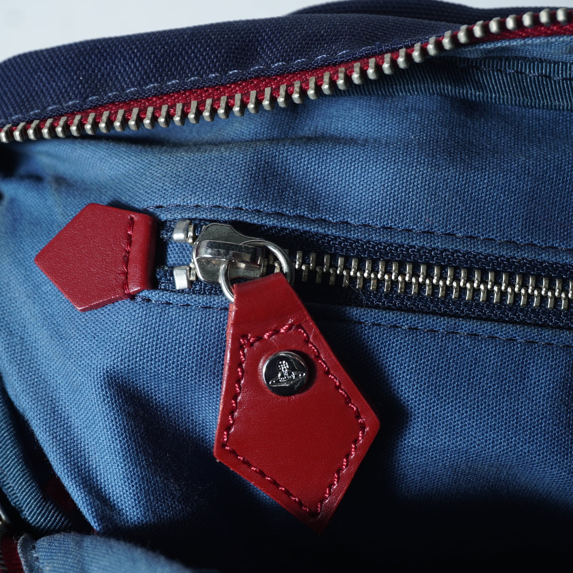 【Vivienne Westwood】ヴィヴィアンウエストウッド オーブロゴ キャンバス・レザートートバッグ navy&red