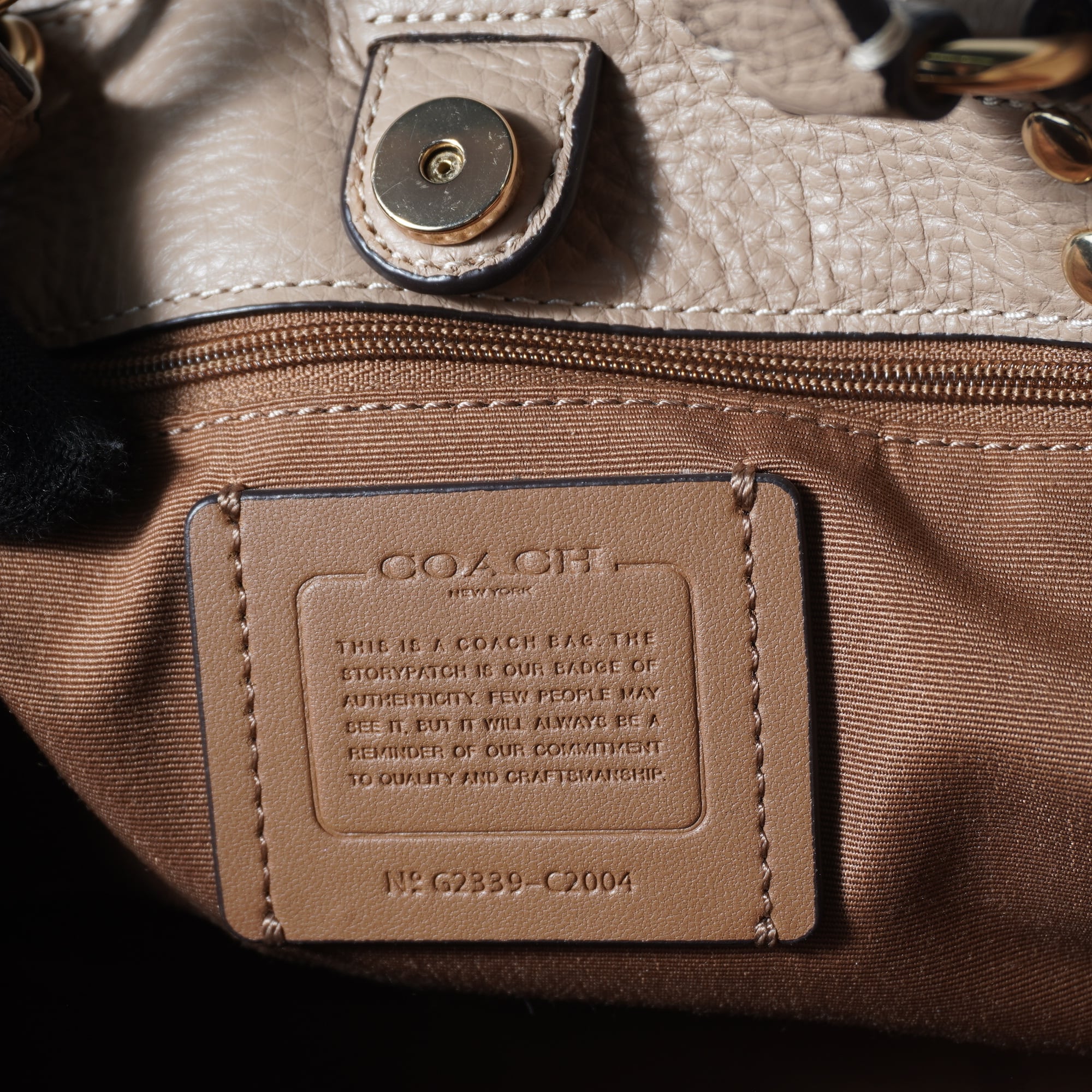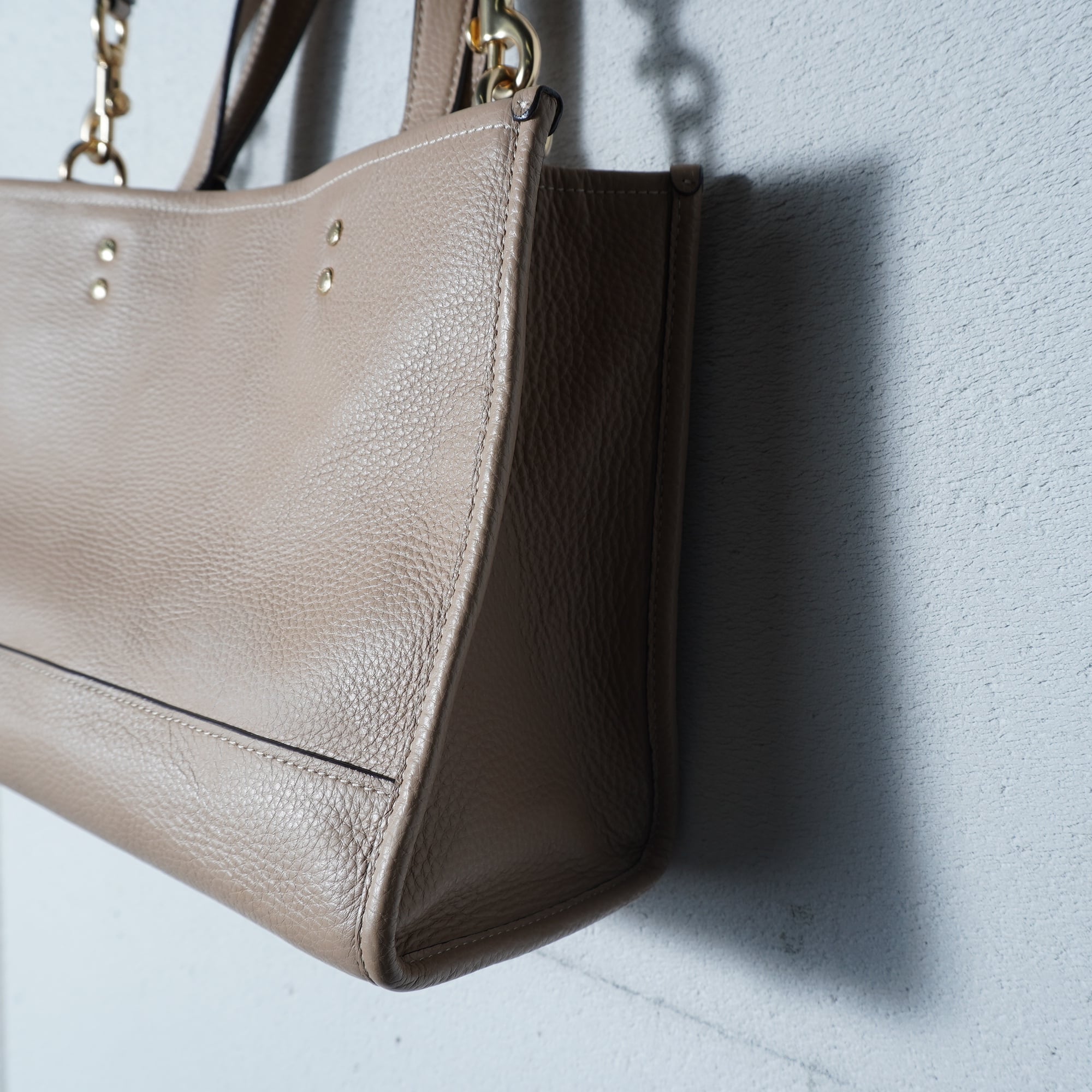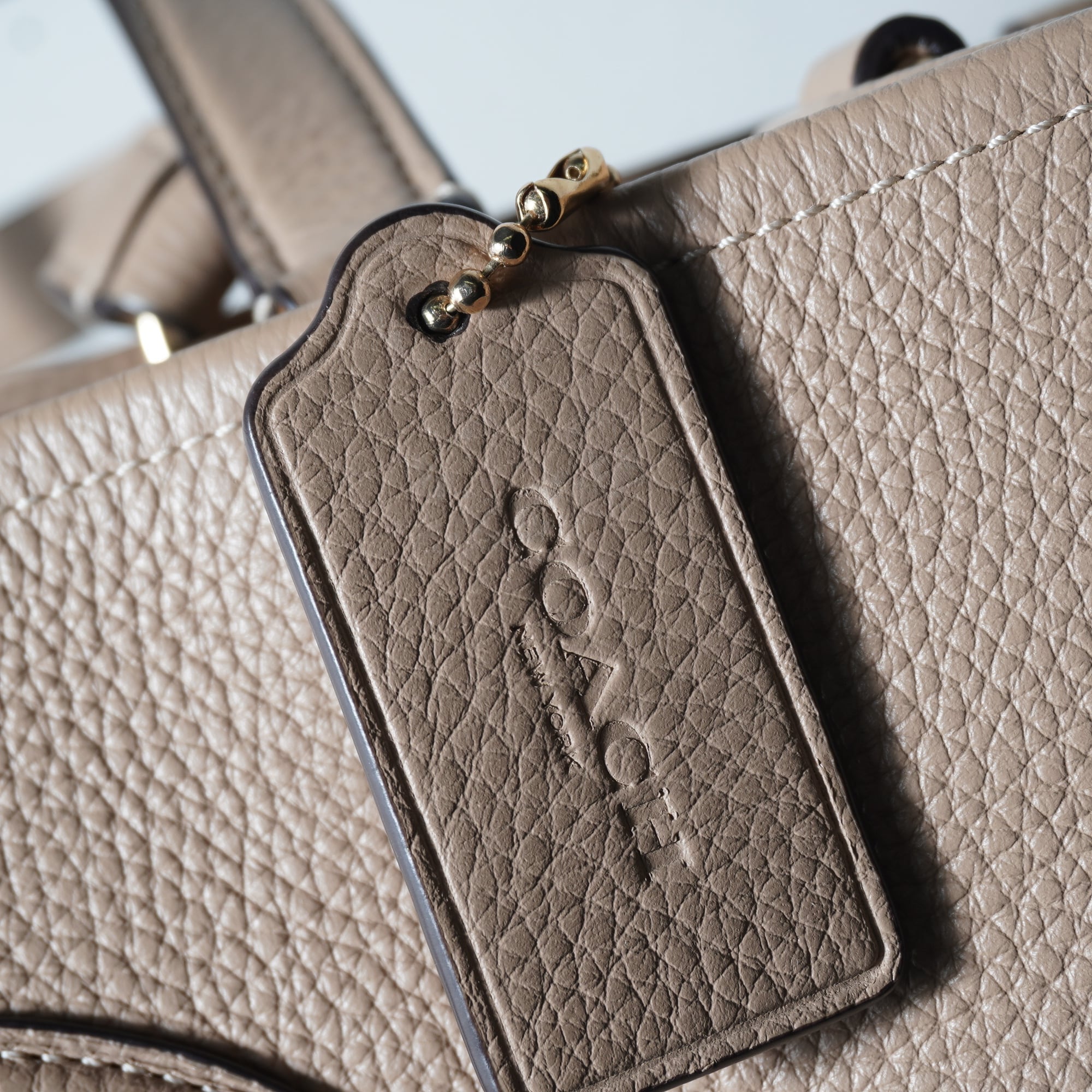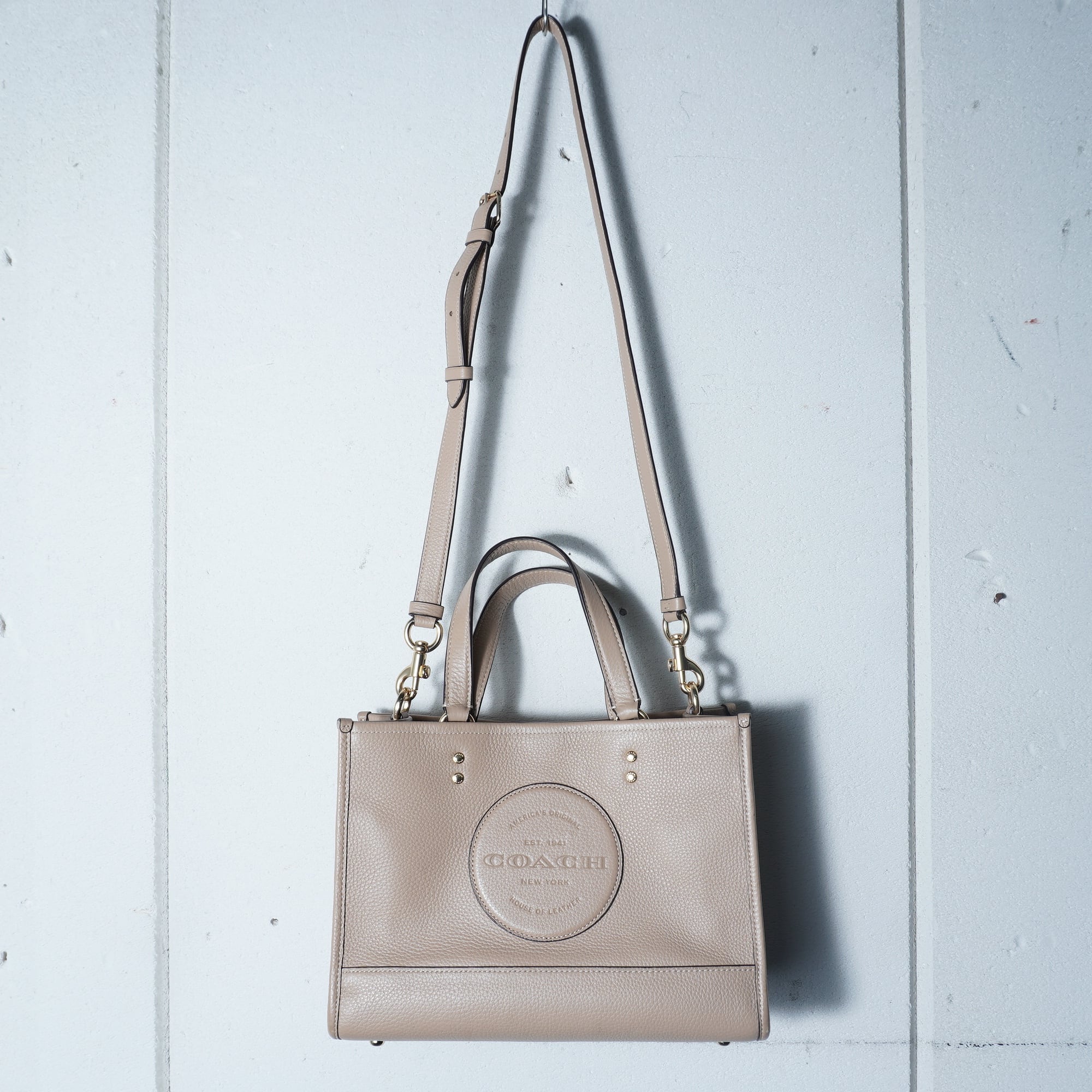 【COACH】コーチ ロゴ入シボ加工レザーショルダーバッグ beige