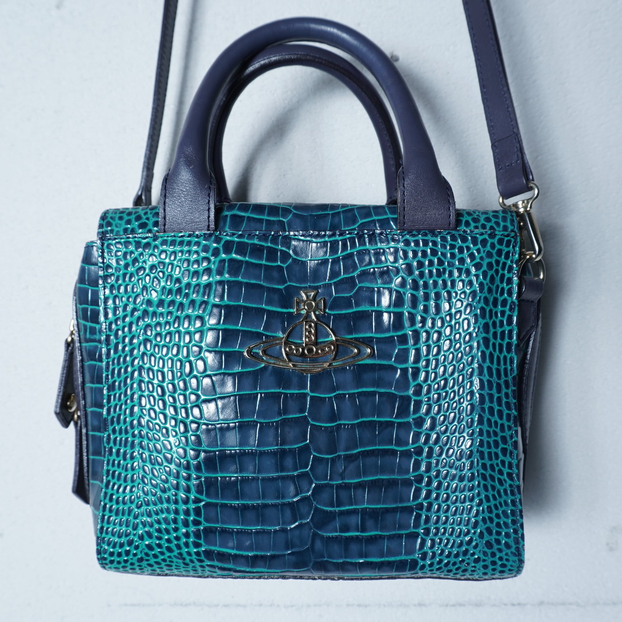 【Vivienne Westwood】ヴィヴィアンウエストウッド オーブロゴ クロコダイル型押し2WAYレザーバッグ green