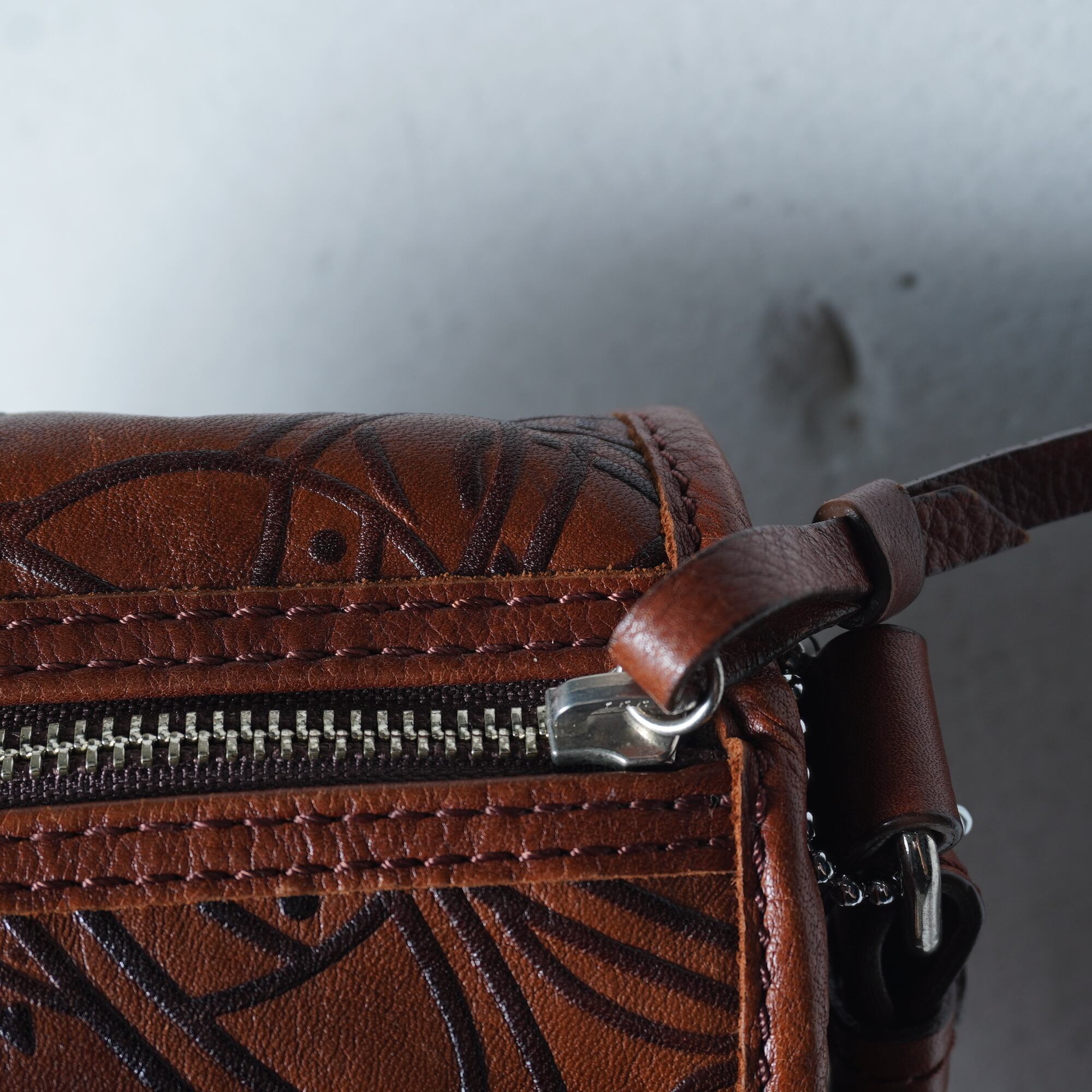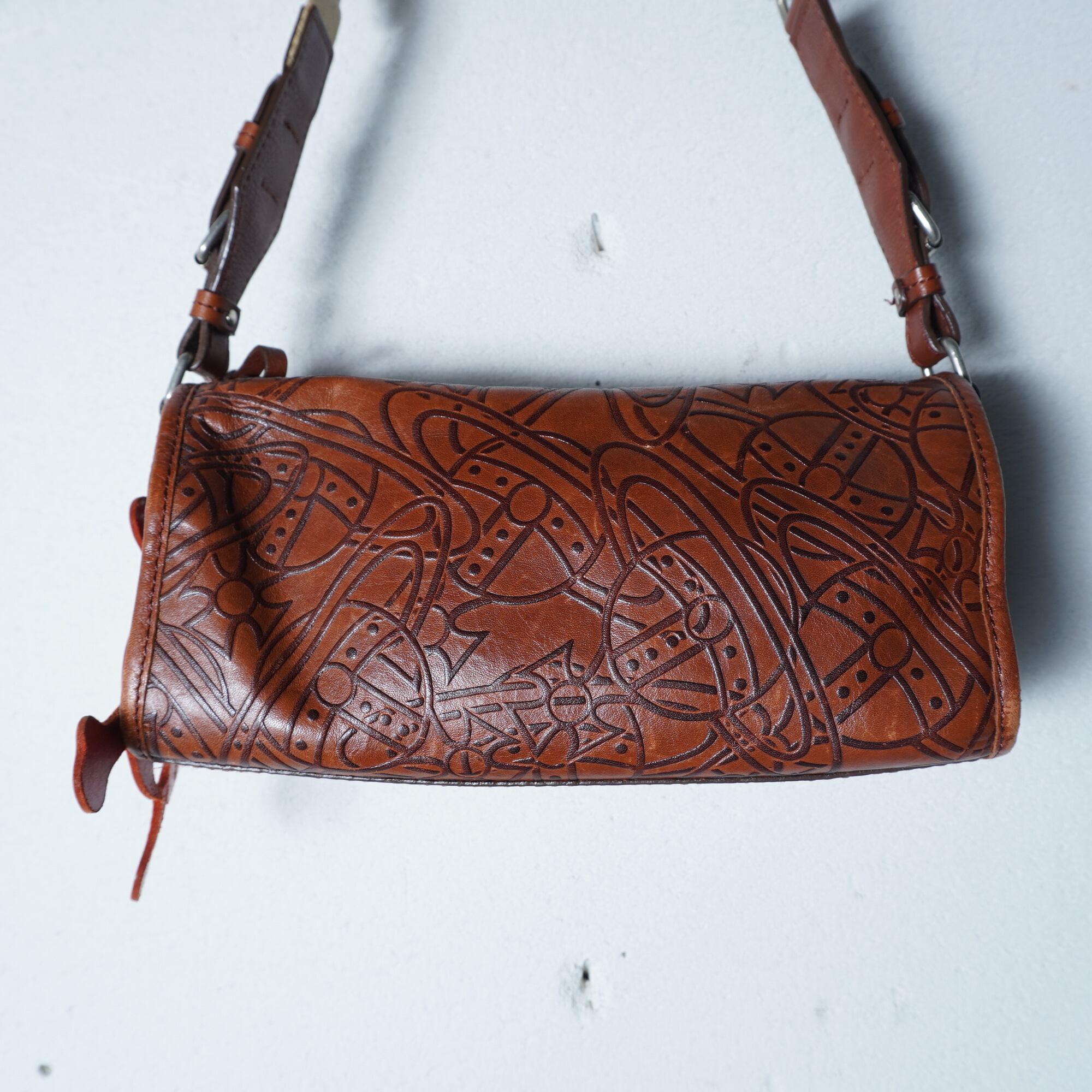 【Vivienne Westwood】ヴィヴィアンウエストウッド エンボスオーブロゴ総柄スカルチャームレザーショルダーバッグ brown