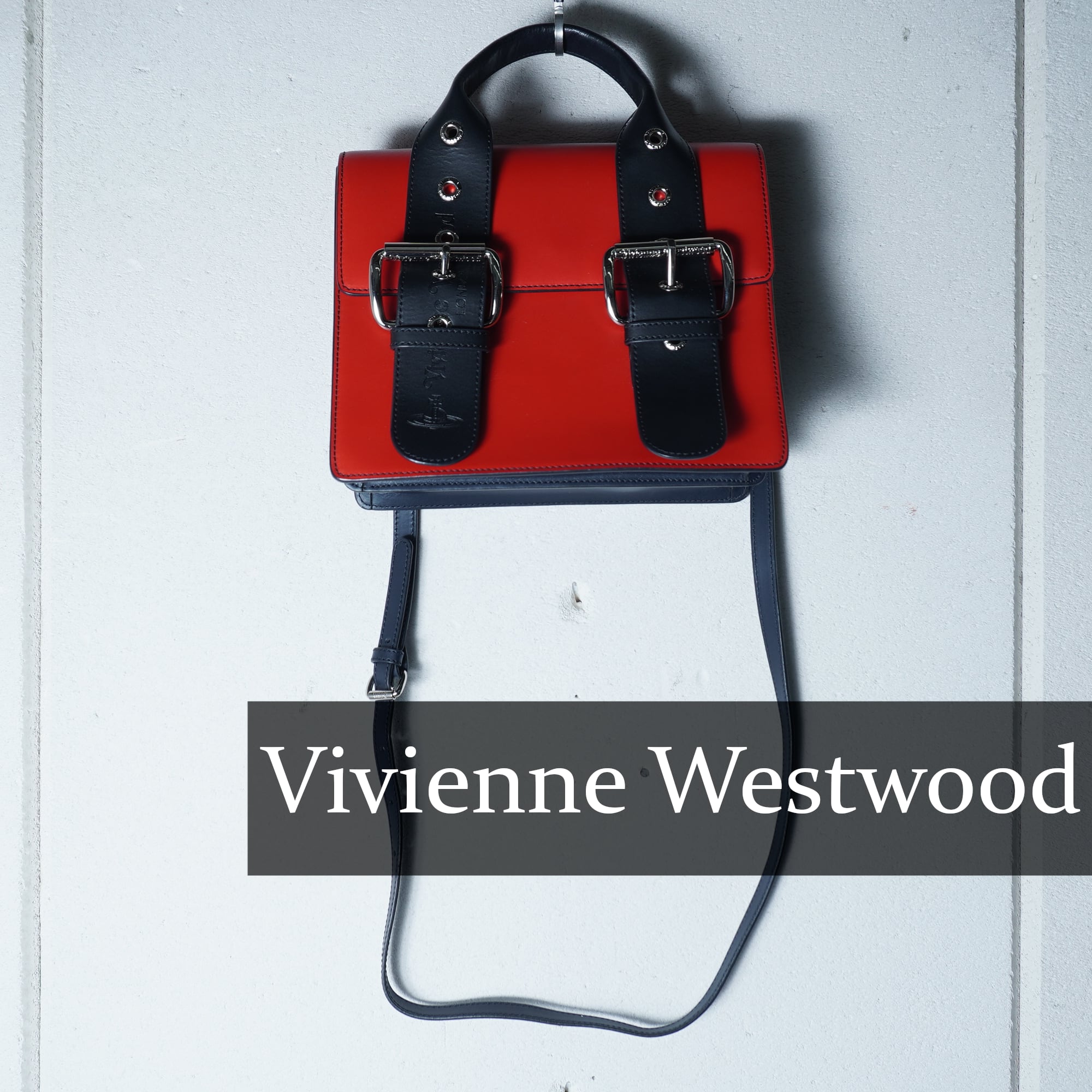 【Vivienne Westwood】ヴィヴィアンウエストウッド Alex ベルトバックルバイカラーレザーショルダーバッグ red & black