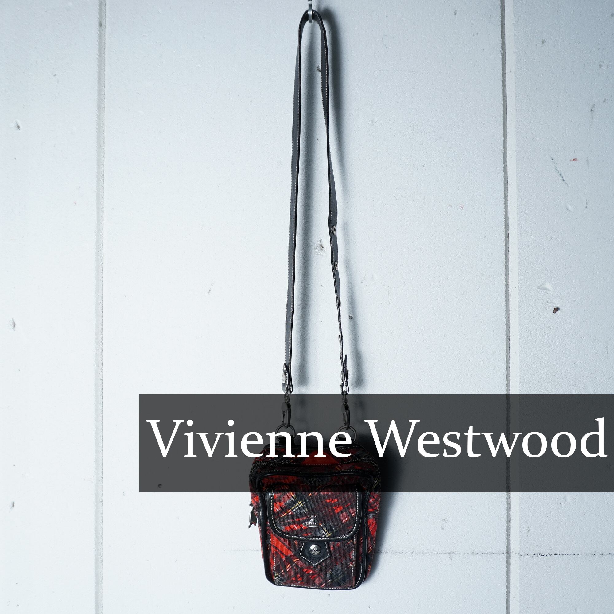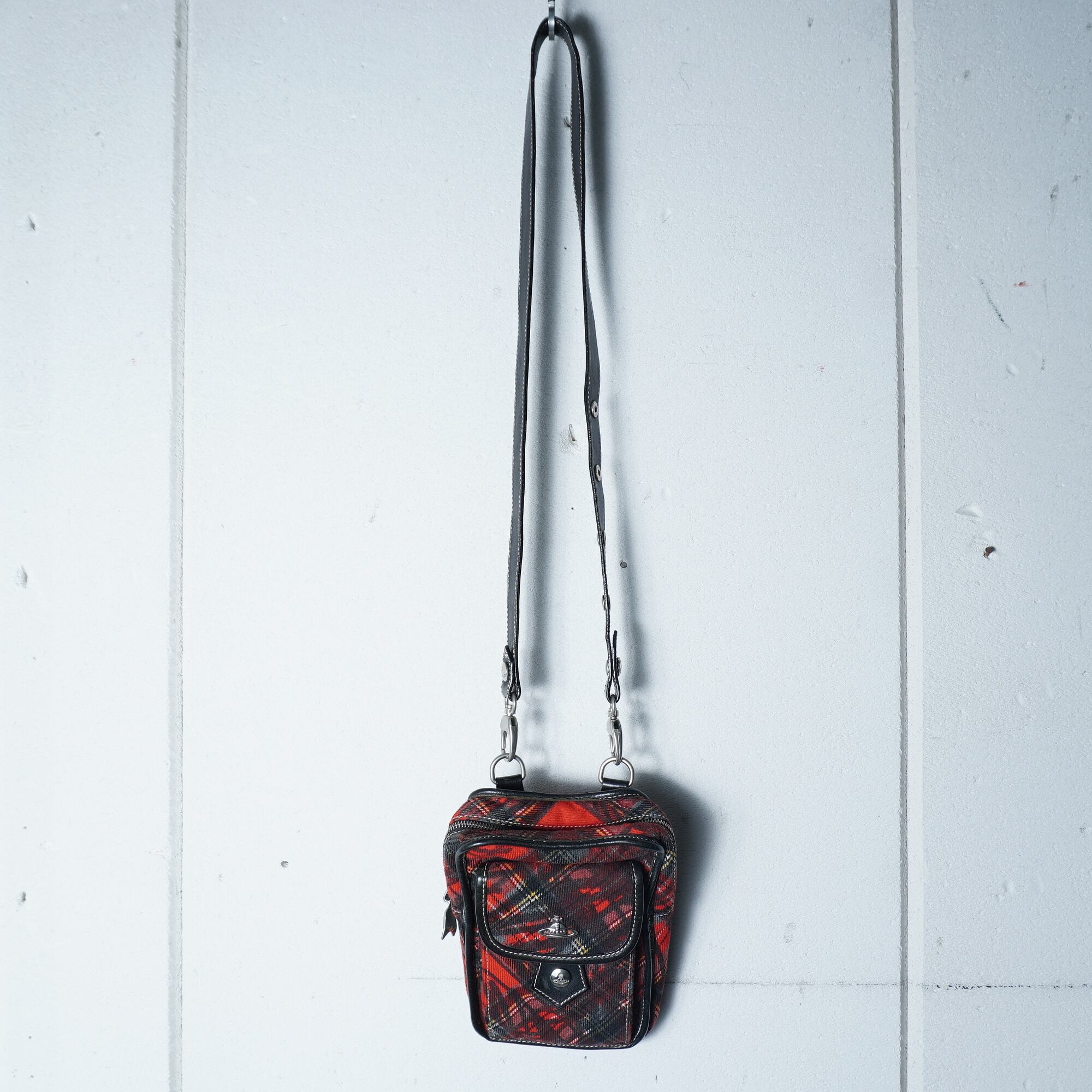 【Vivienne Westwood】ヴィヴィアンウエストウッド オーブロゴクロスチェックショルダーバッグ red & black & yellow