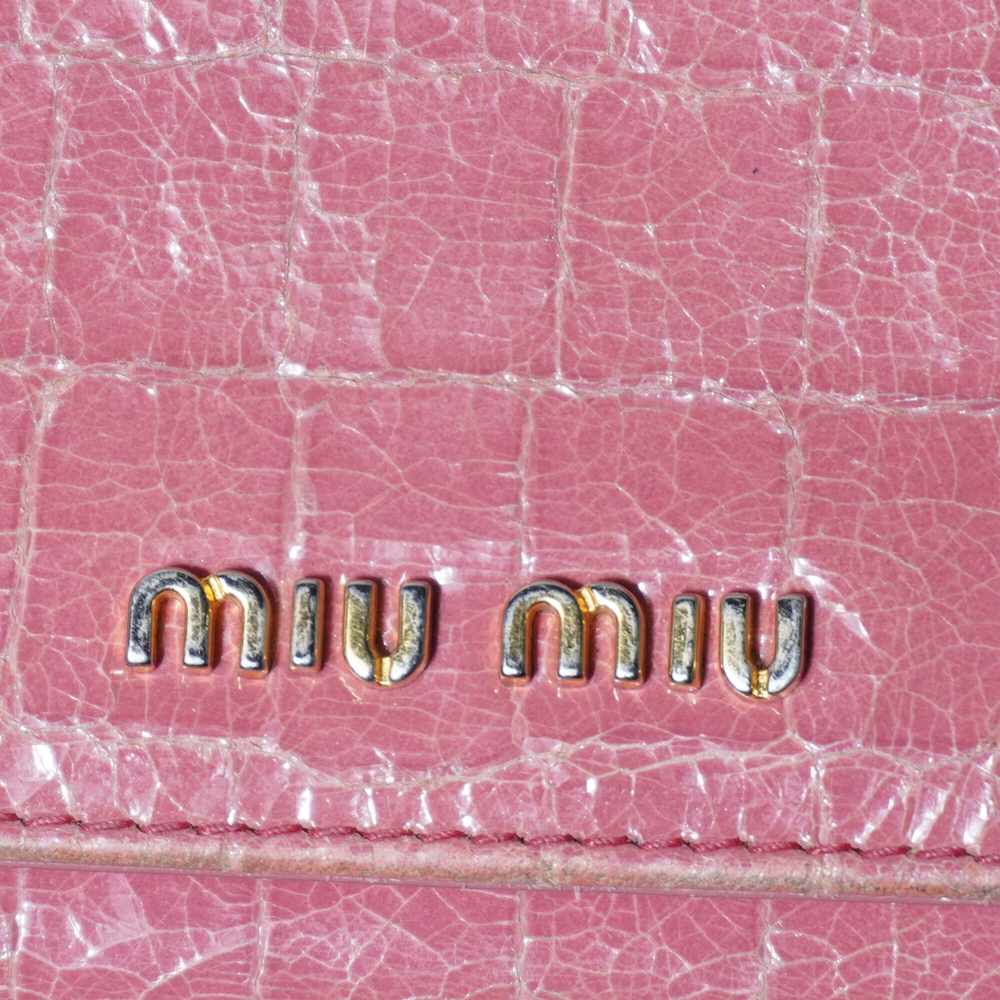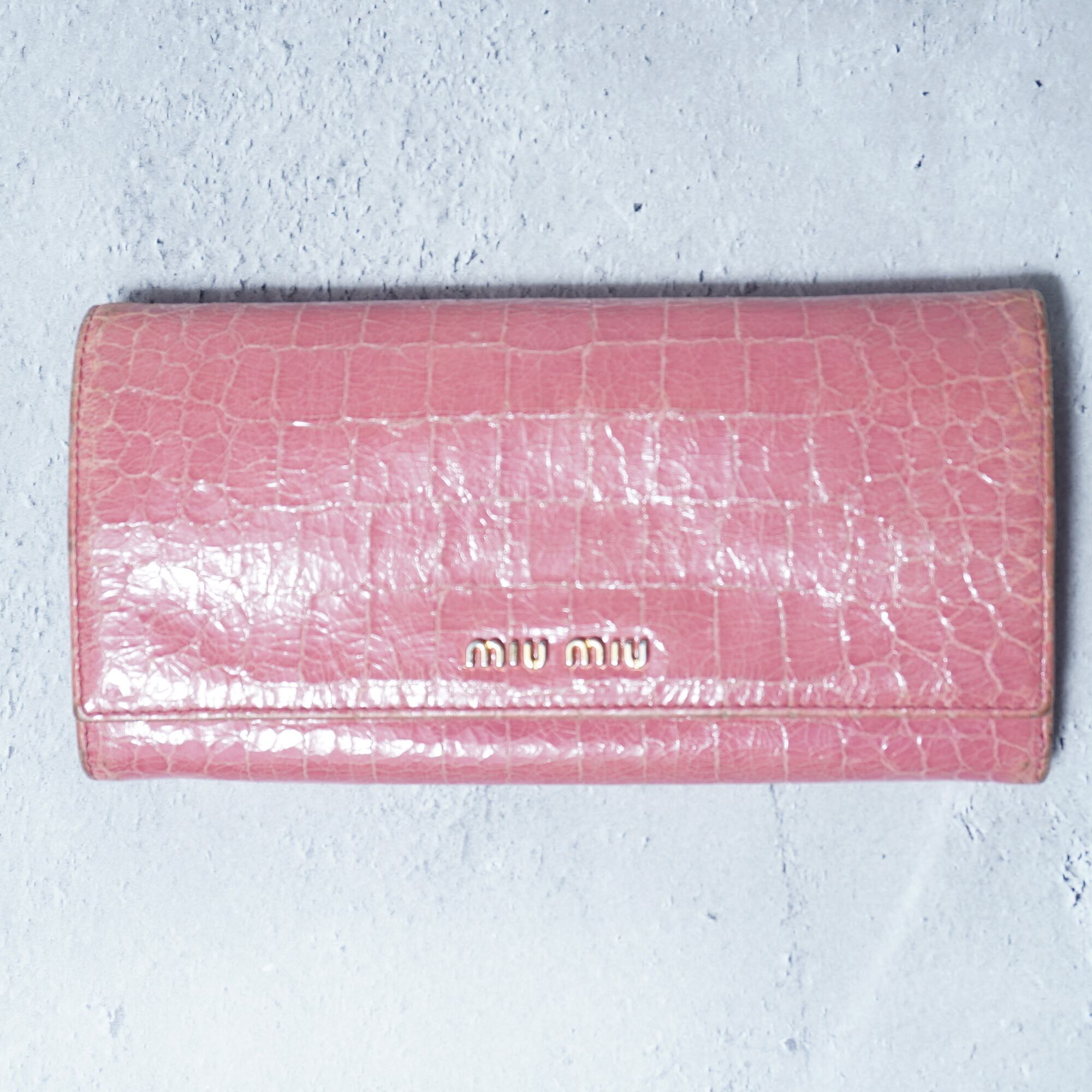 【miumiu】ミュウミュウ ロゴ入クロコダイル型押しレザーロングウォレット pink