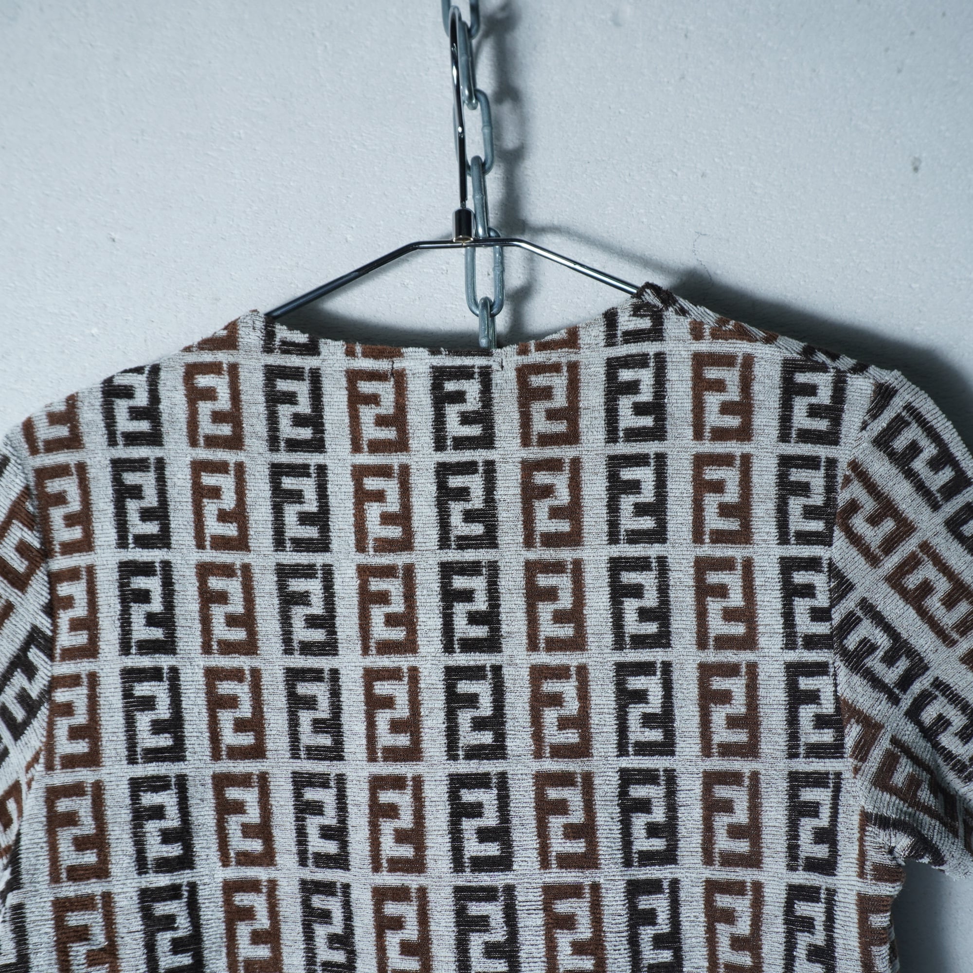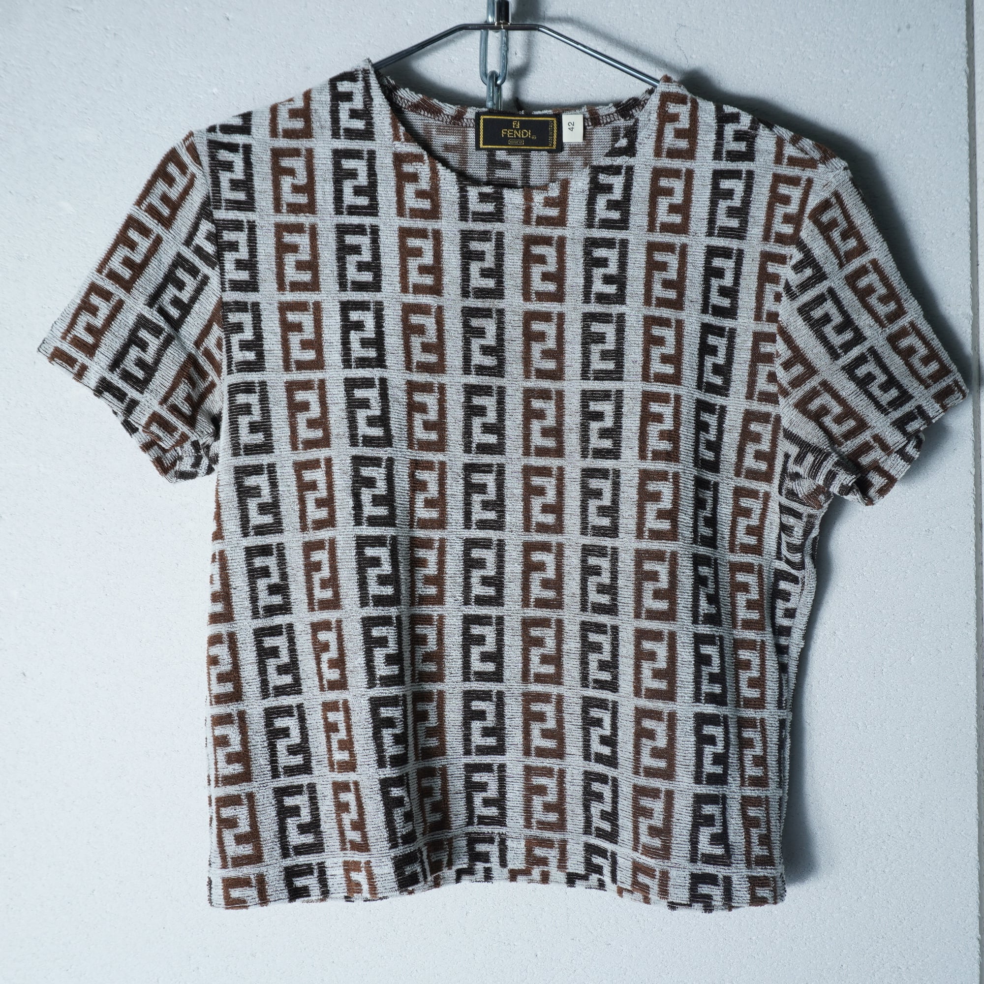 【FENDI】フェンディ ズッカ柄パイル地Tシャツ white&black&brown