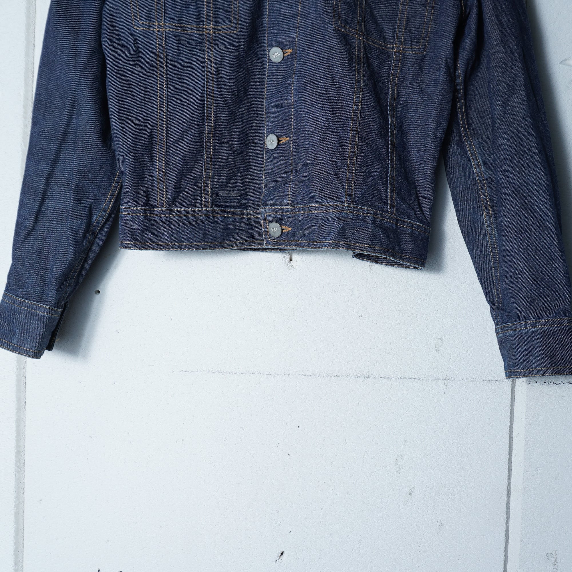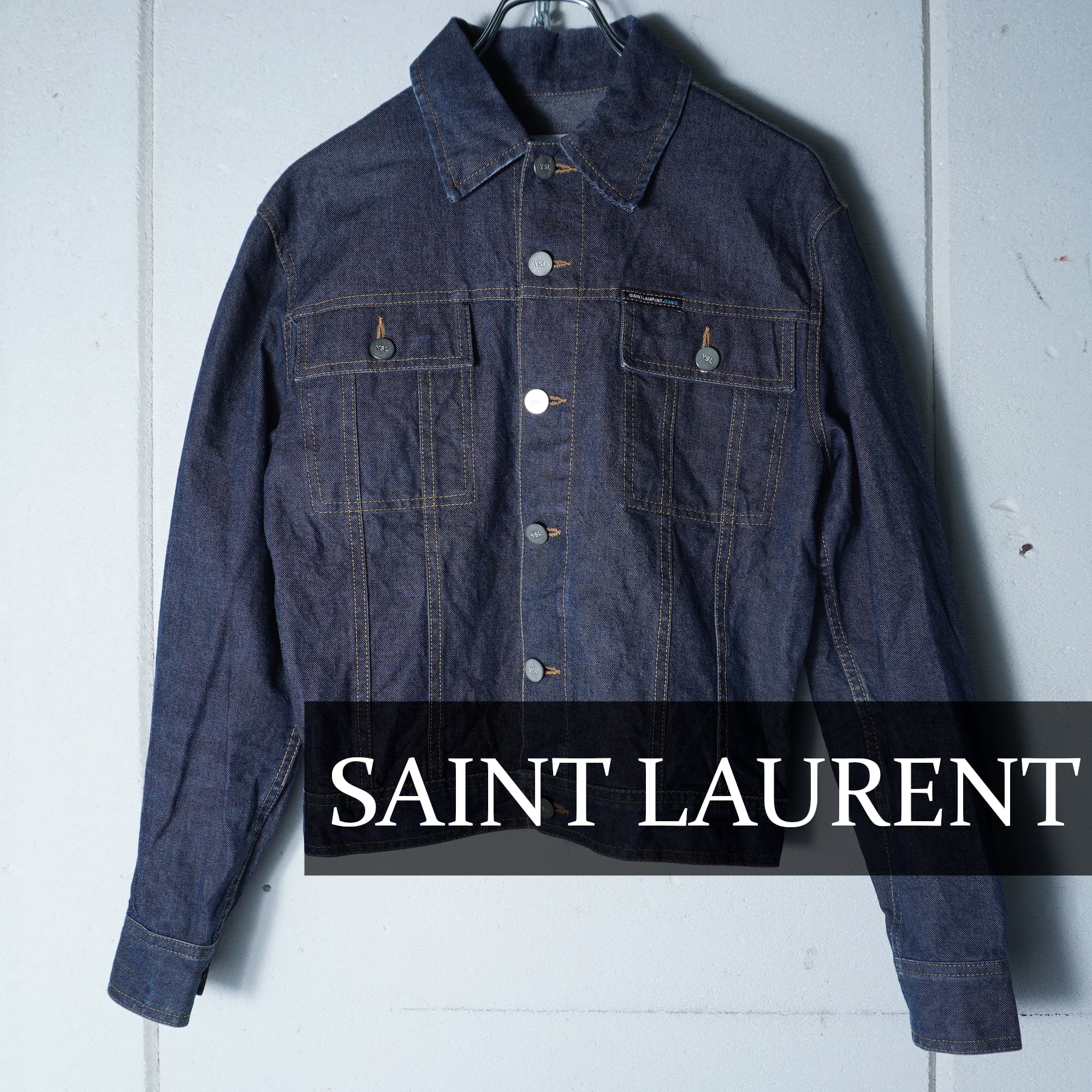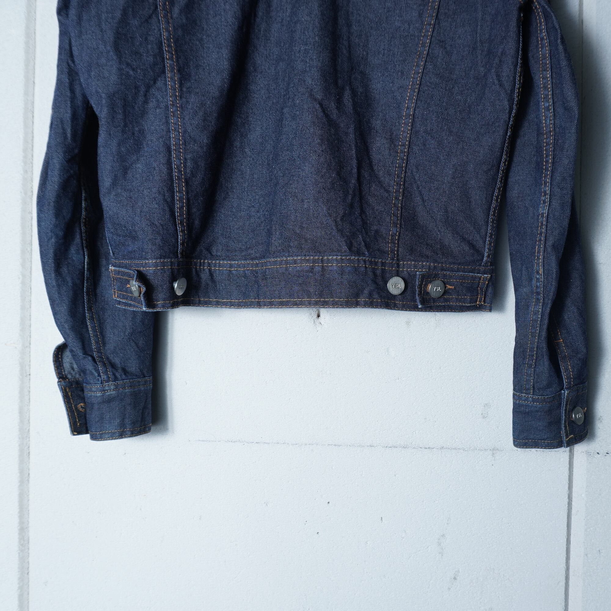 【Saint Lourent】サンローラン YSLロゴボタンショートデニムジャケット indigo