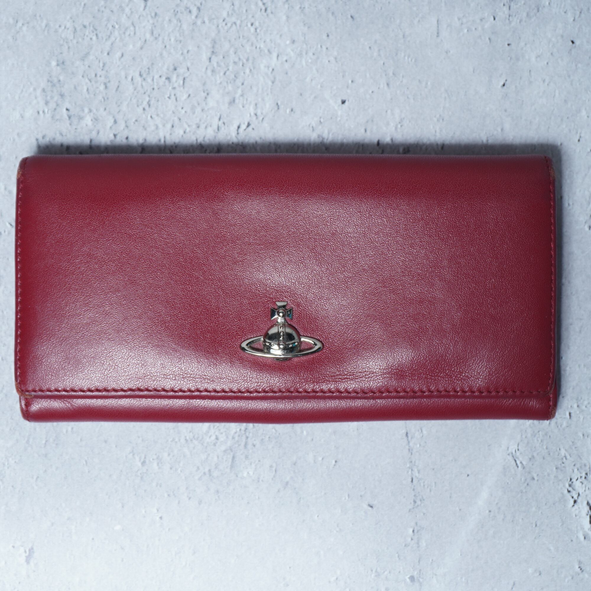 【Vivienne Westwood】ヴィヴィアンウエストウッド オーブロゴ レザーロングウォレット wine red