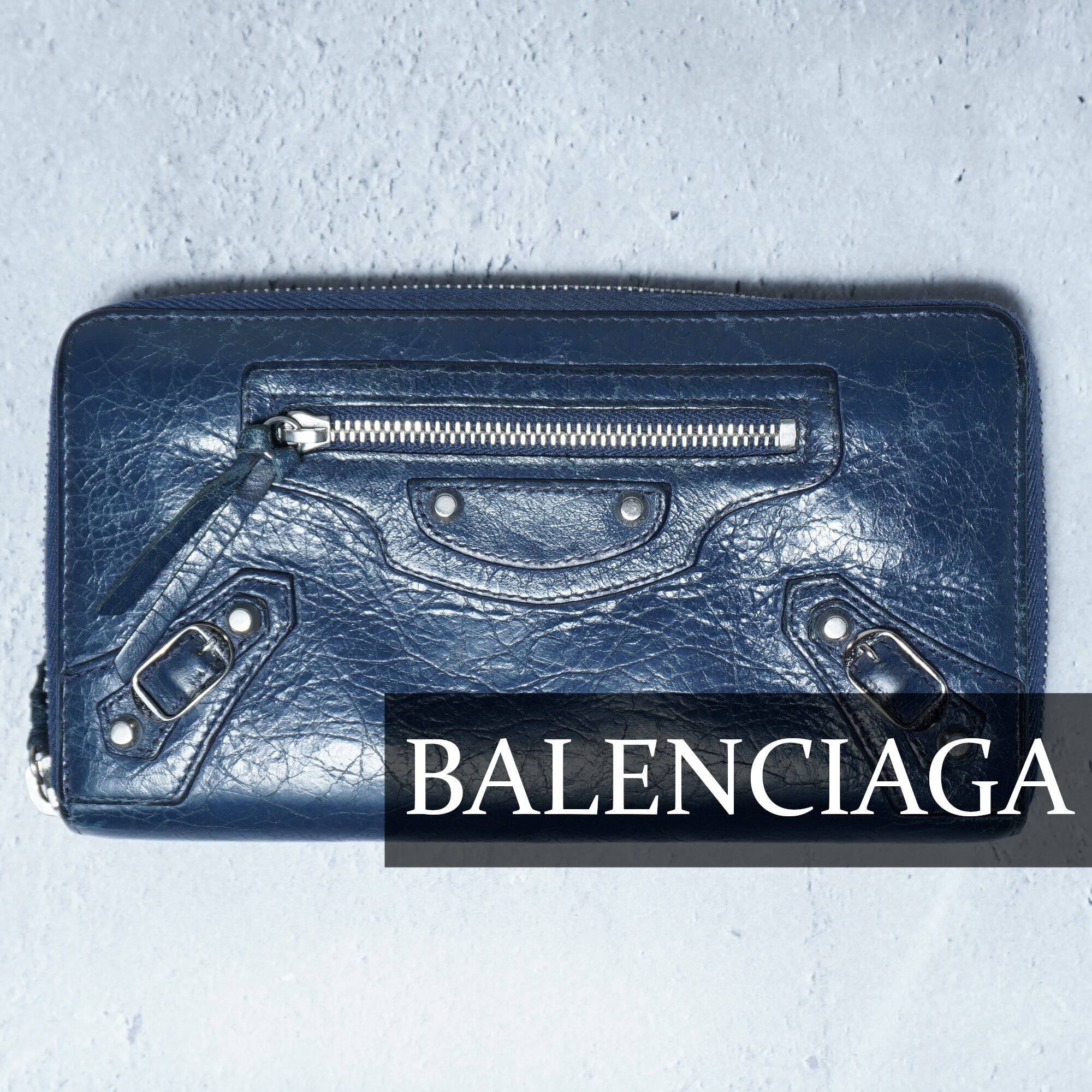 【BALENCIAGA】バレンシアガ クラシックコンチネンタルレザーロングウォレット navy