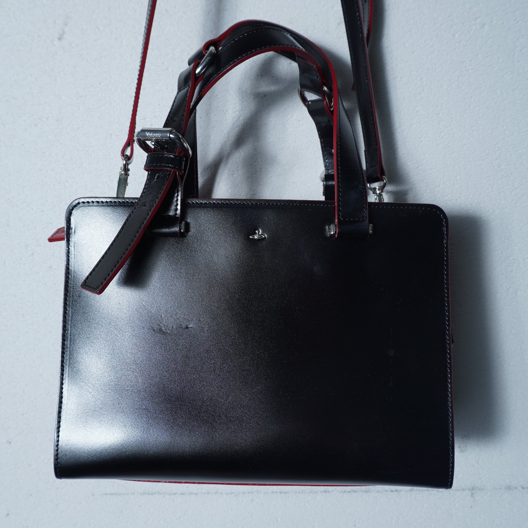 【Vivienne Westwood】ヴィヴィアンウエストウッド Simple tiny ORB 2WAY レザーショルダーバッグ black & red