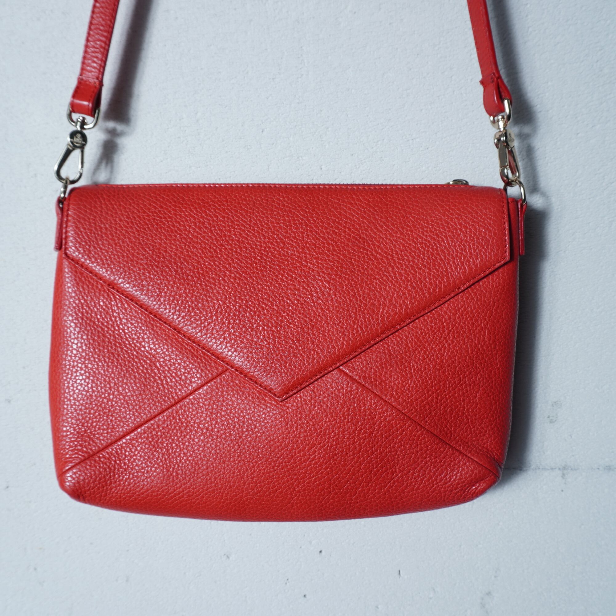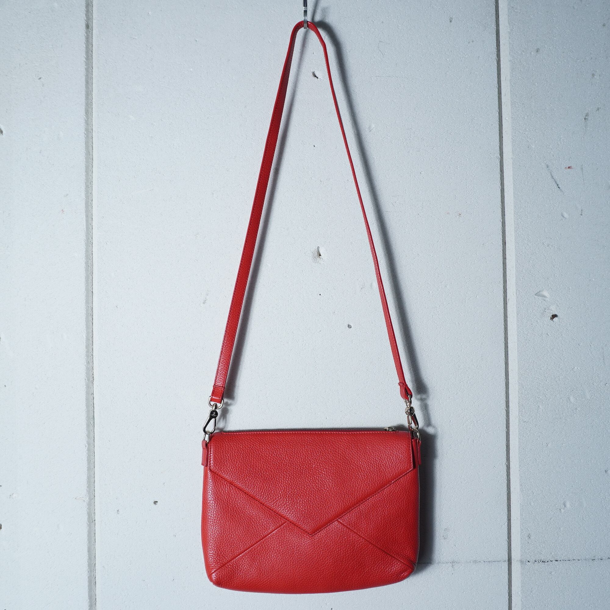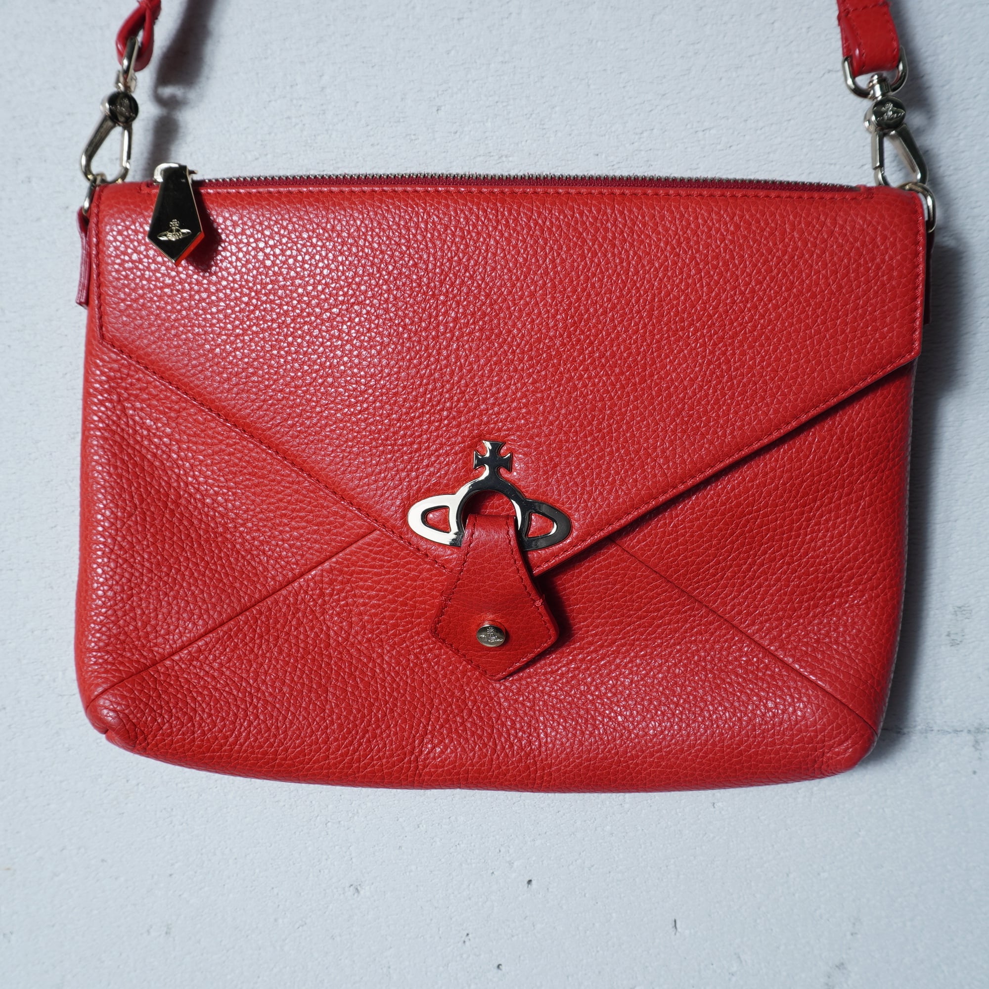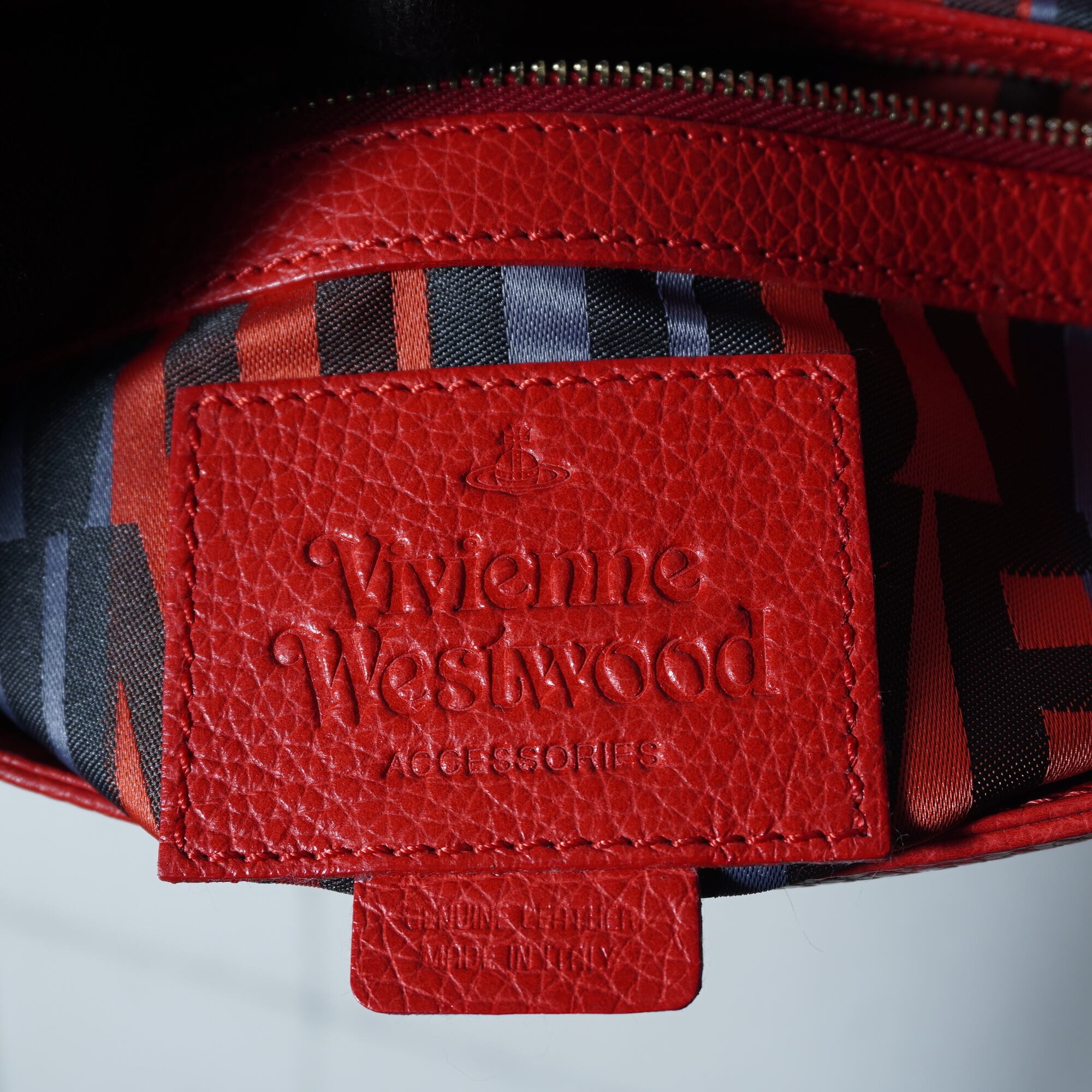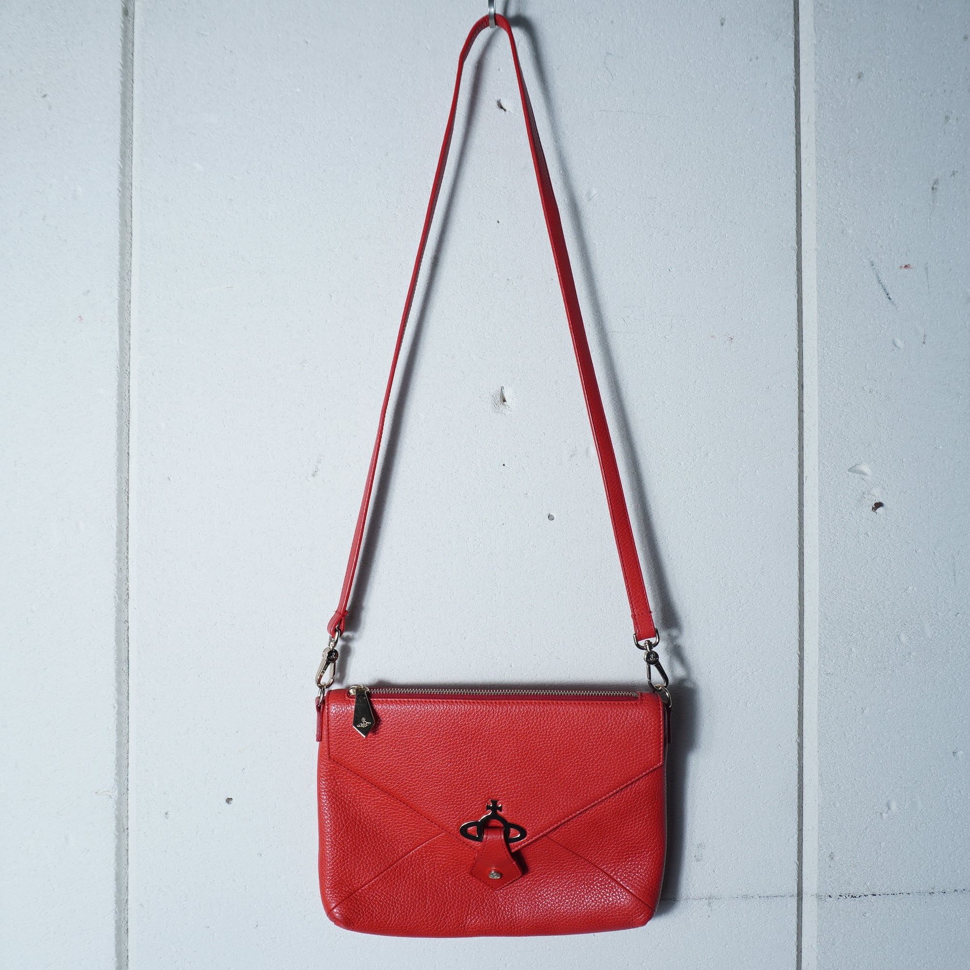 【Vivienne Westwood】ヴィヴィアンウエストウッド オーブロゴシボ加工レザーショルダーバッグ red