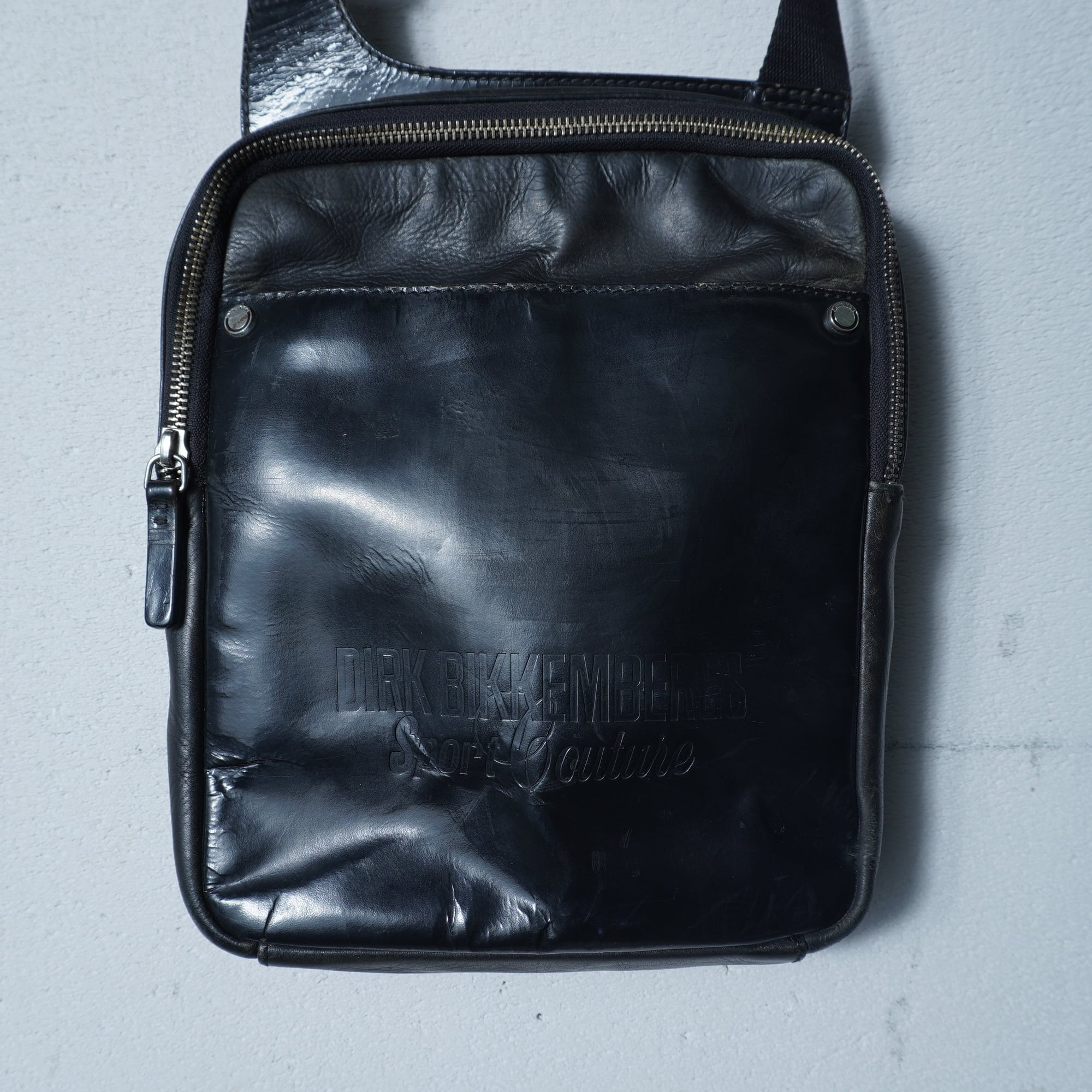 【Dirk Bikkembergs】ダークビッケンバーグ ”ARCHIVE” ロゴ入レザーショルダーバッグ black