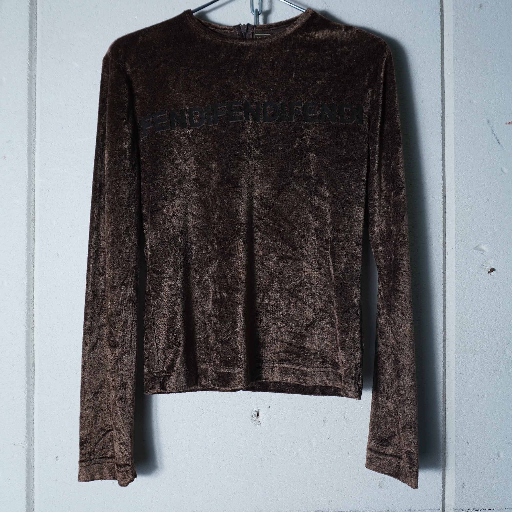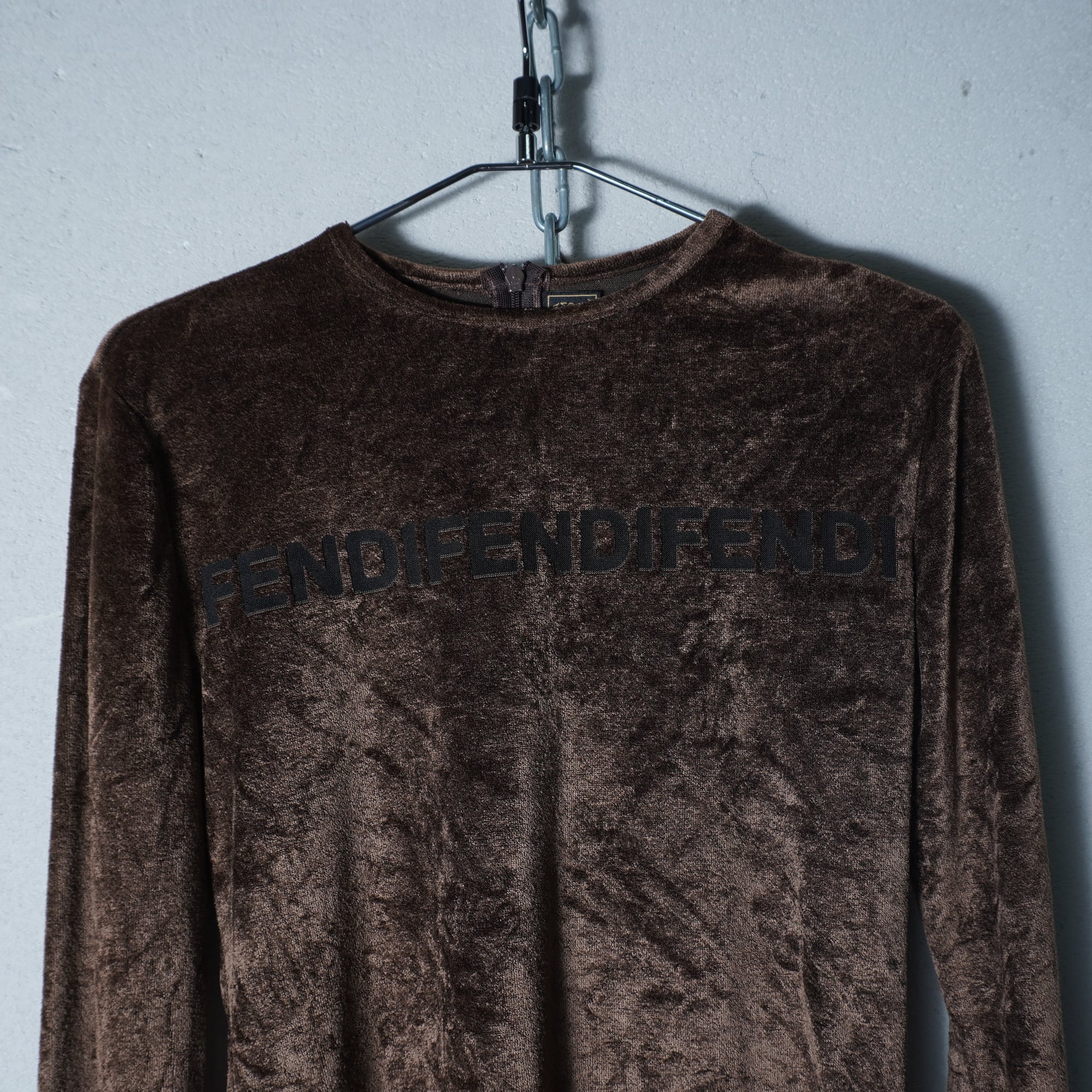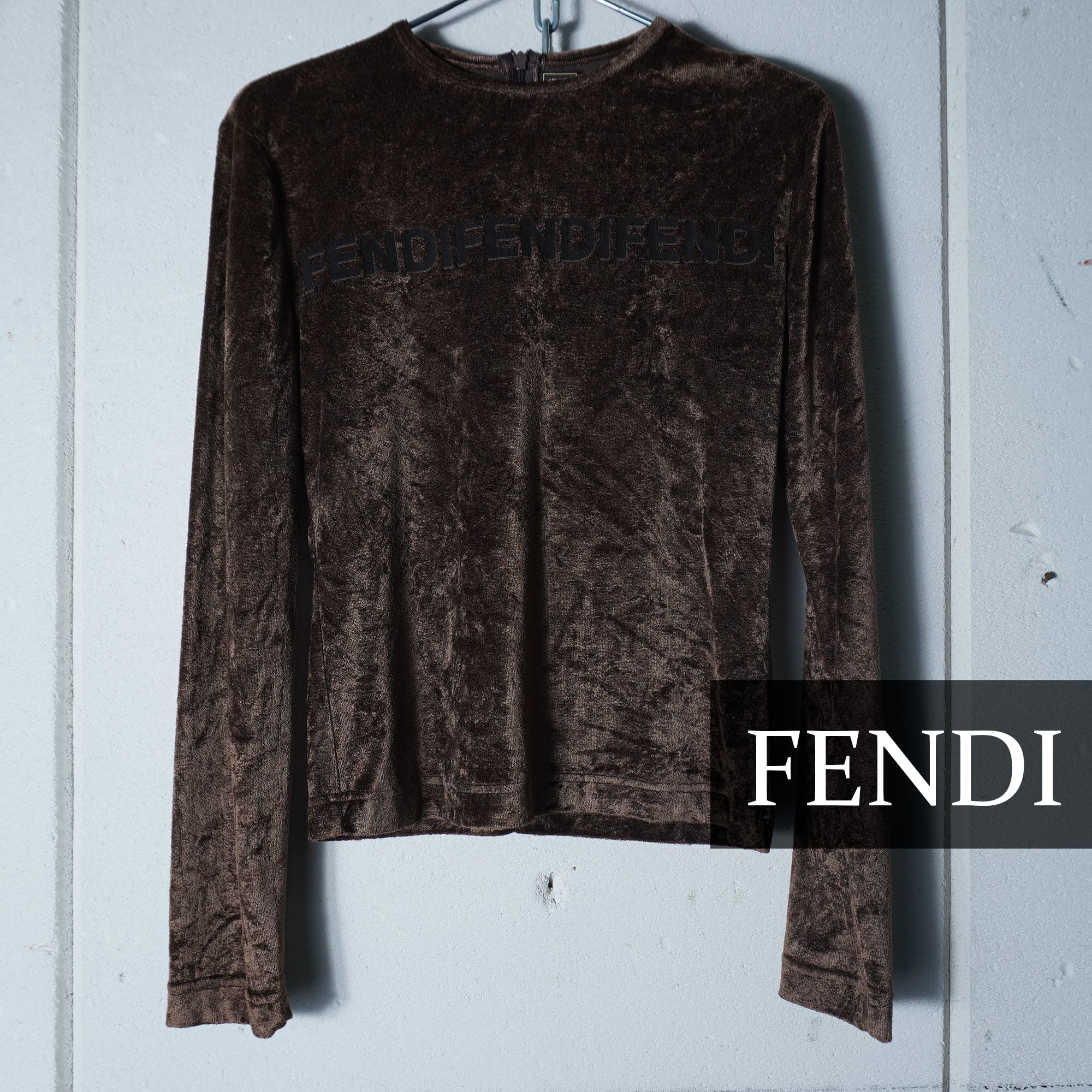 【FENDI】フェンディ トリプルロゴベロアロングTシャツ brown
