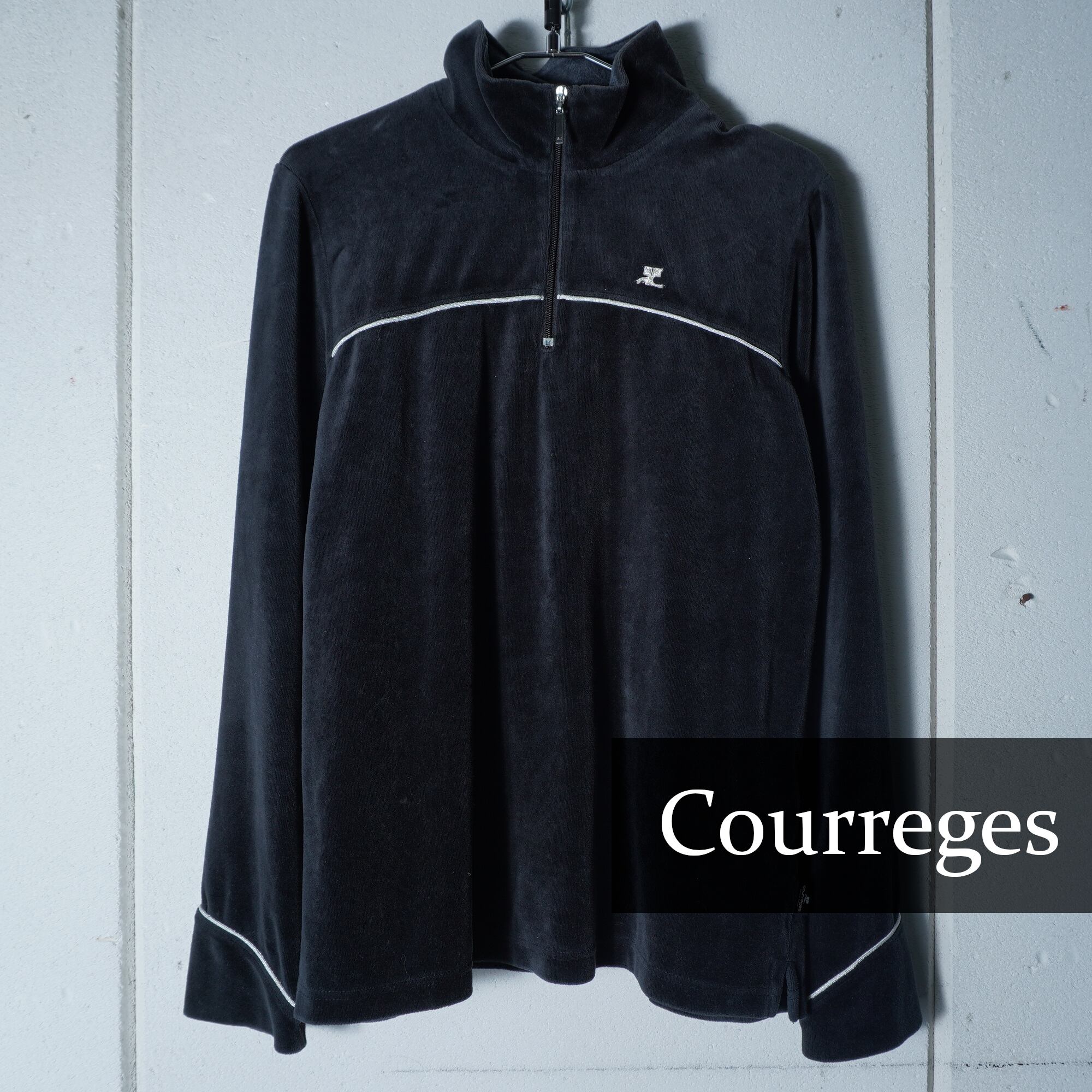 【Courrèges】クレージュ ハーフジップベロアジャケット black