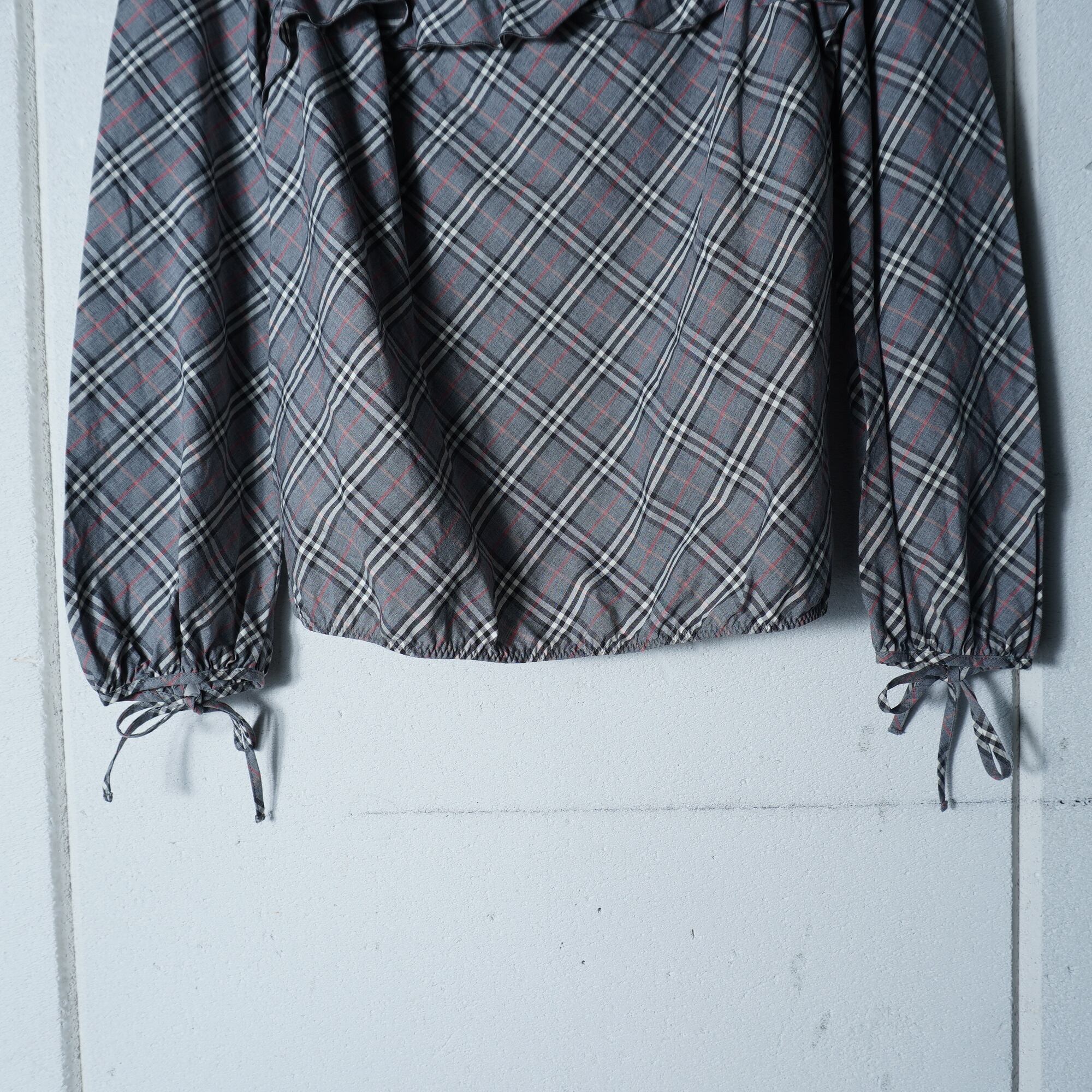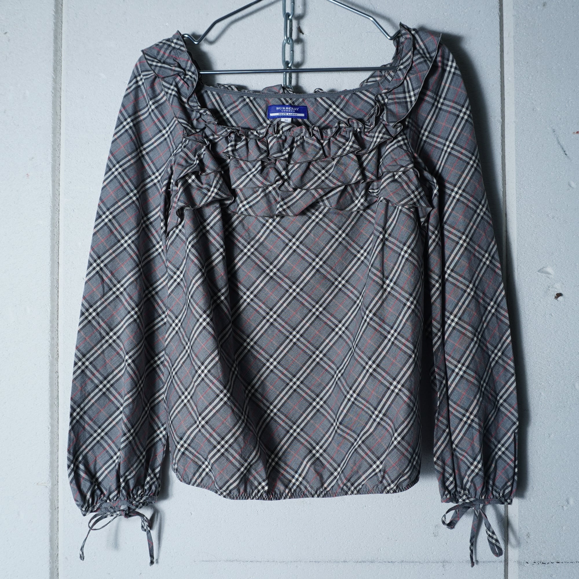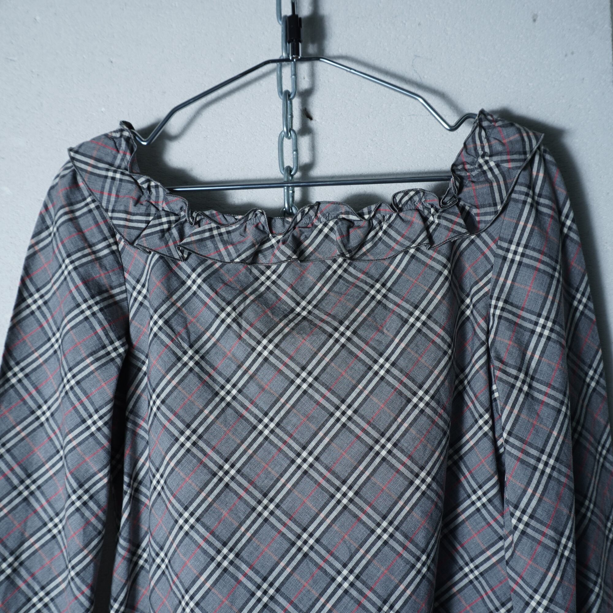 【BURBERRY】バーバリー チェック柄フリルブラウス gray