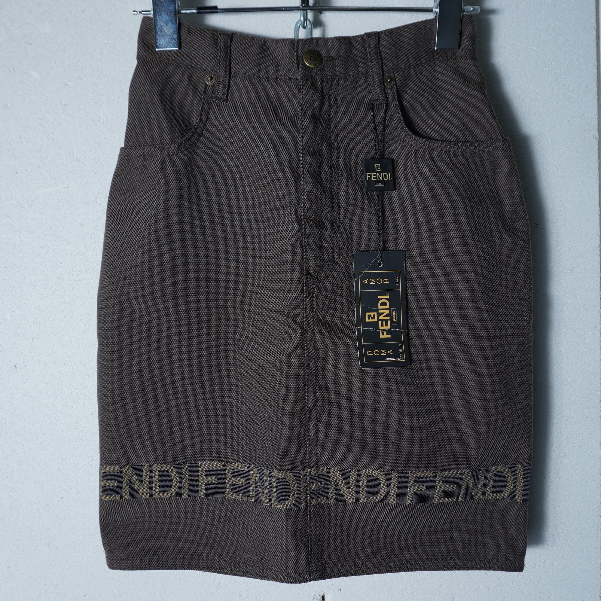 【FENDI】フェンディ タグ付ロゴラインスカート gray