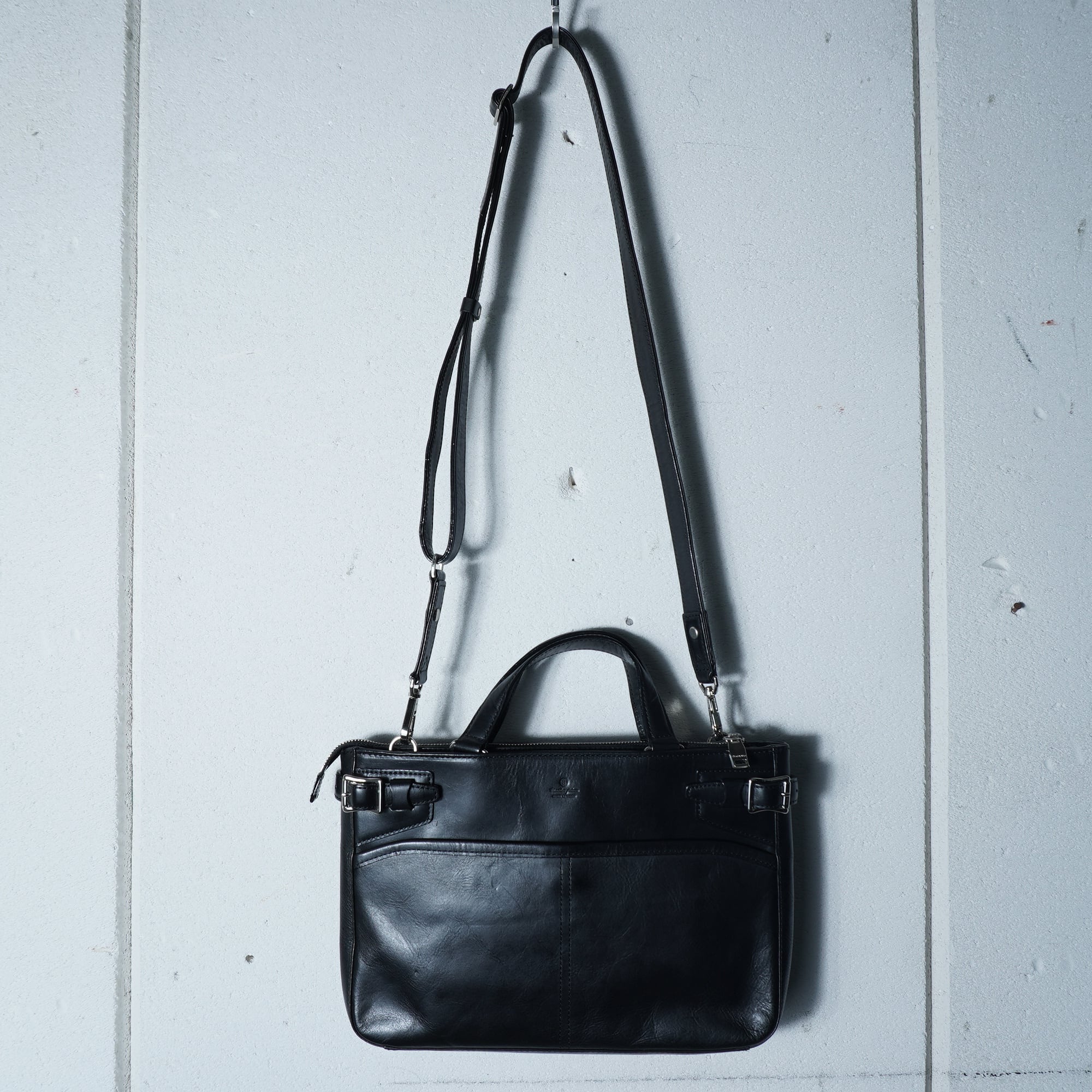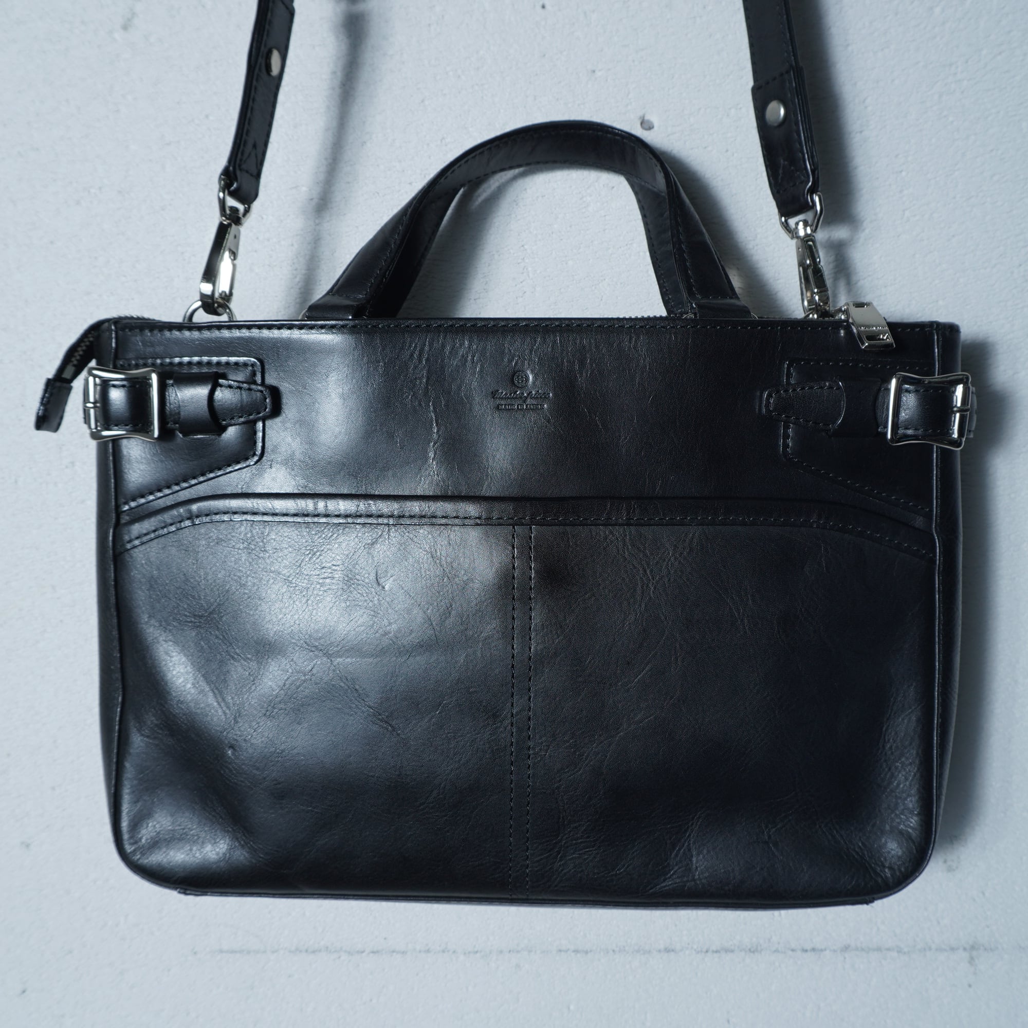 【masterpiece】マスターピース 美品 ロゴ入2WAYレザーショルダーバッグ black