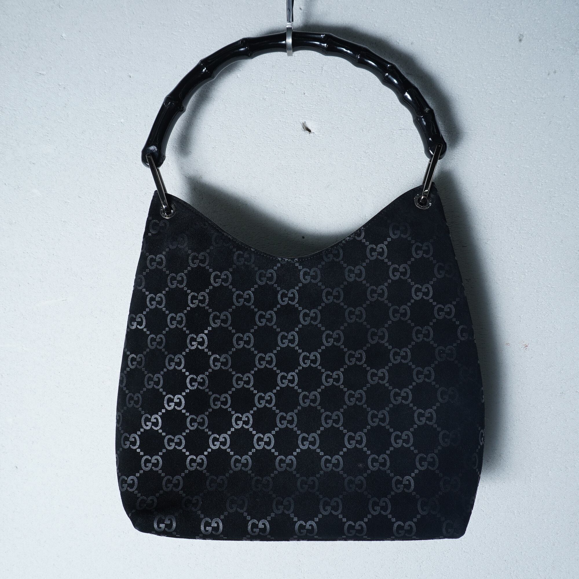 【GUCCI】グッチ バンブーGGロゴスエードレザーハンドバッグ black