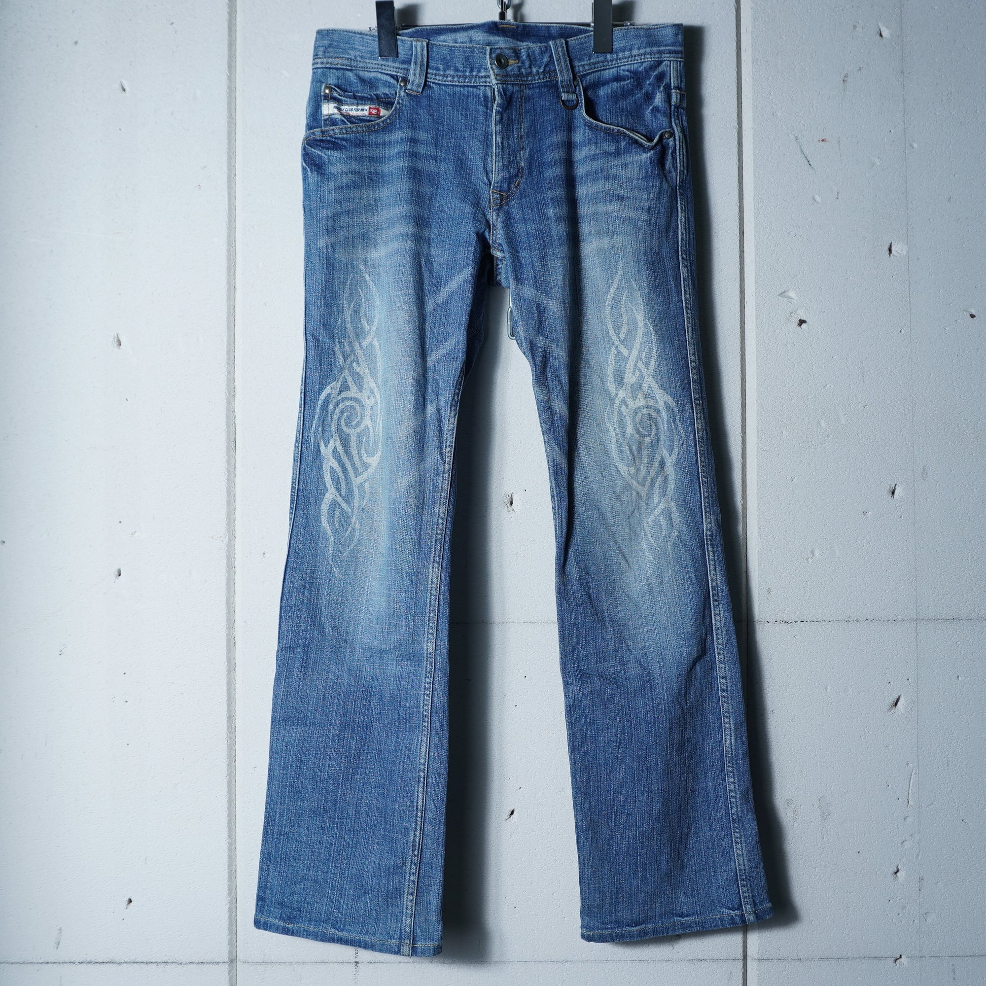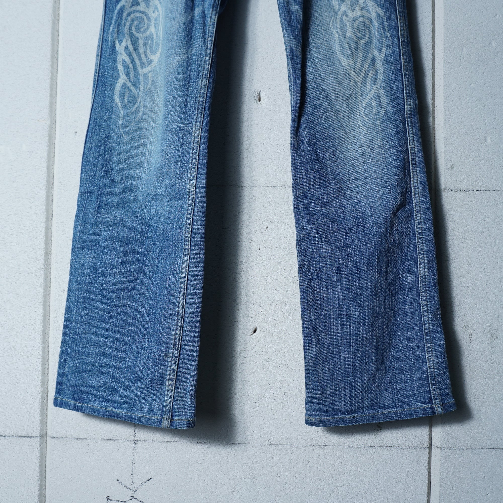 ・個性的なトライバルデザインのフレアデニム