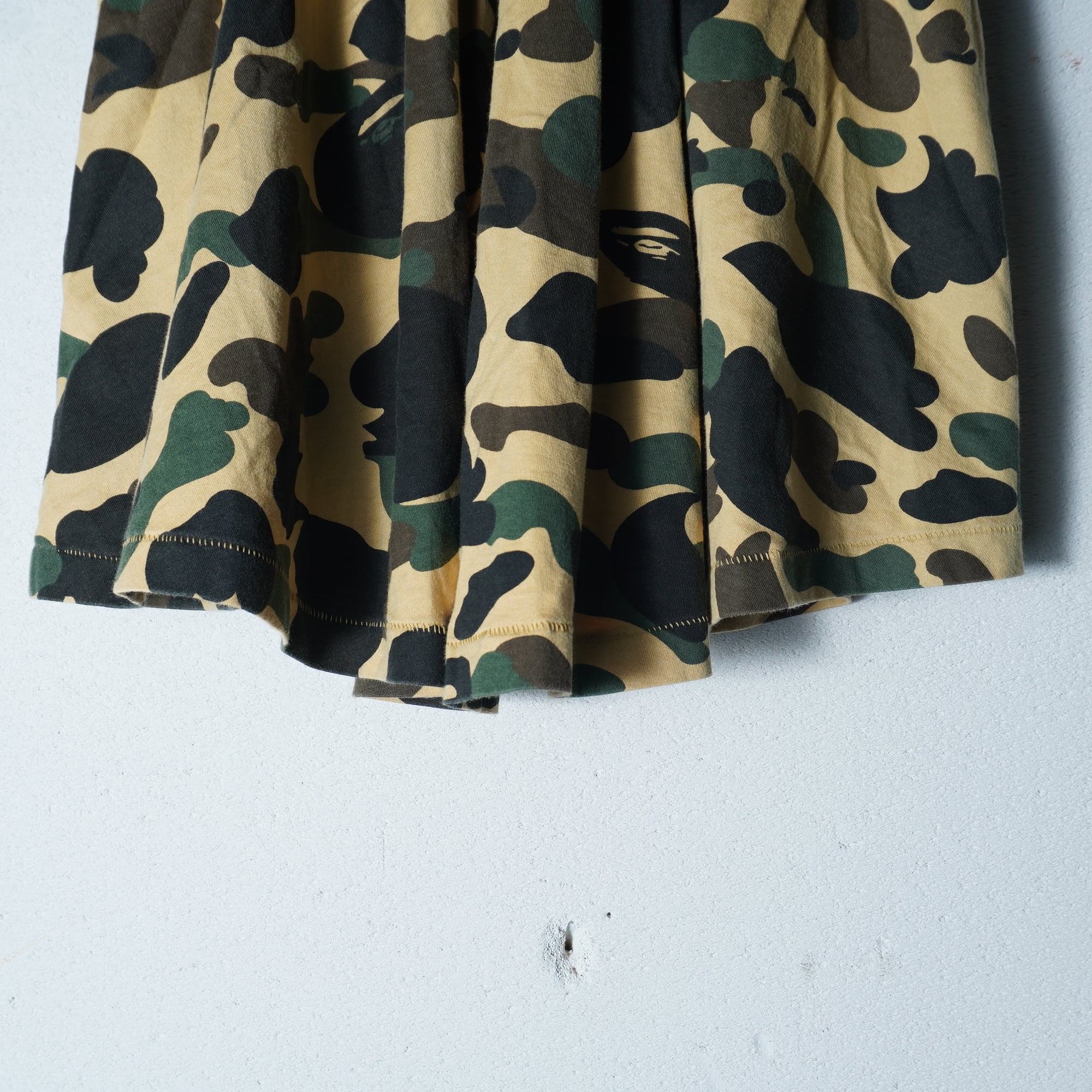 【A BATHING APE】アベイシングエイプ Y2K 金タグ カモフラ柄フレアミニスカート