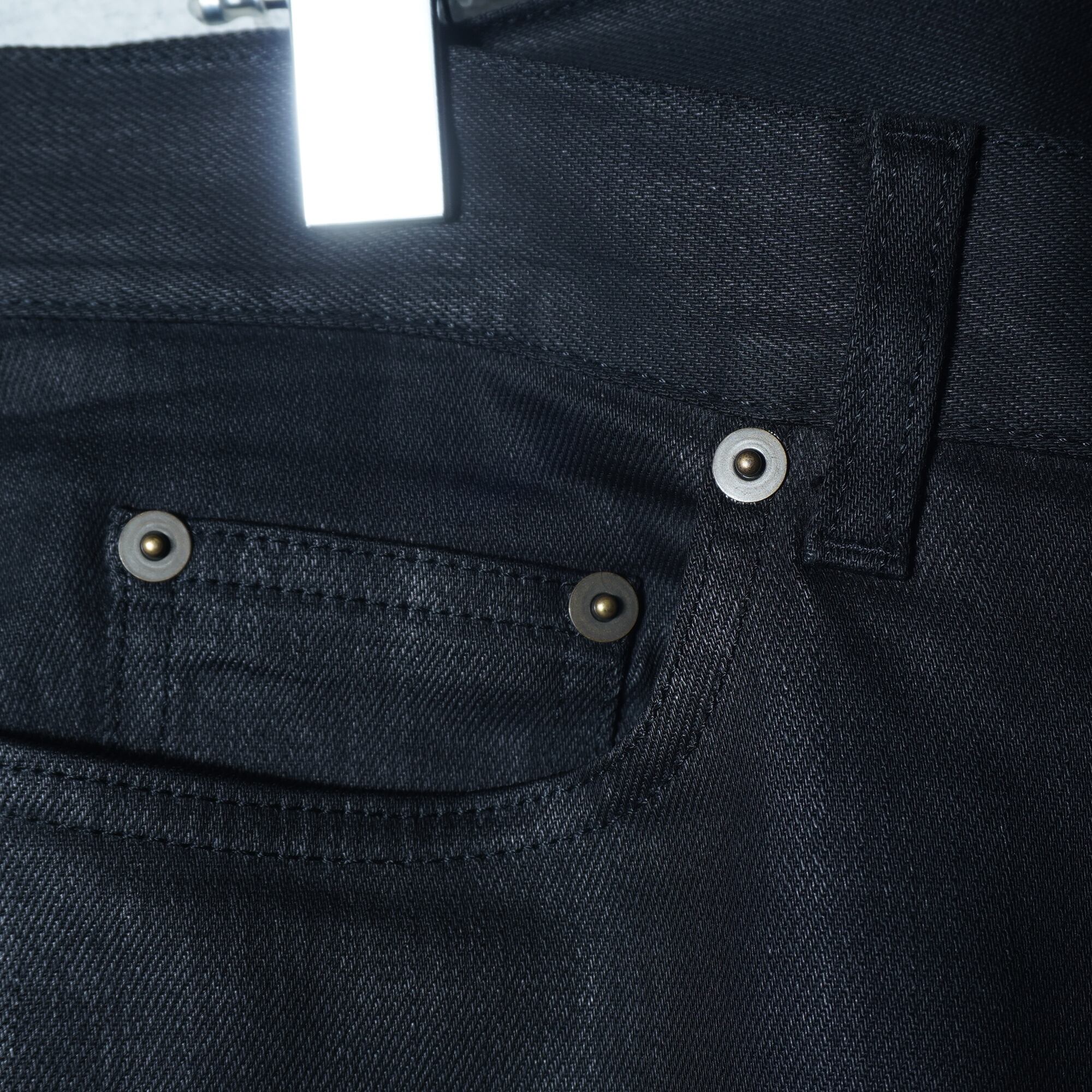 ・上質なコーティング仕上げが魅力的なデニムで、スタイリッシュなシルエットを実現