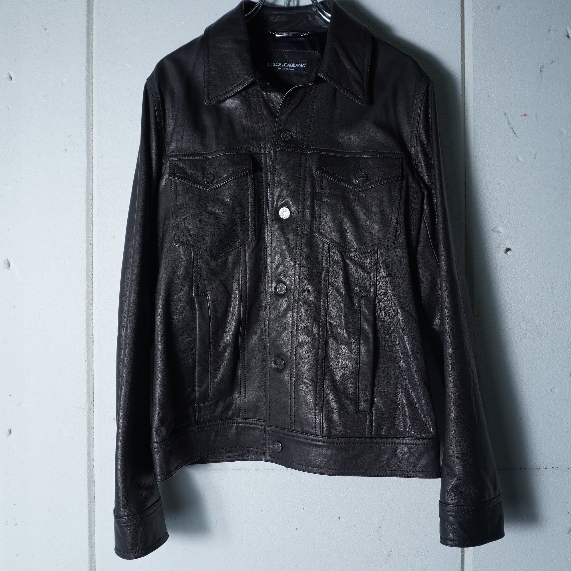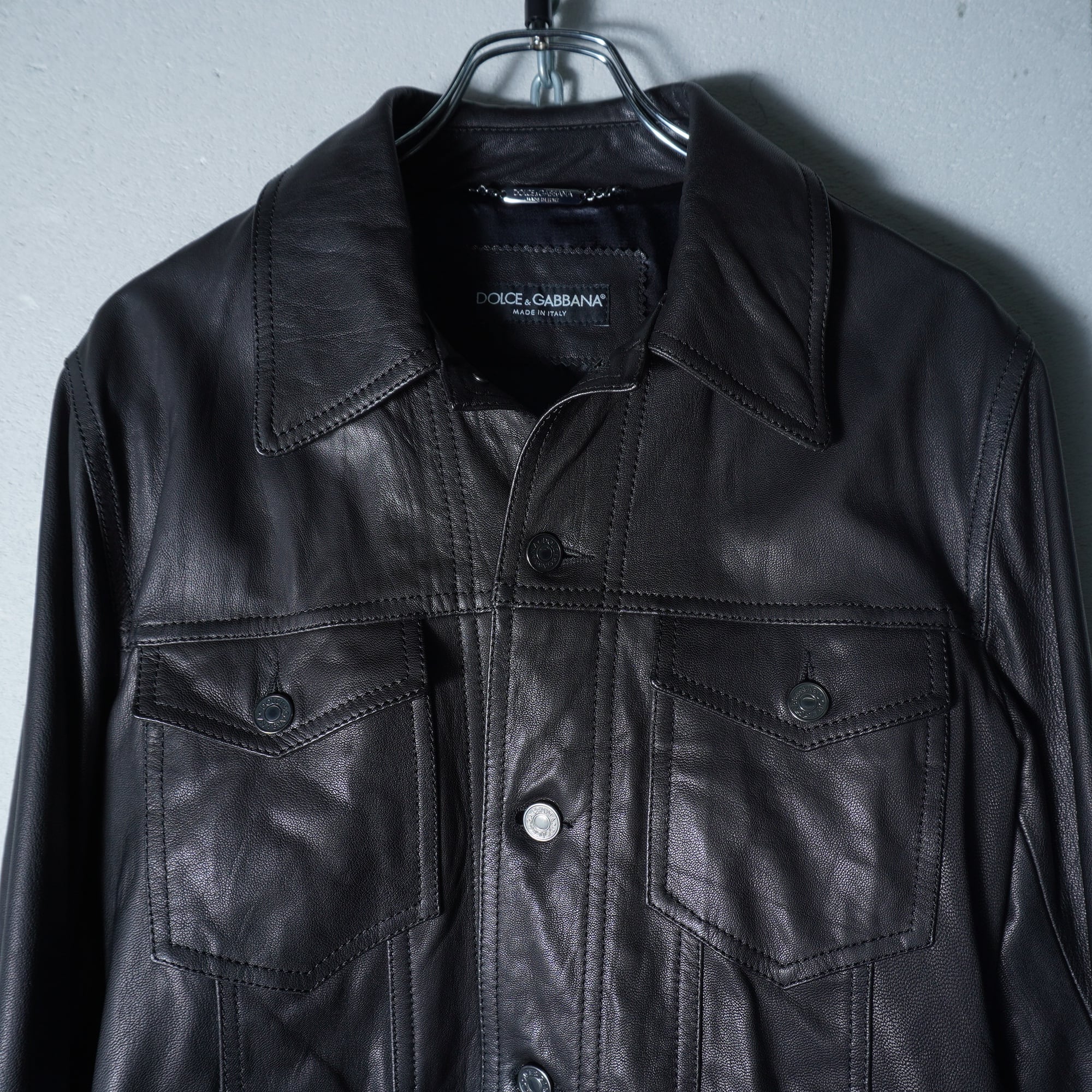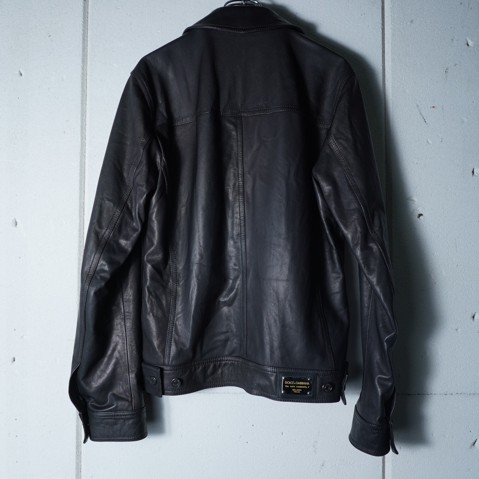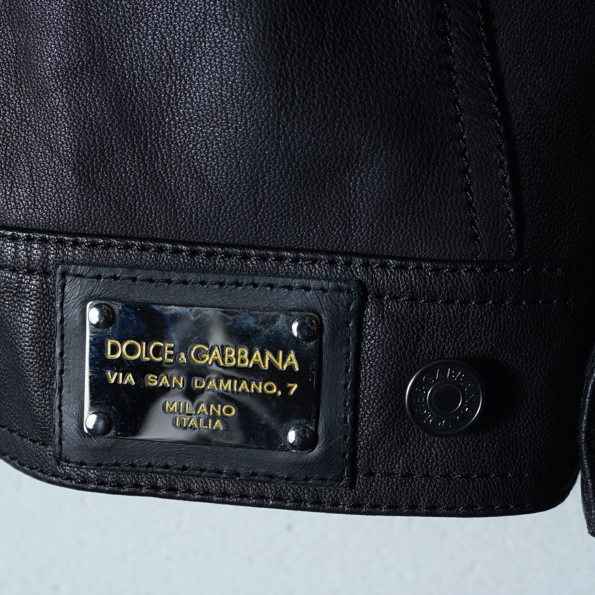 【DOLCE&GABBANA】ドルチェ&ガッバーナ 美品 "ARCHIVE" ロゴボタンゴートスキンジャケット black