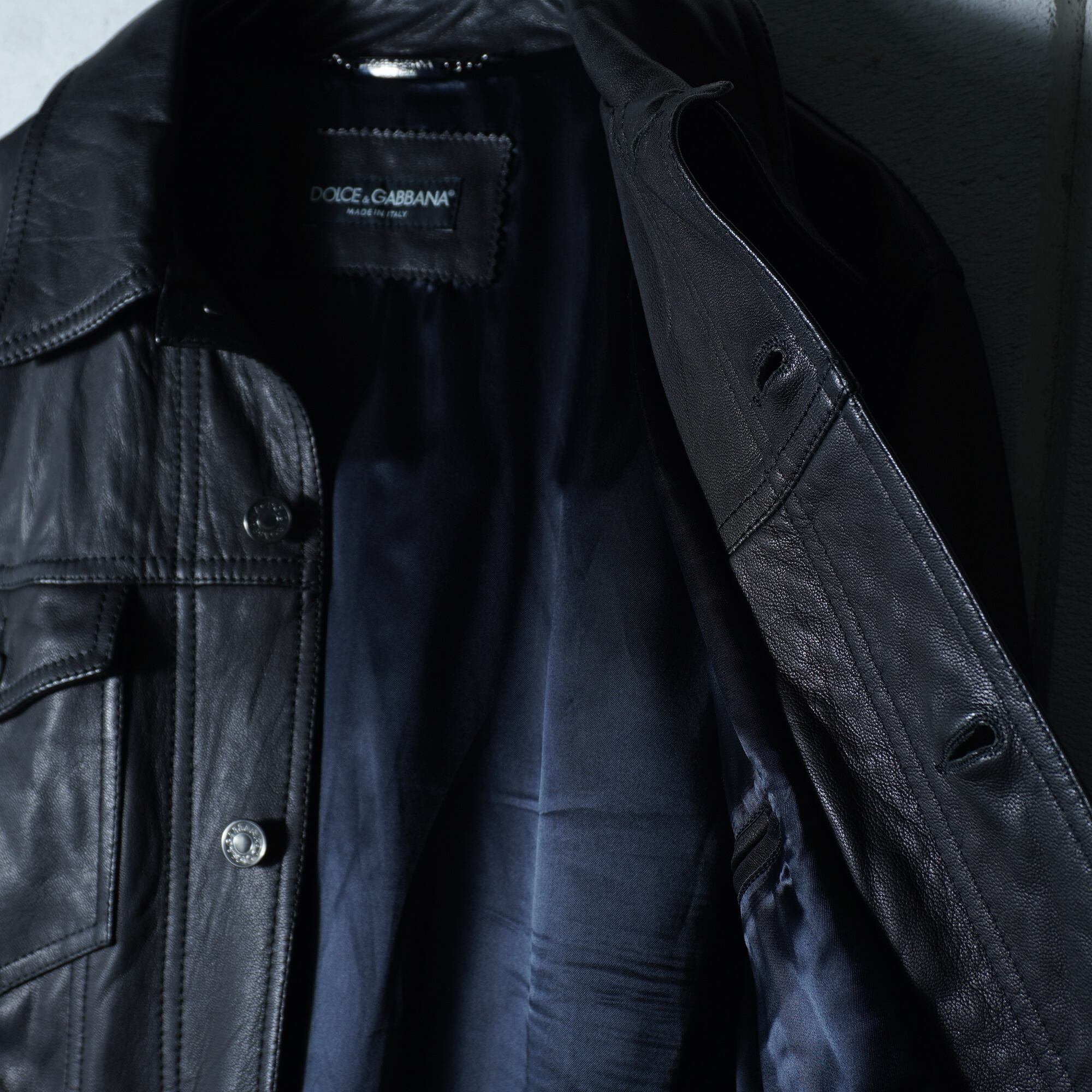 ・洗練されたデザインが魅力の【DOLCE&GABBANA】ドルチェ&ガッバーナ 美品 "ARCHIVE" ロゴボタンゴートスキンジャケット