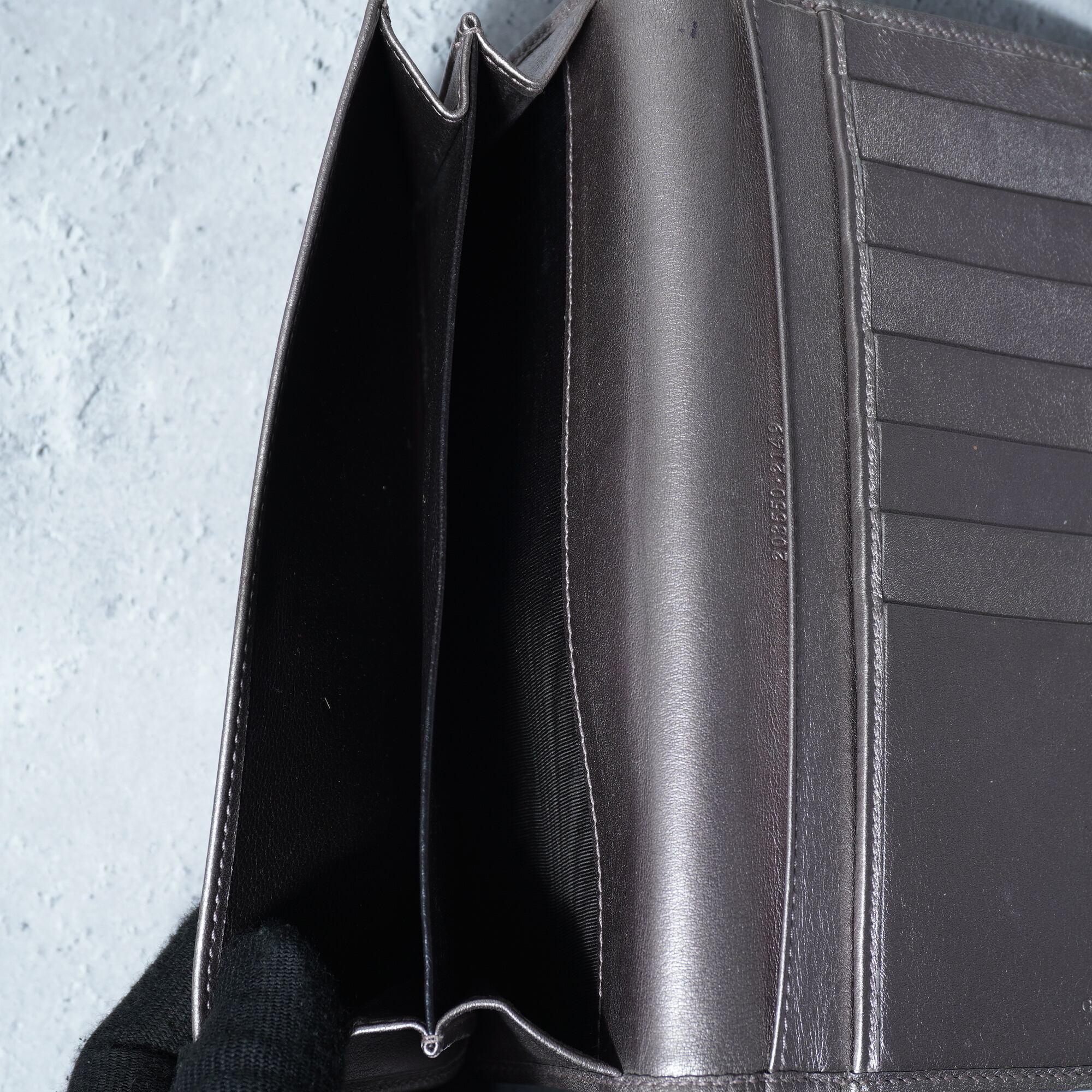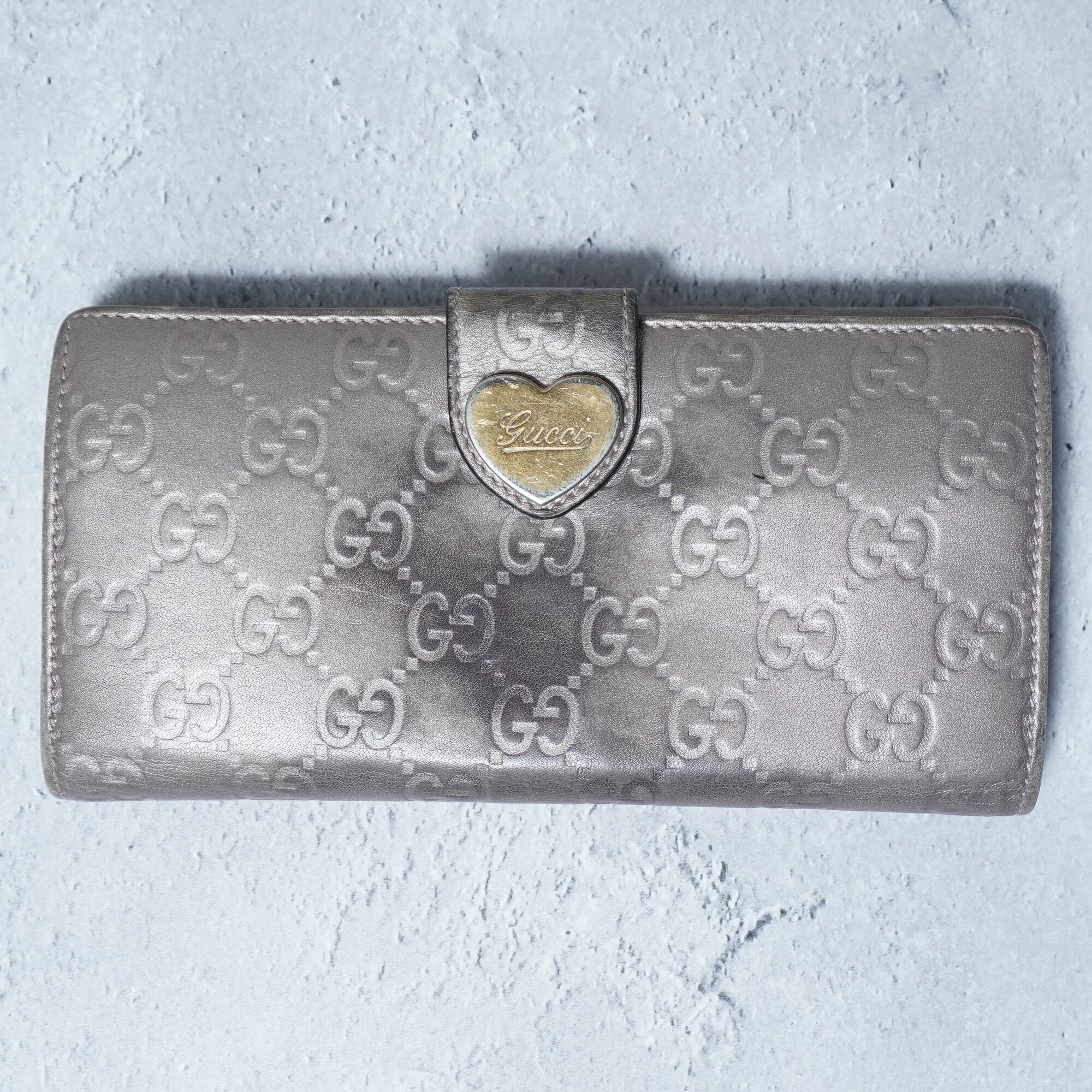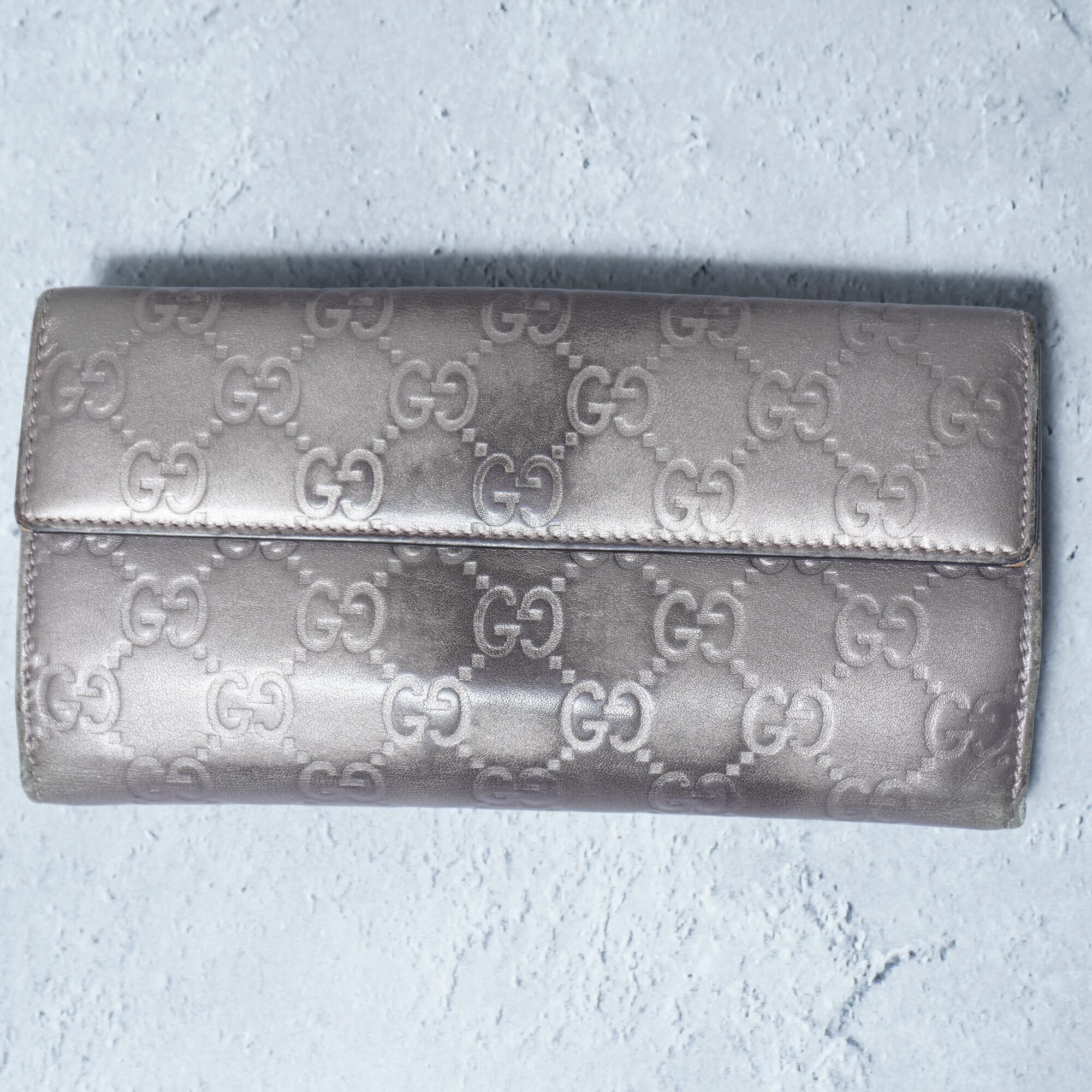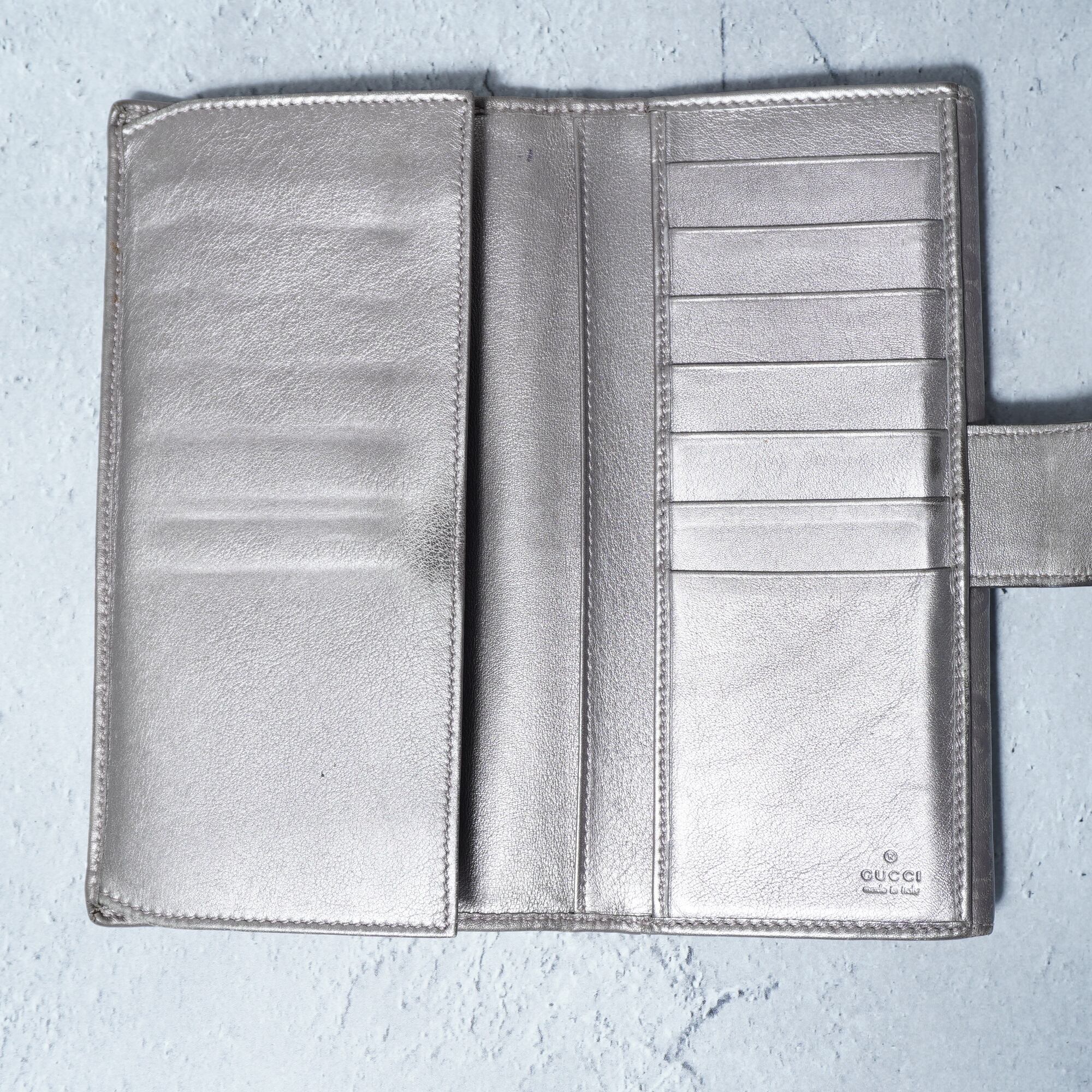 【GUCCI】グッチ GGロゴ総柄レザーロングウォレット gray silver