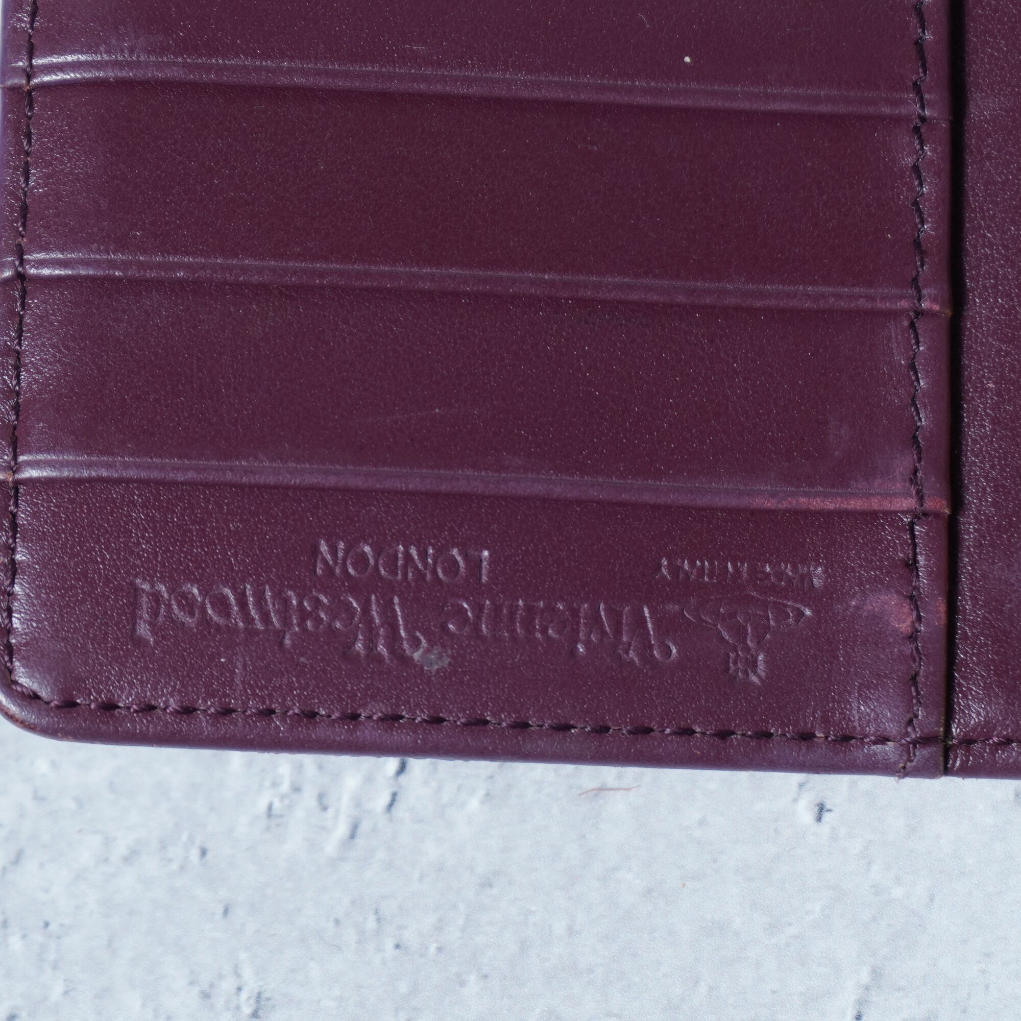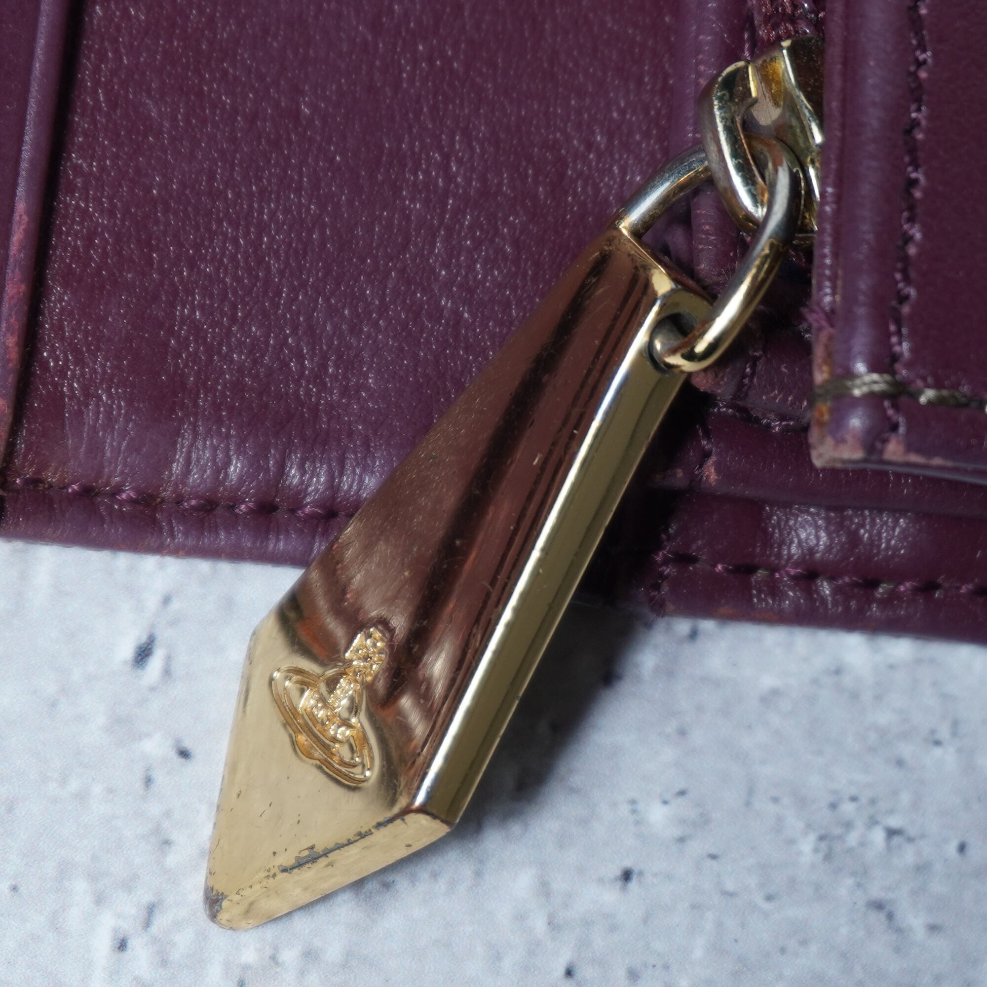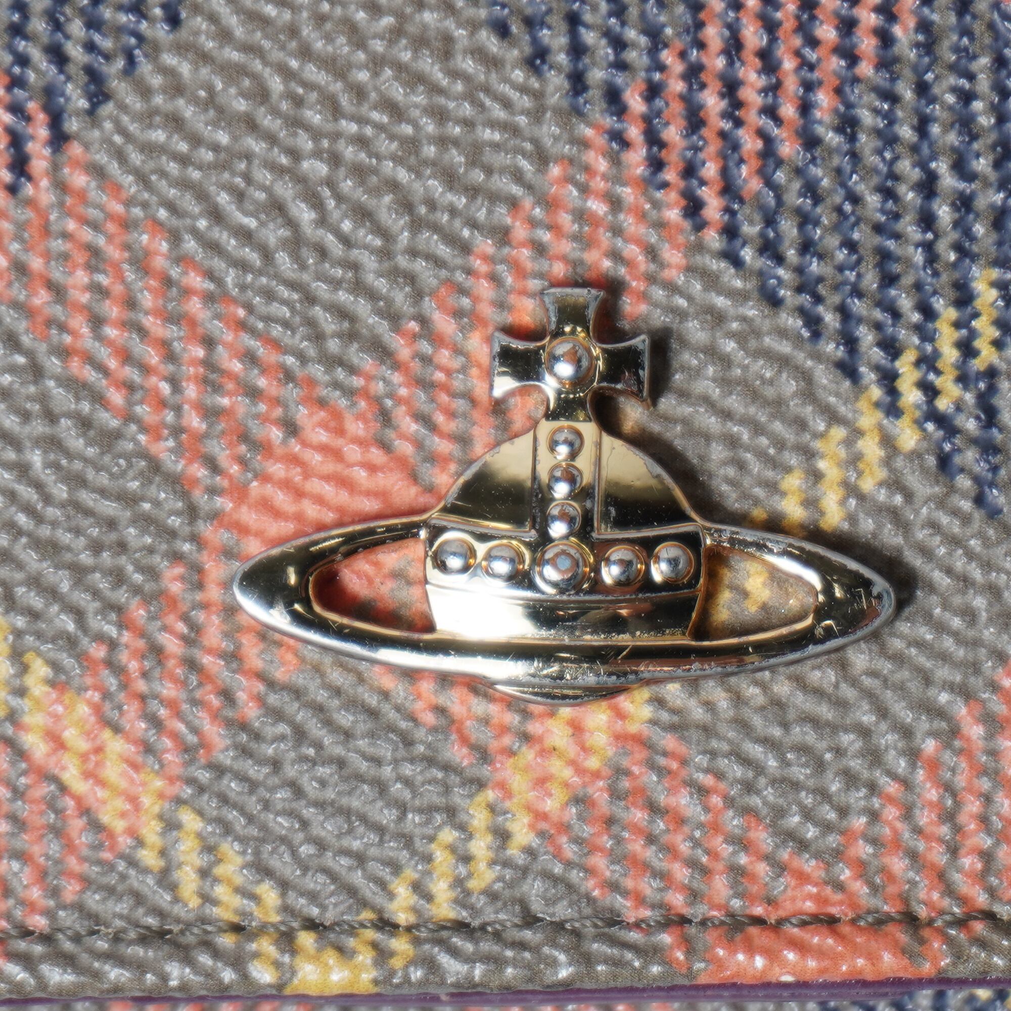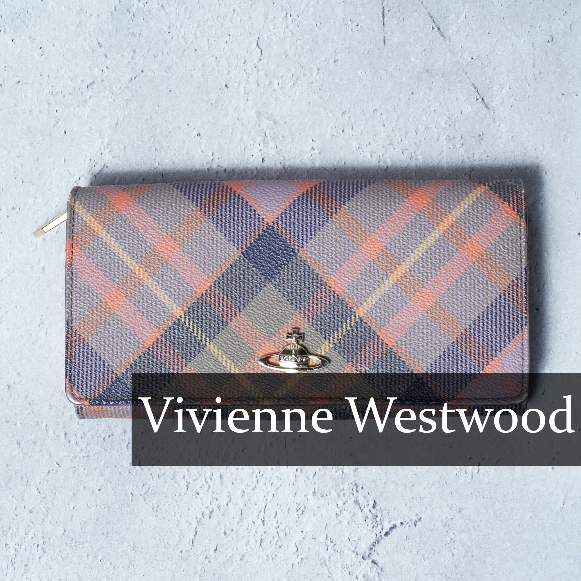 【Vivienne Westwood】ヴィヴィアンウエストウッド オーブロゴ チェック柄レザーロングウォレット orange&purple&yellow