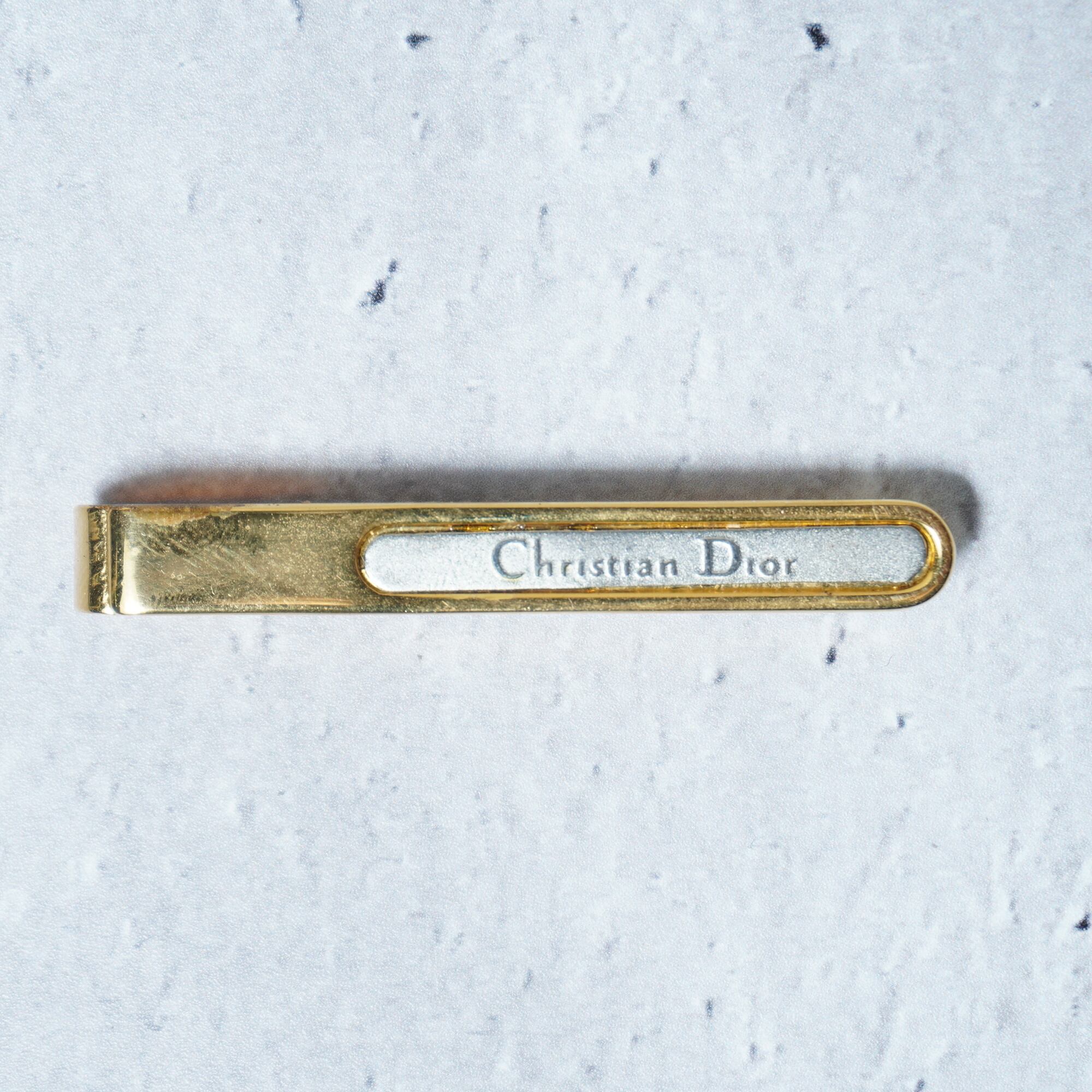 【Christian Dior】クリスチャンディオール ロゴ入ネクタイピン 箱付 gold