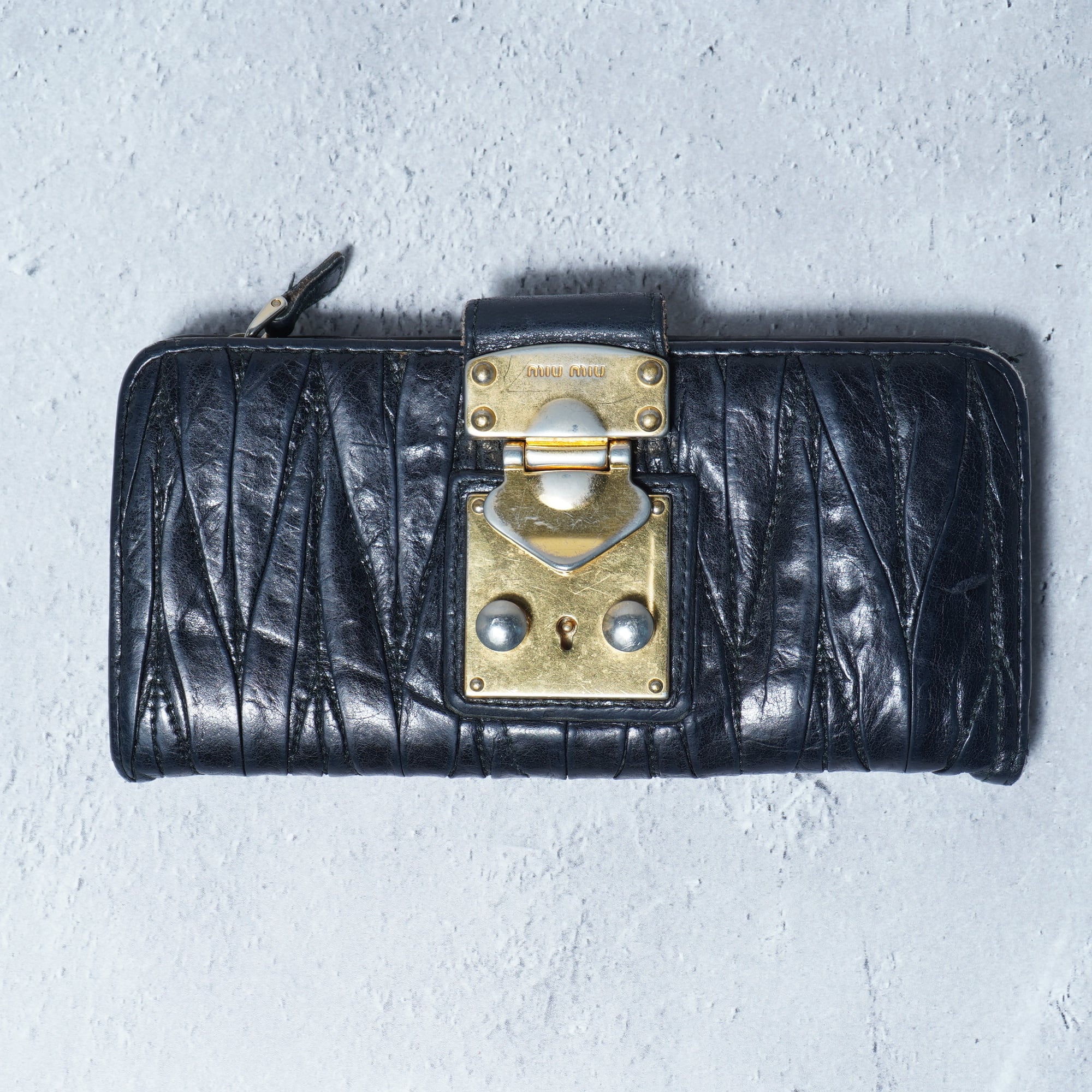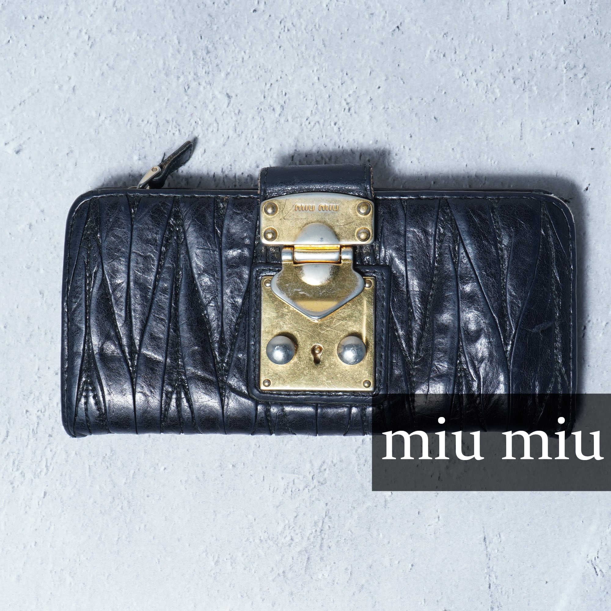 【miu miu】ミュウミュウ ロゴ入 レザーロングウォレット black