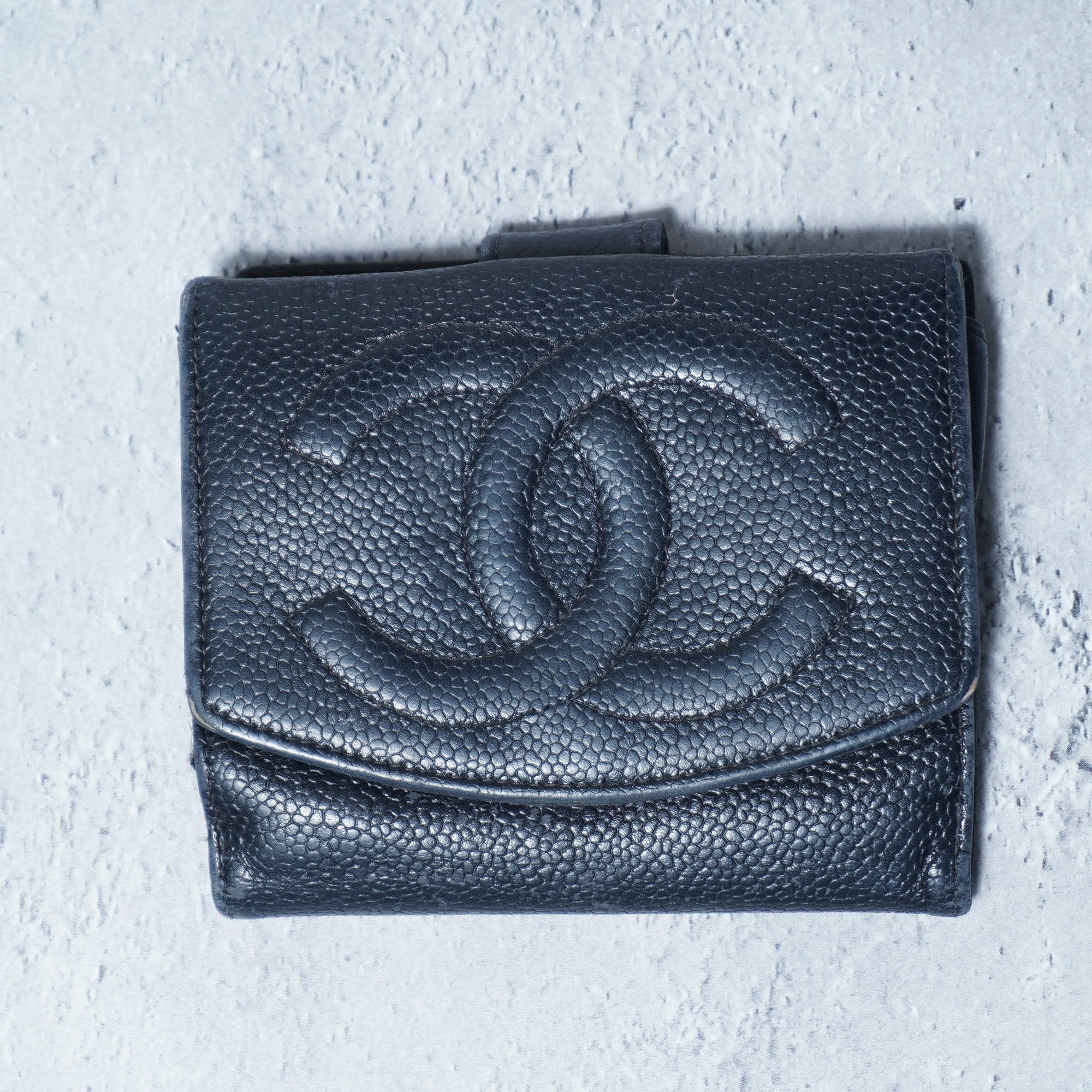 【CHANEL】シャネル ココマークエンボスロゴレザー折り畳みウォレット