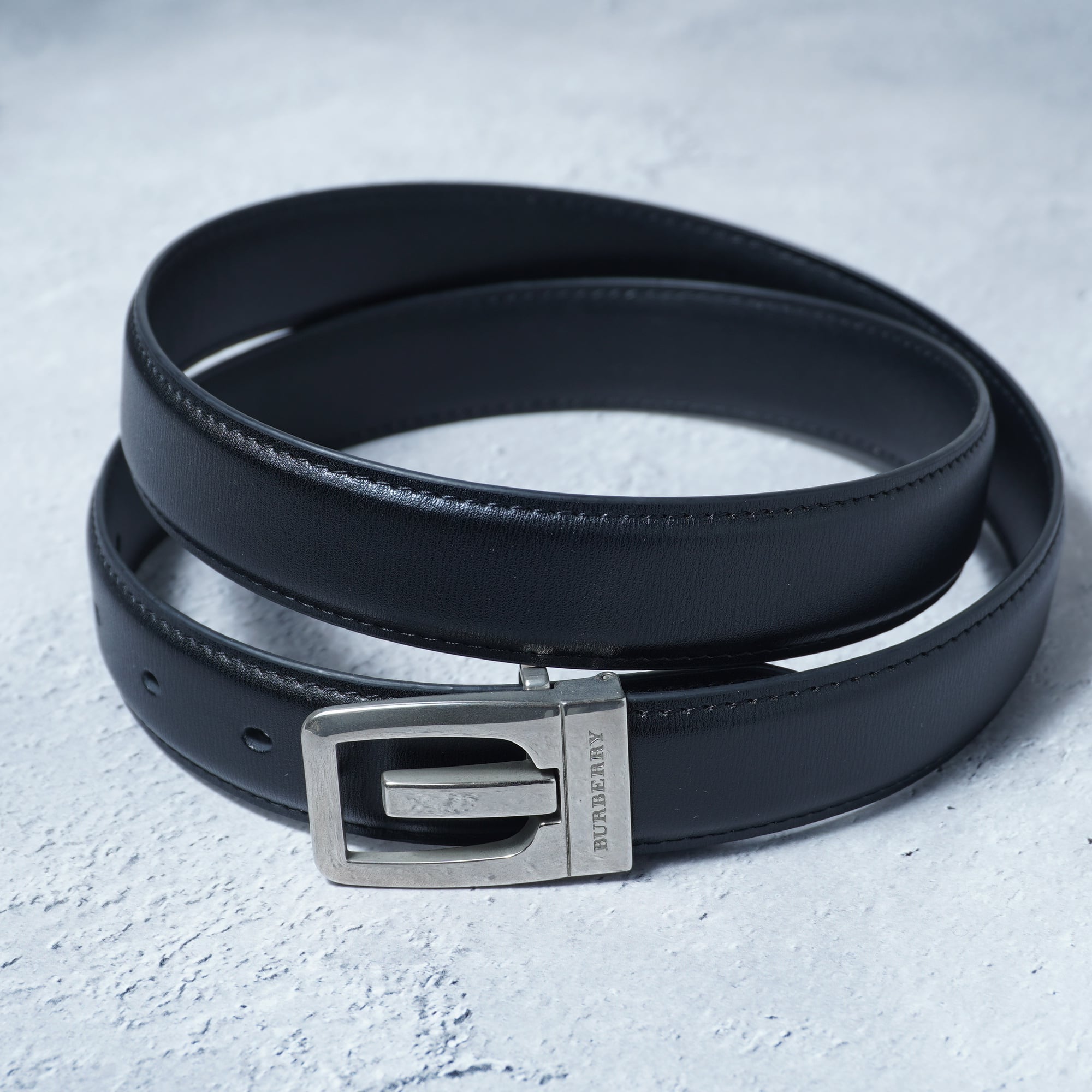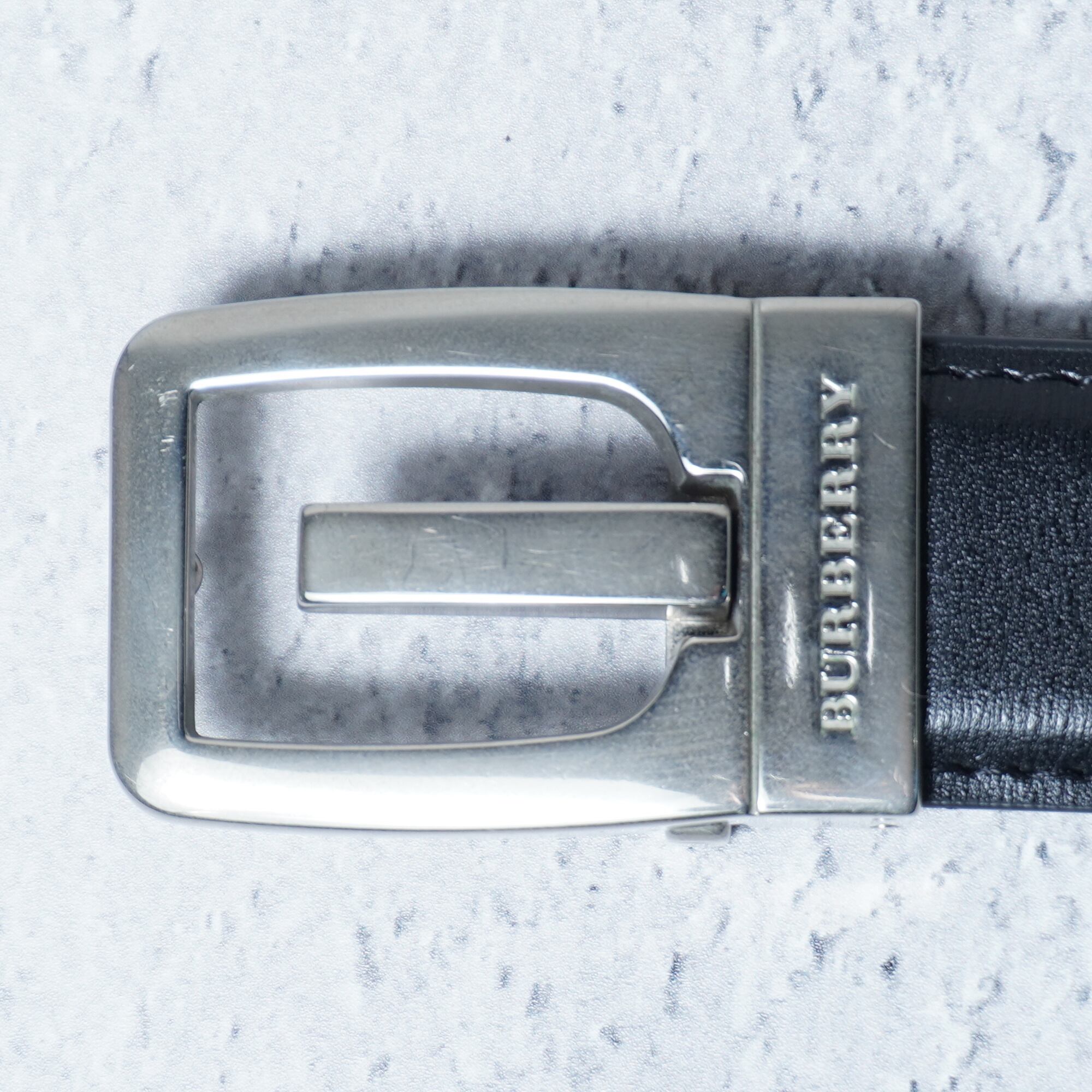 【BURBERRY】バーバリー ロゴ入シルバーバックルレザーベルト black