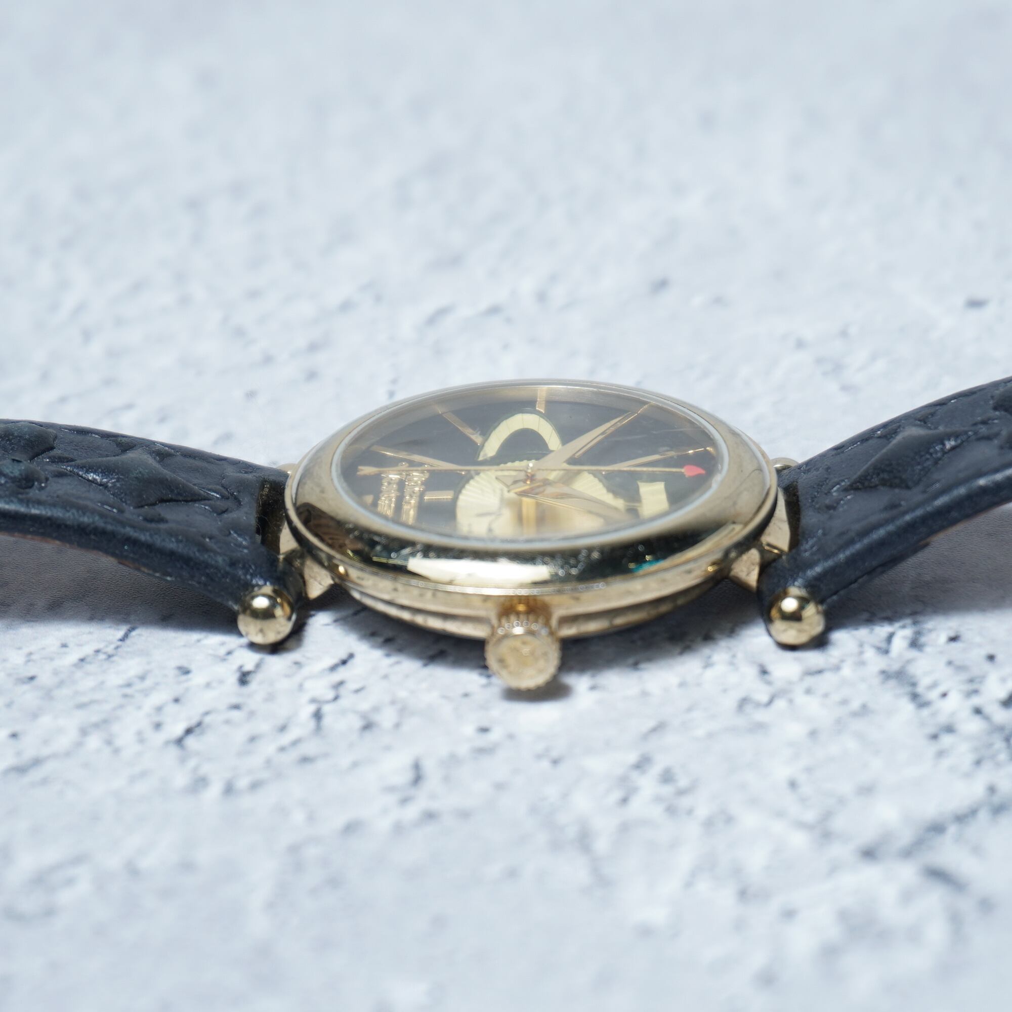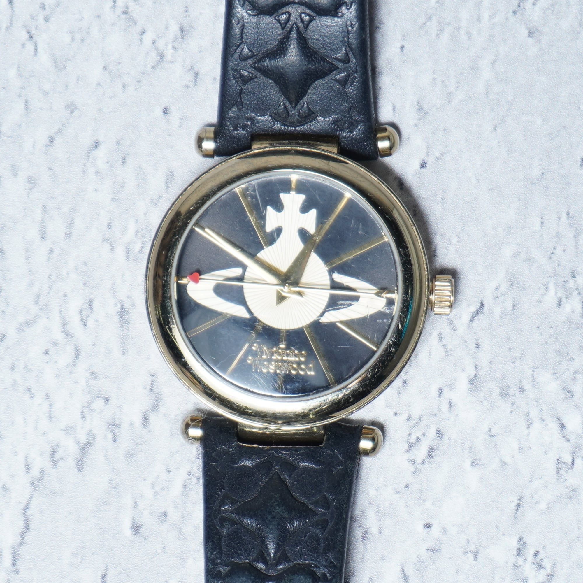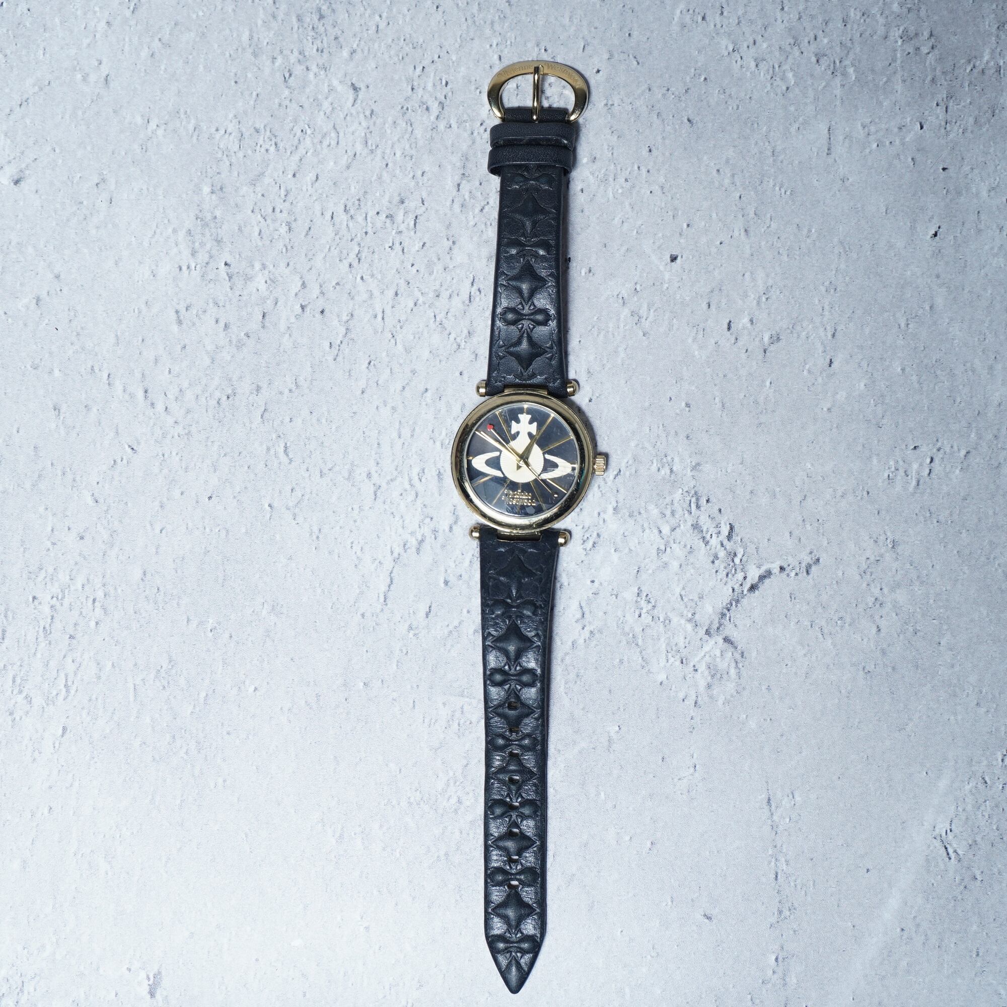 【Vivienne Westwood】ヴィヴィアンウエストウッド稼働品 オーブフェイスクォーツウォッチ black&gold