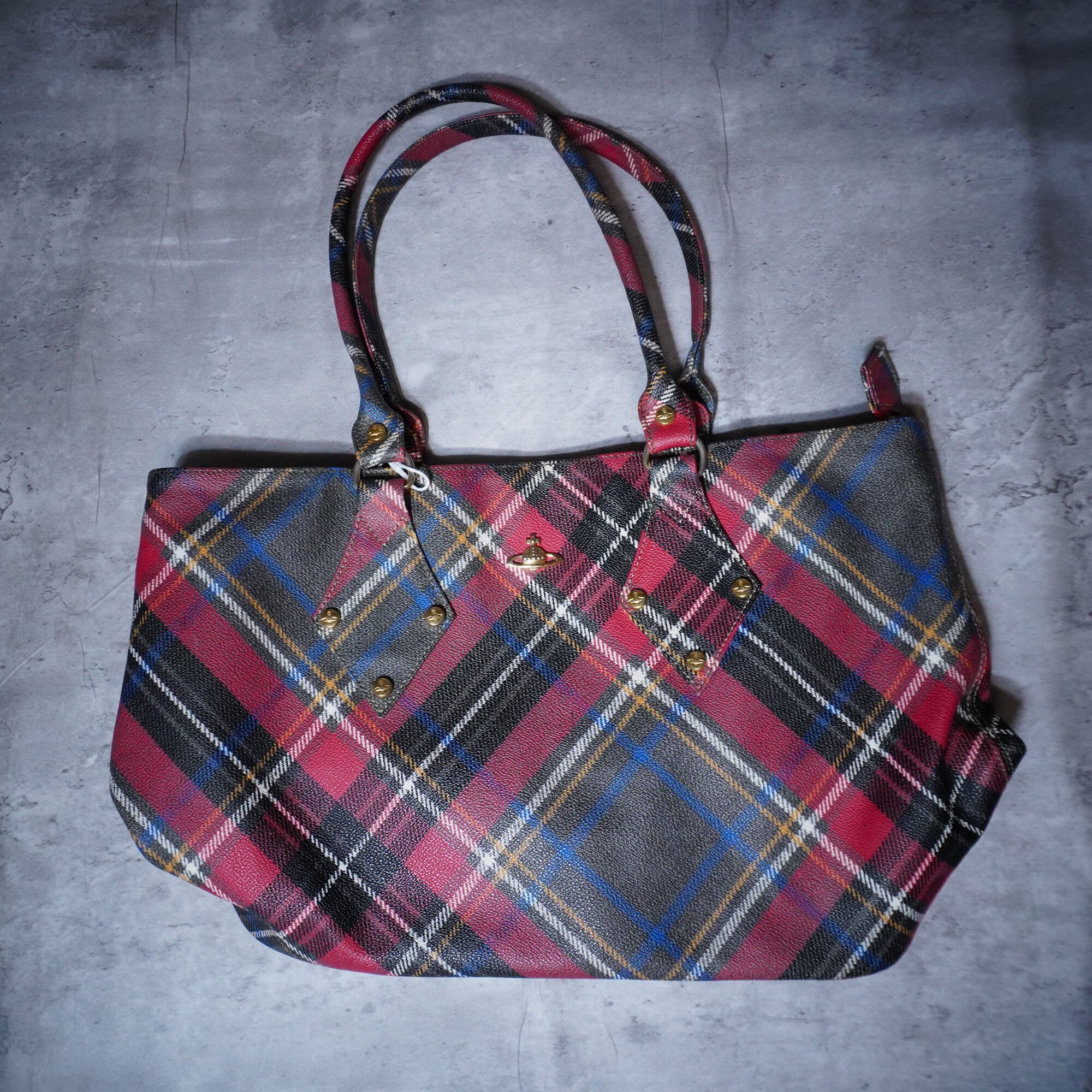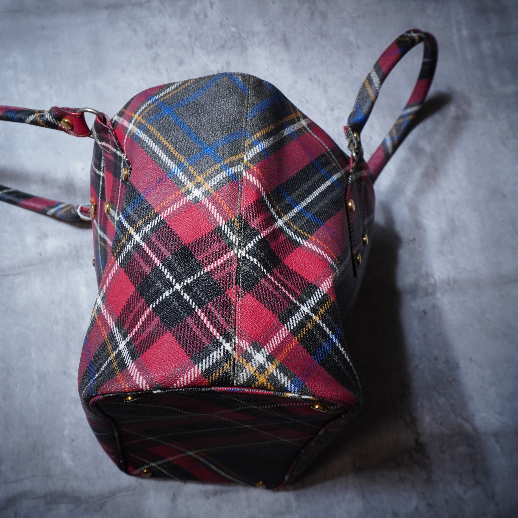 【Vivienne Westwood】ヴィヴィアンウエストウッド オーブモチーフチェック柄PVCトートバッグ