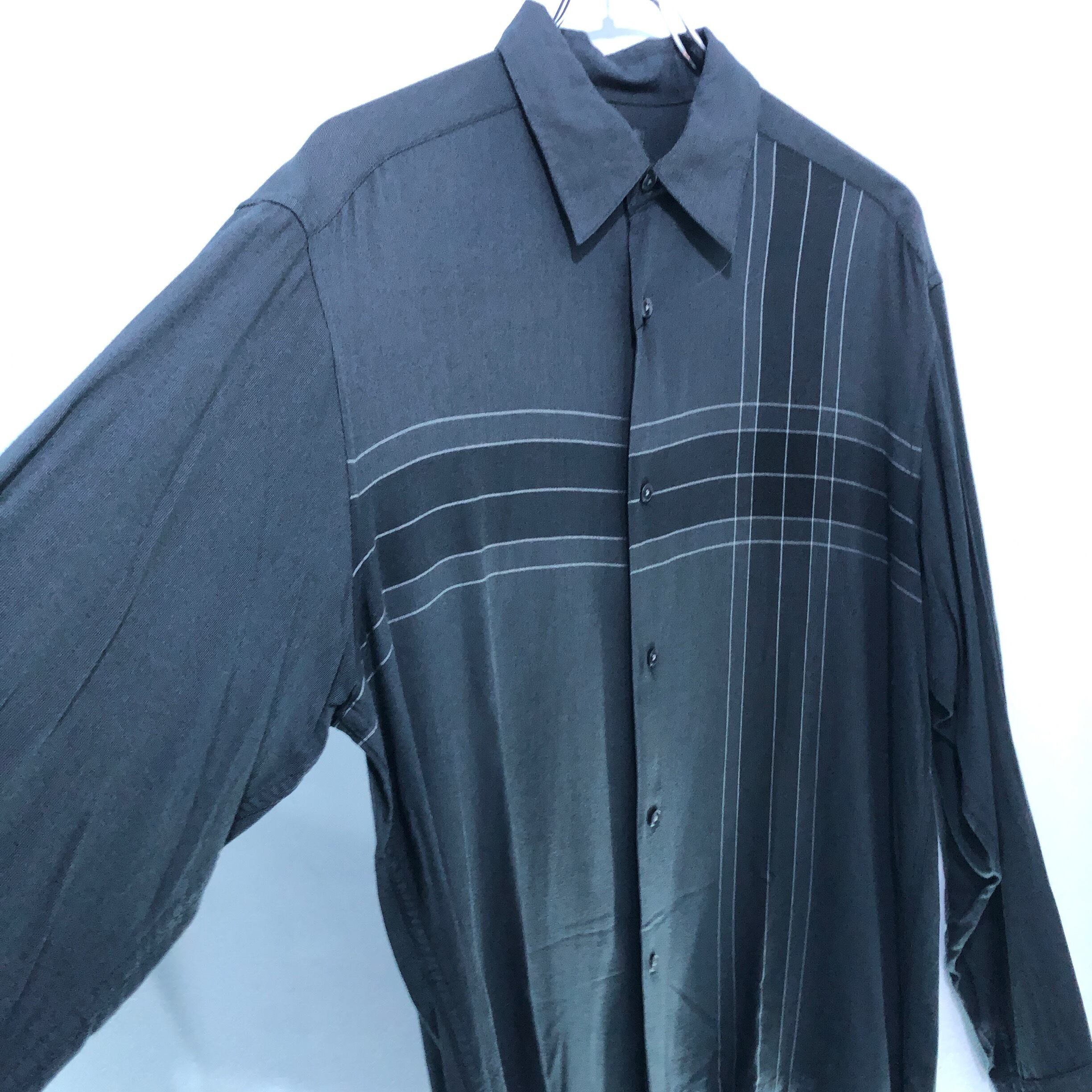 【Over size】シャドーチェックレーヨンシャツ グレーブラック