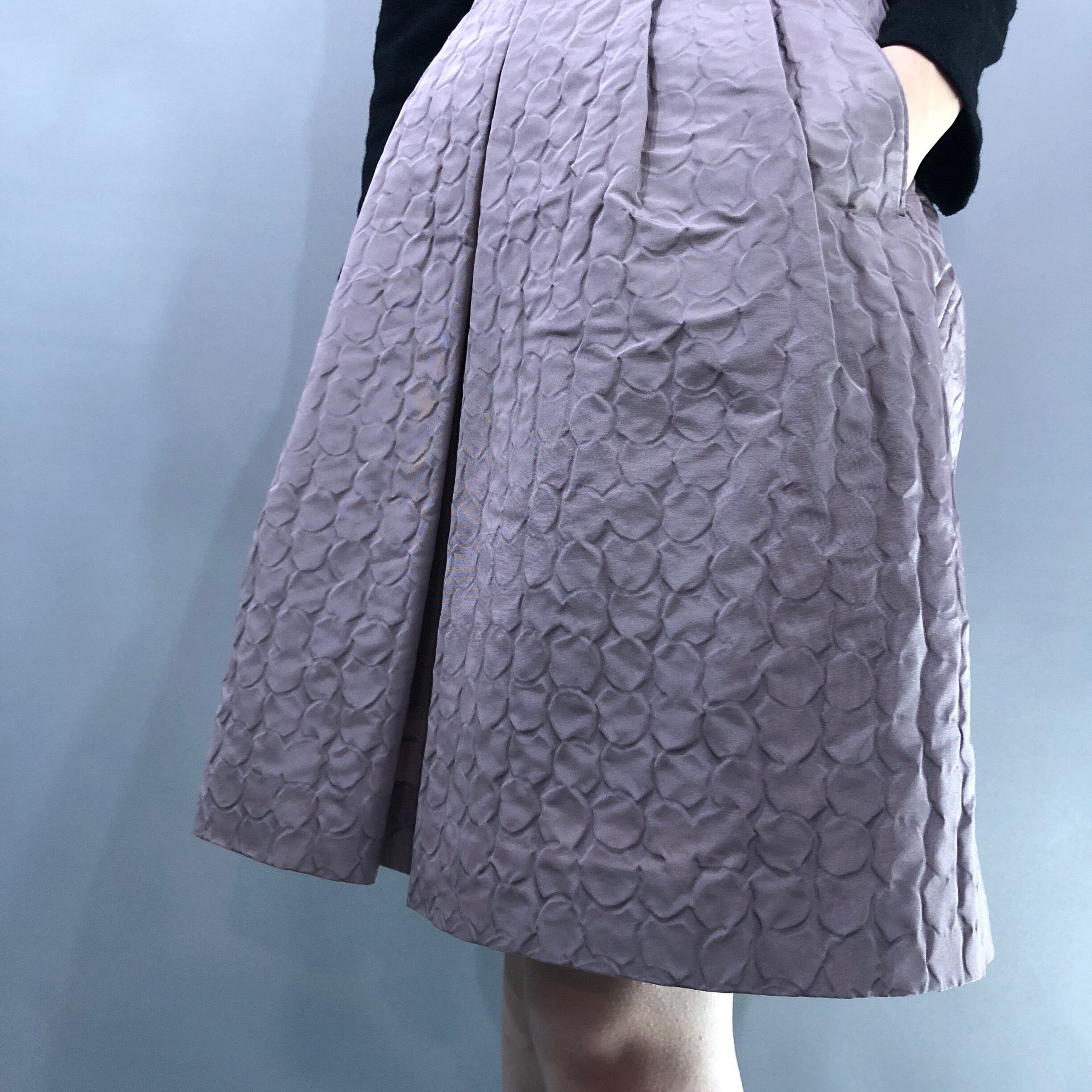 プラダらしいデザインが印象的なミディアム丈スカート。なめらかでしなやかな生地はシワも付きにくく機能性も抜群。シルエットも大変綺麗で上質なお品です。