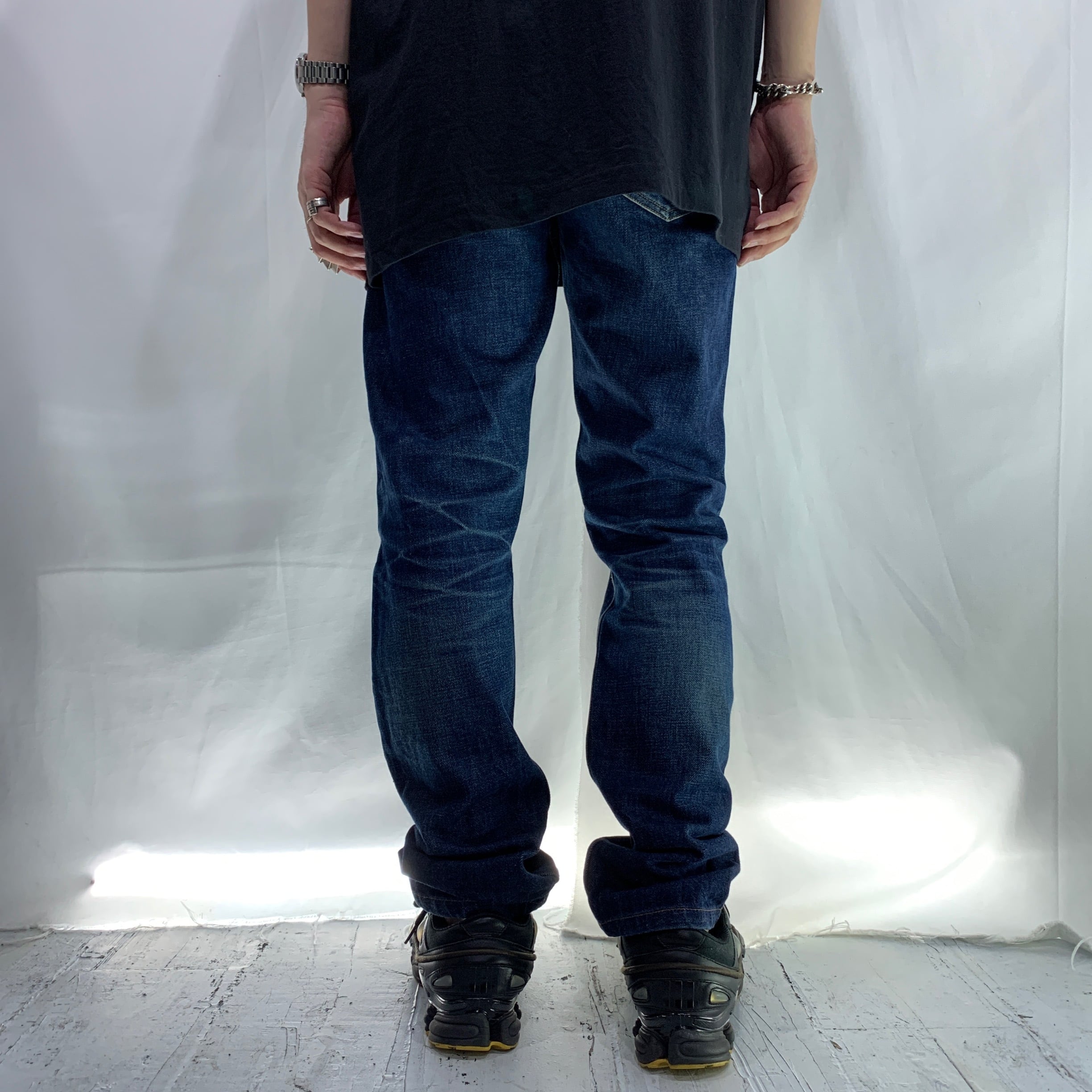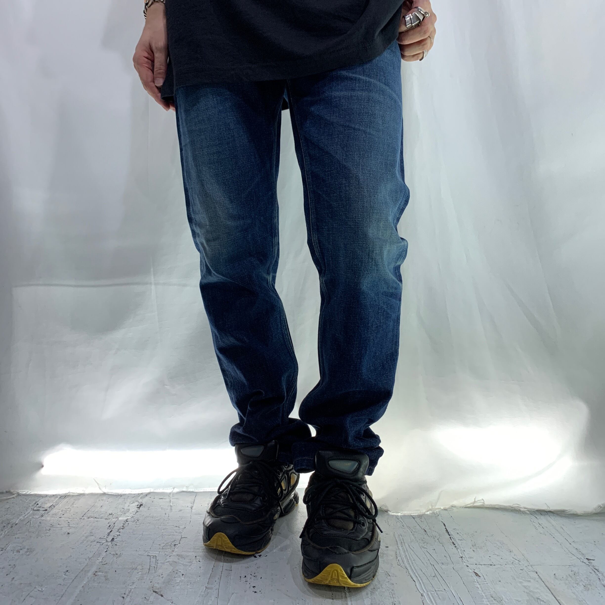 ノンストレッチデニムのスリムフィットなジーンズ。