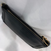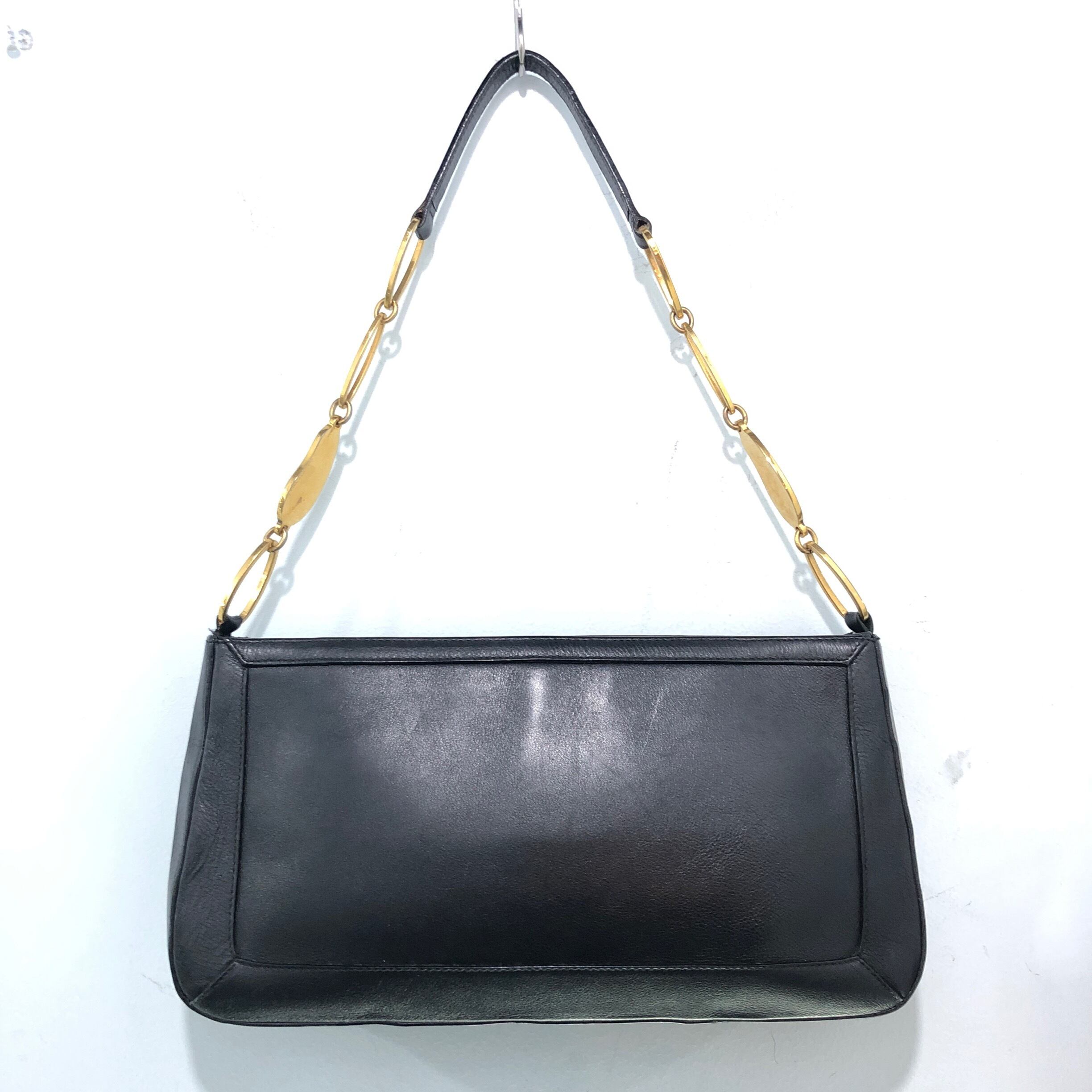 手持ち、肩かけでご利用いただけ、普段のコーディネートのアクセントとして使いやすいブラックレザーバッグ。