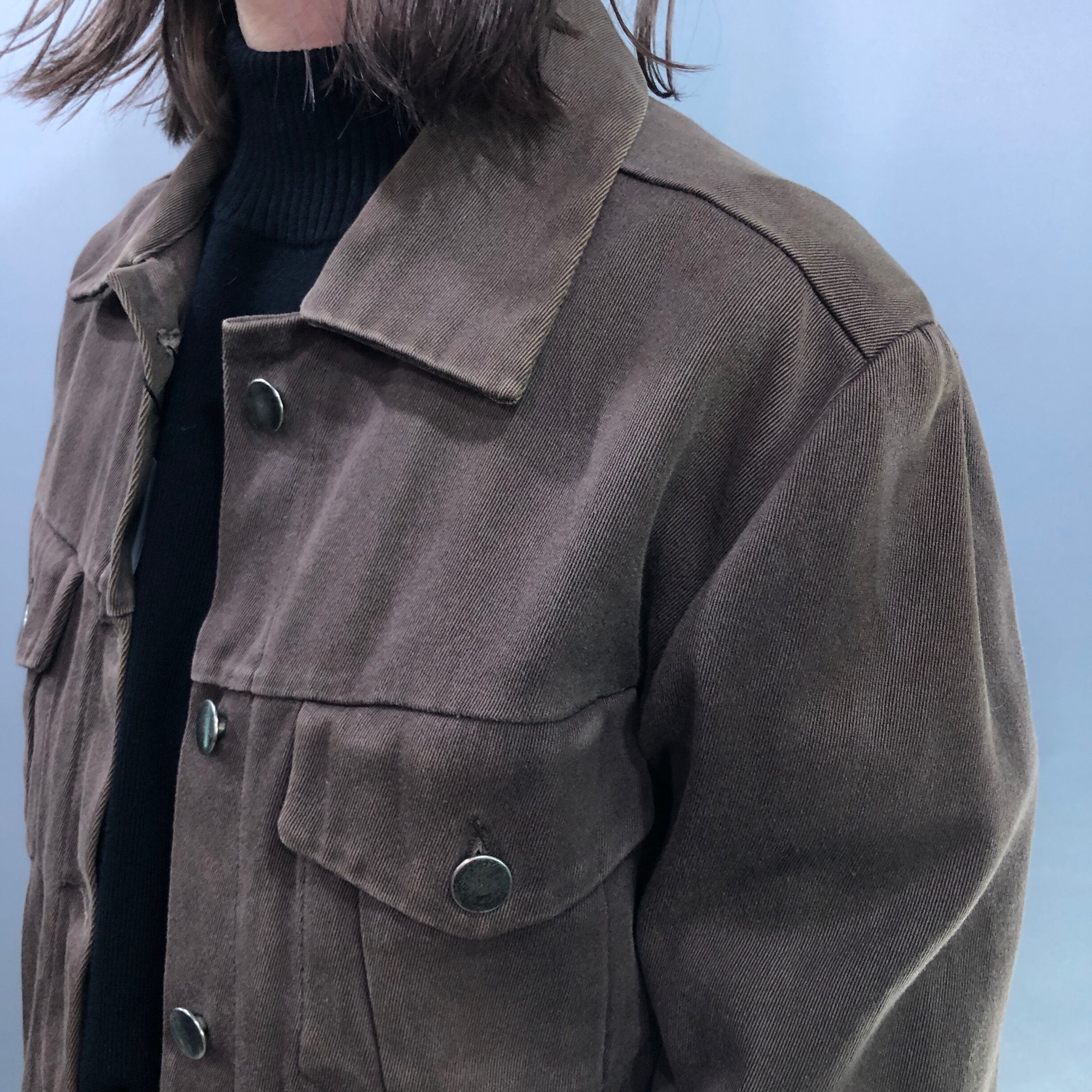 絶妙なヴィンテージカラーリングのコットンジャケット。タイトでスッキリとしたシルエットはボトムスを選びません。しっとりとしたなめらかな生地は着心地抜群、これからの季節はインナージャケットとしてもオススメです。