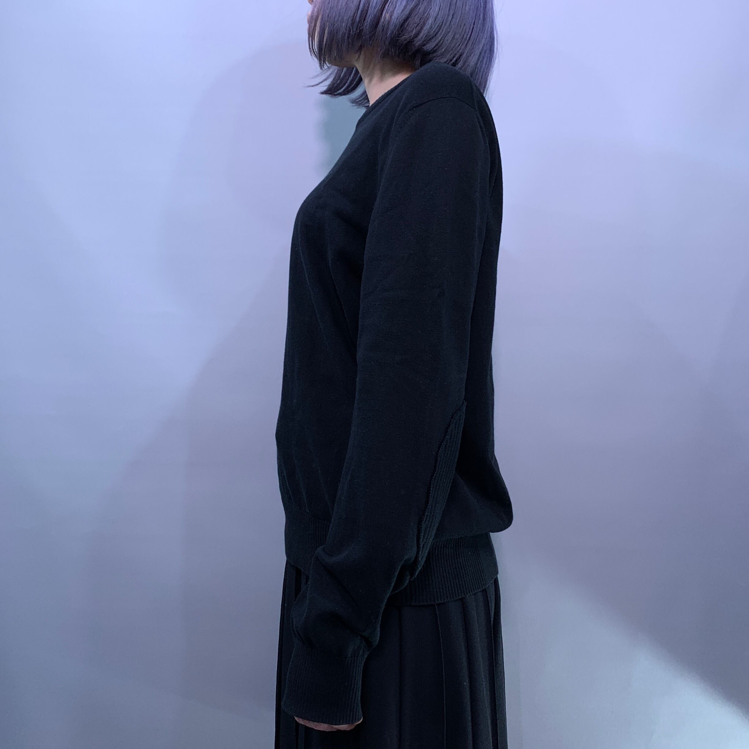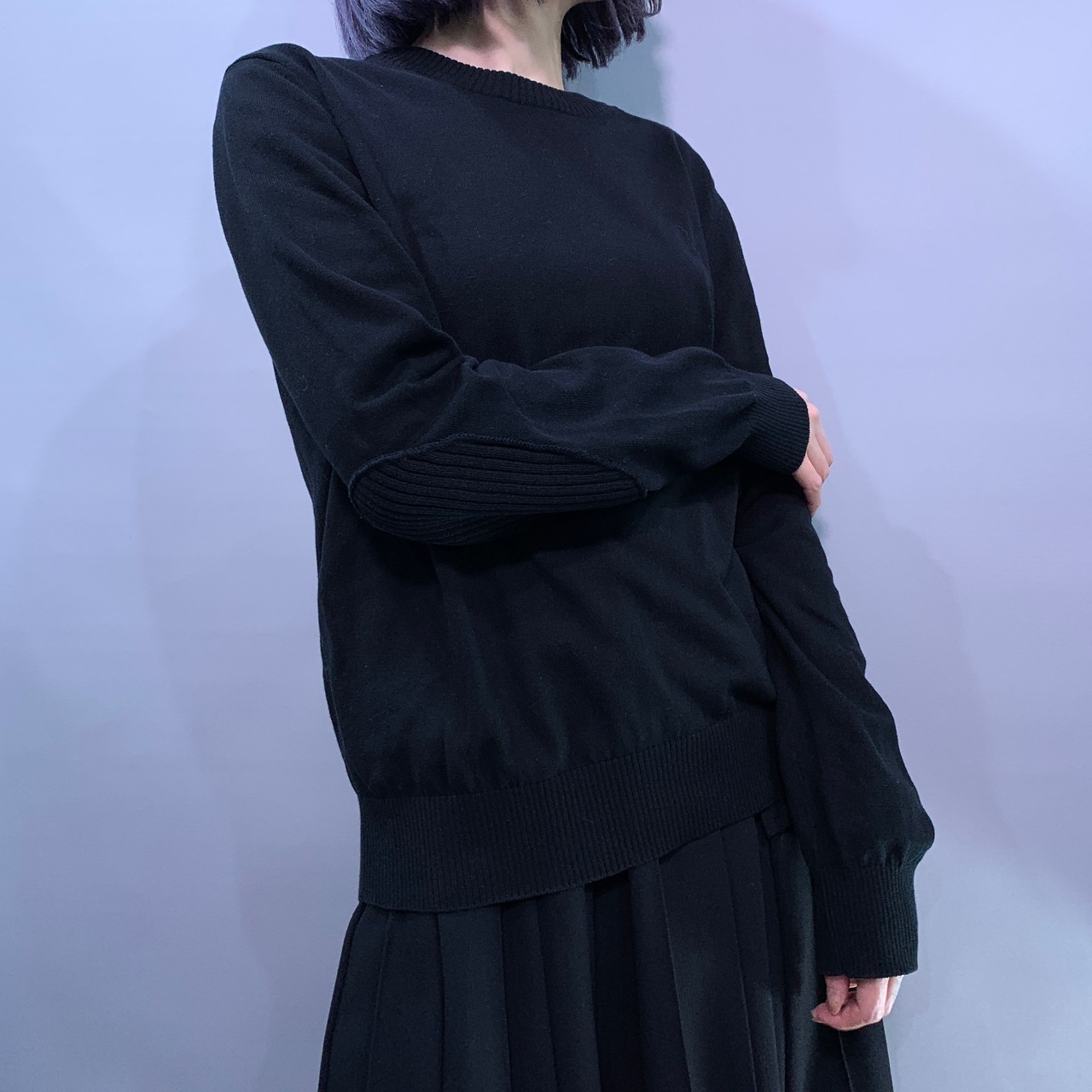 コーディネイトにワンポイントお洒落を追加するマルジェラのエルボーパッチニットソー。無駄を削ぎ落としたミニマルなデザインに深いブラックが絶妙な存在感を放つまさに一級品です。