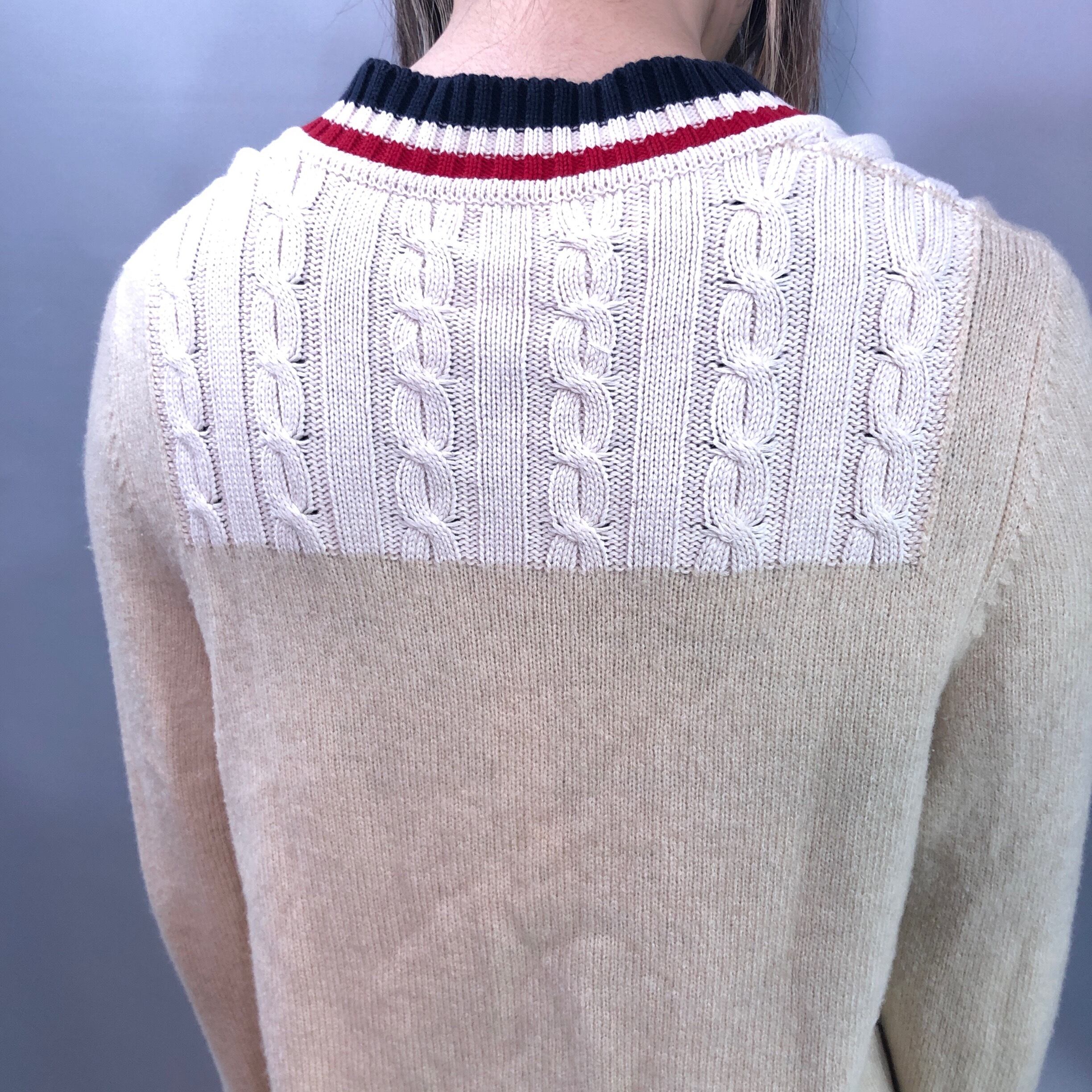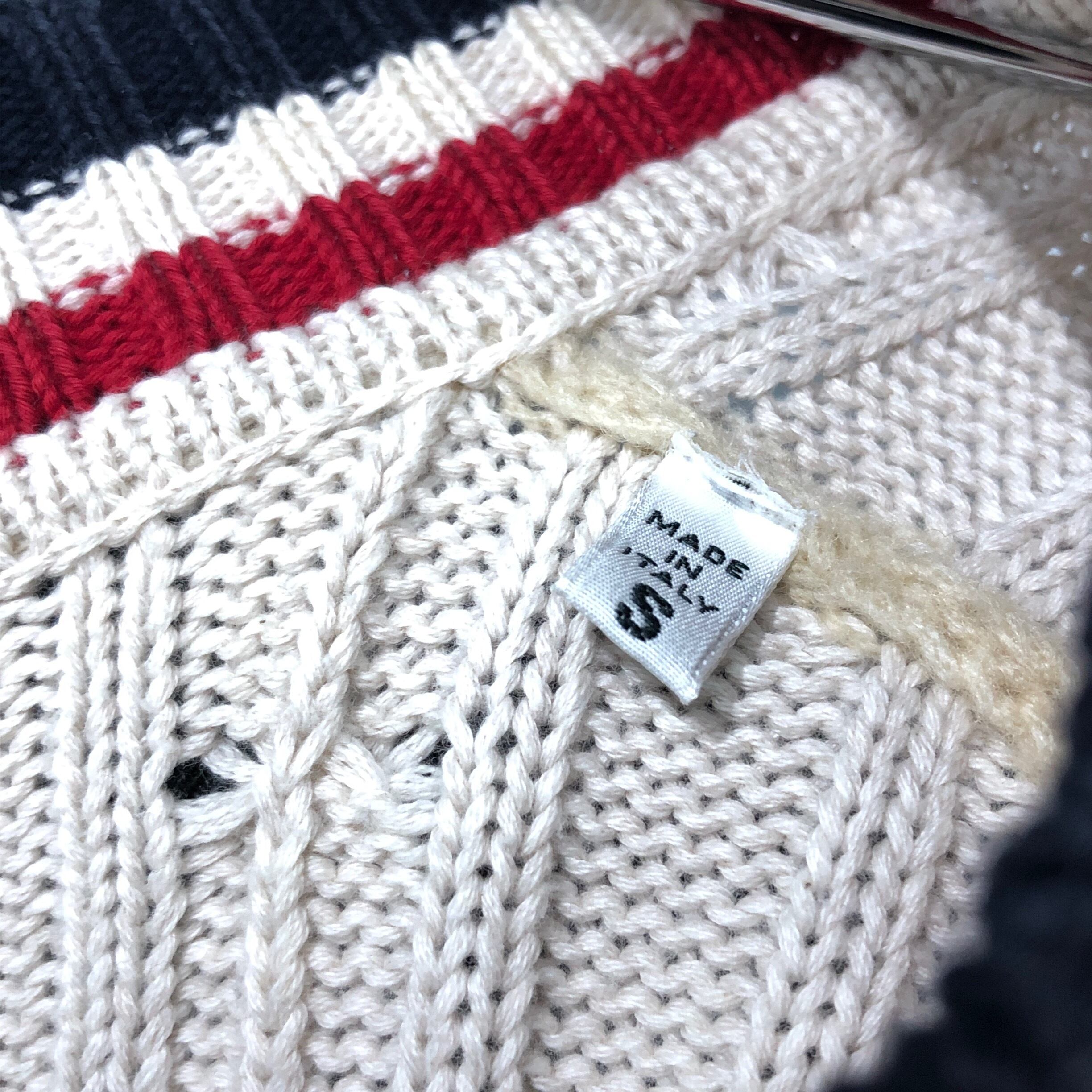 異なる素材の毛で仕上げられたチルデンニット。クラシカルな雰囲気を醸しつつブランドらしいデザインが際立ちます。コンディション良好、これまでマルジェラを買ったことがないという方にもオススメできるアイテムです。