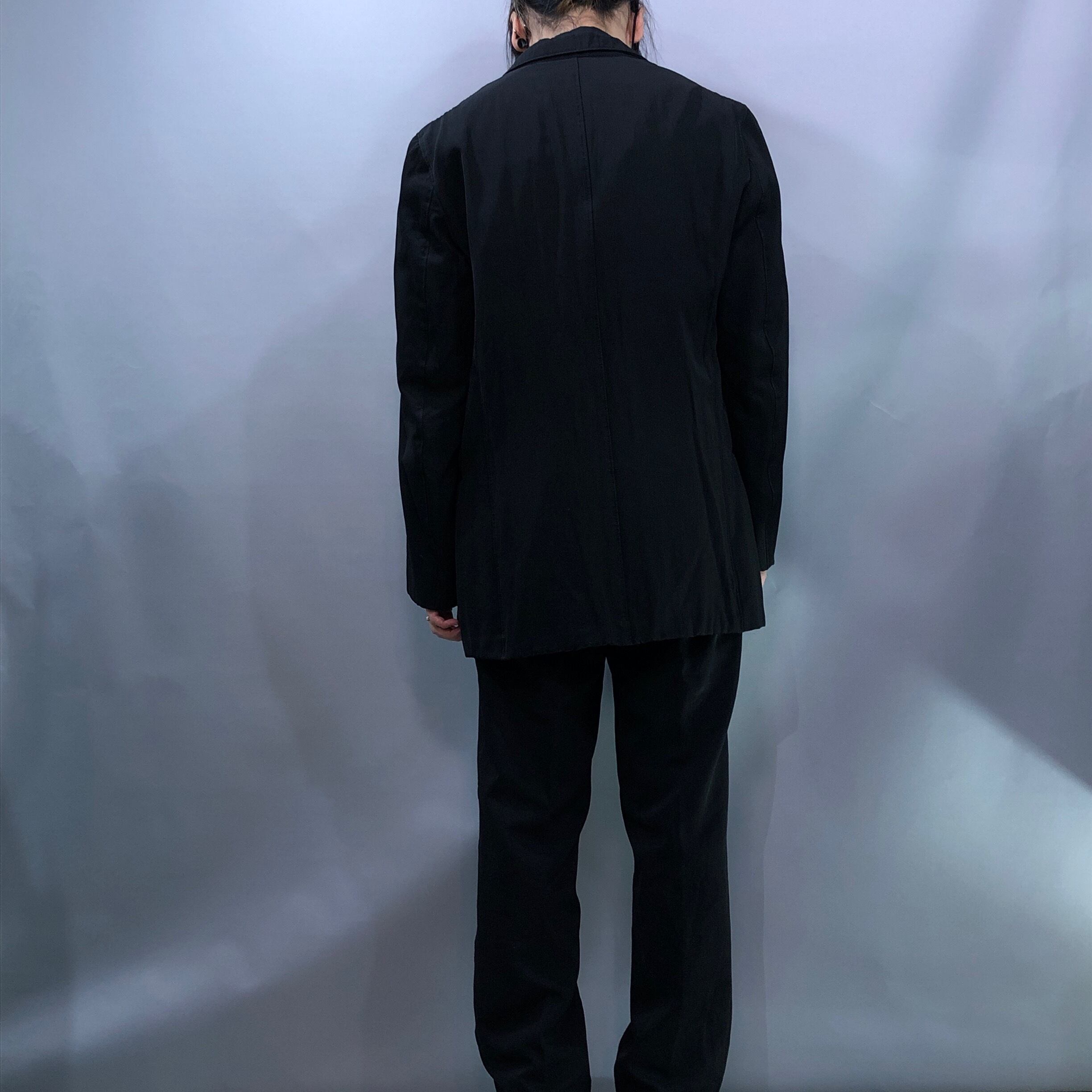 ポリ×コットン混合素材でしっかりとした作りで、ジャケット、パンツともに一枚でお使いいただいても様になる一着となっております。