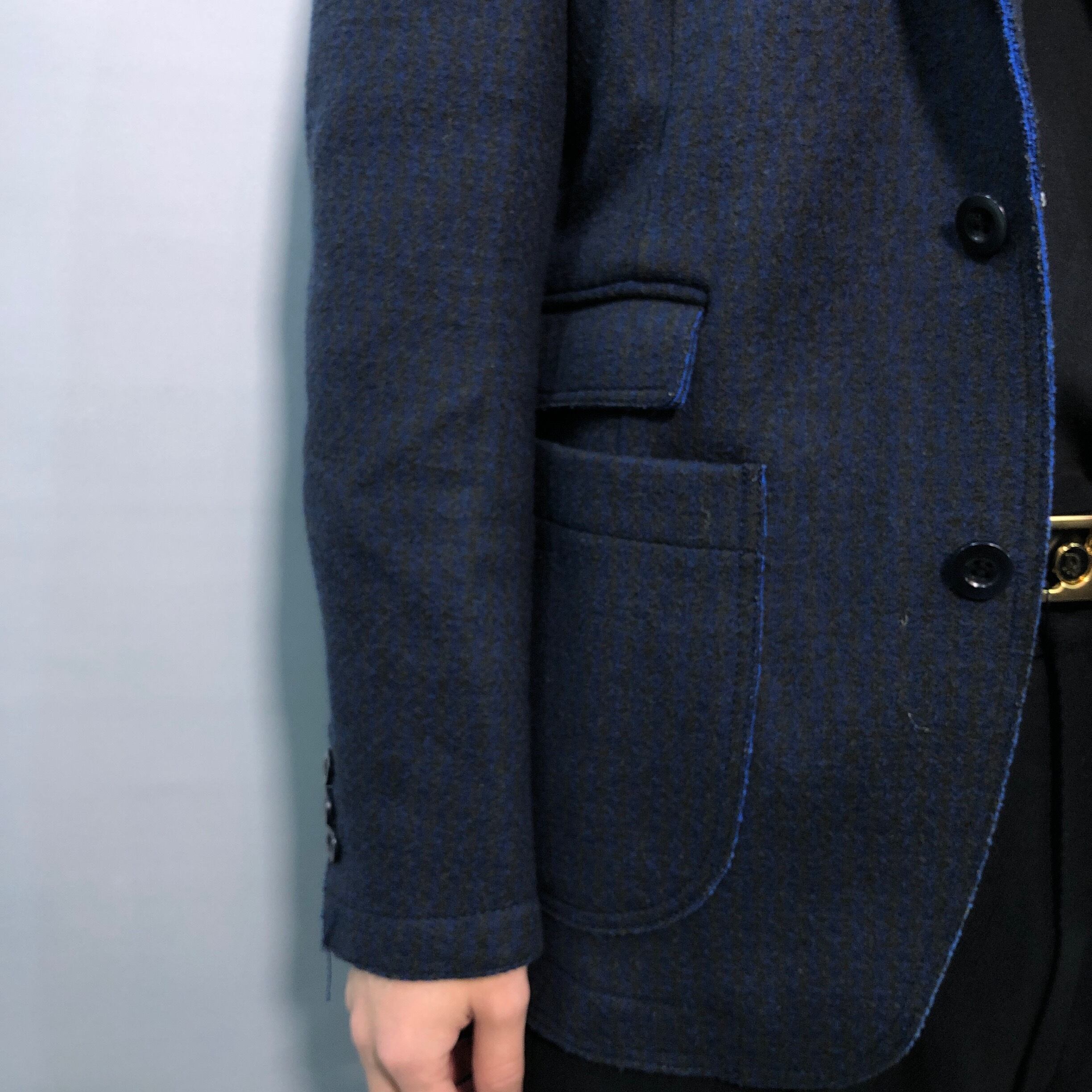 美しいシルエットで高級感溢れるウール素材で仕立て、チンストラップを使い着回し力にも優れており、シーズン変わり目のスイッチアイテムとしても大変重宝する一着です。