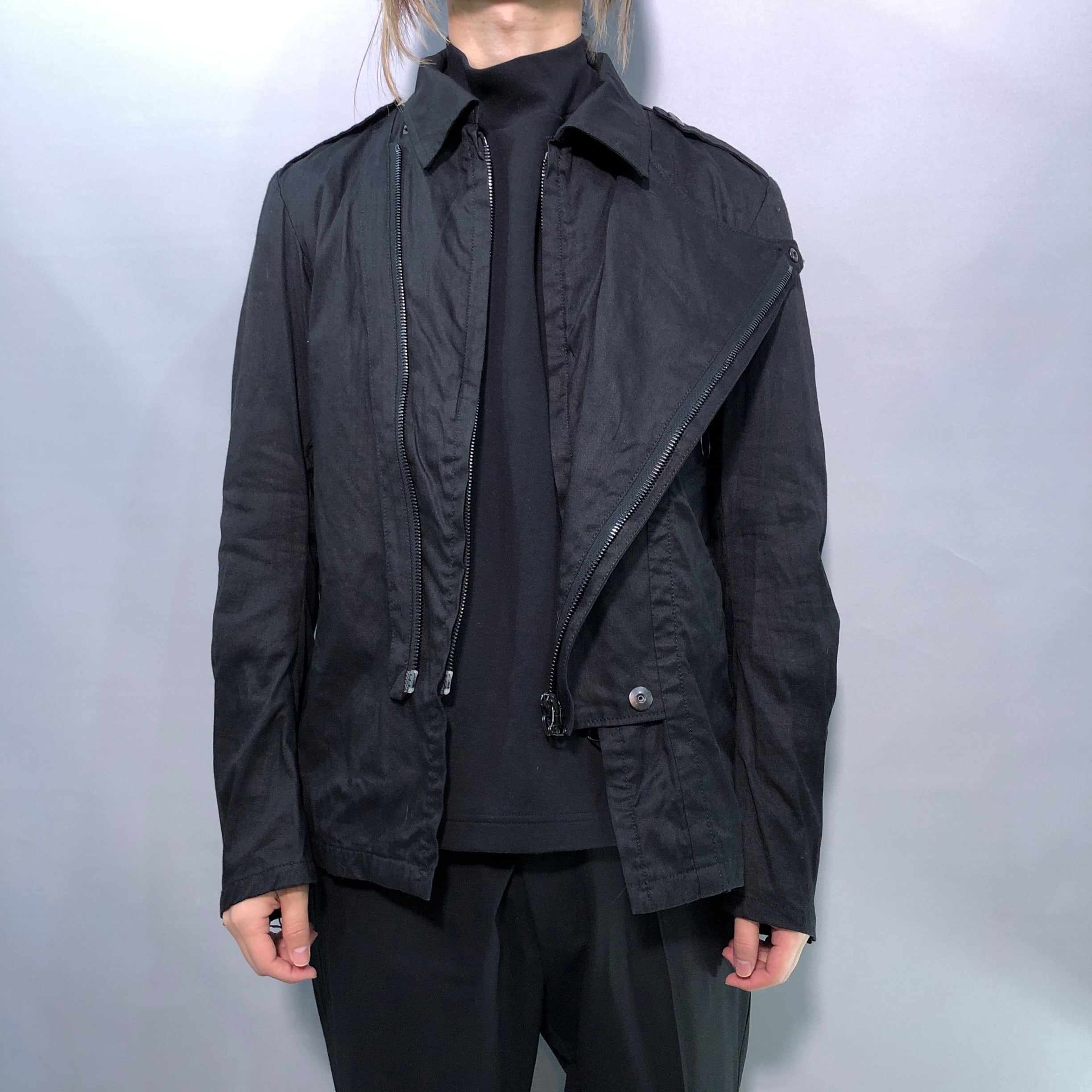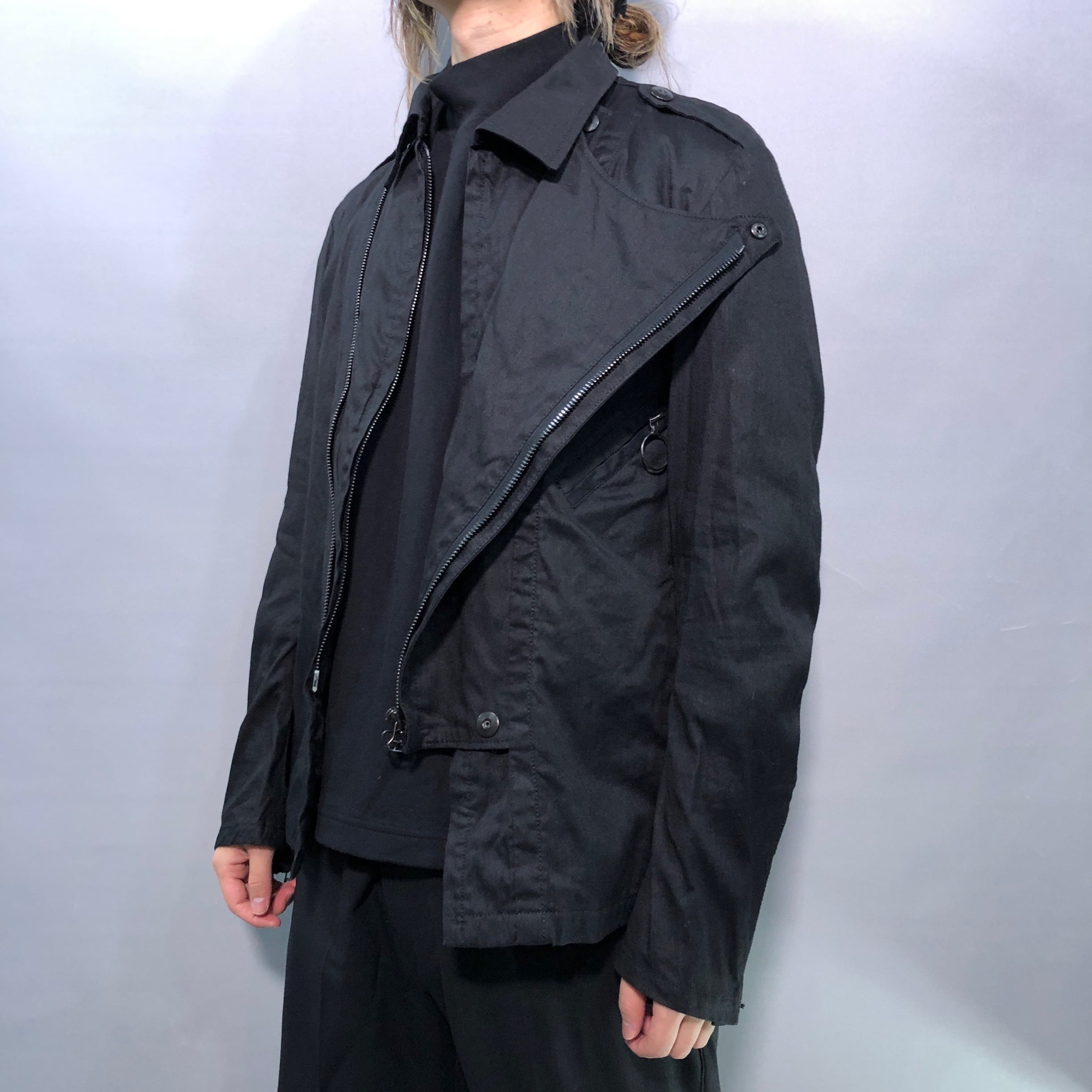 アシンメトリーな随所のジップ、大きめの襟、見頃の形などどれをとっても他者の追随を許さない唯一無二のデザイン。羽織るだけでストリートモードを感じることが出来るアイテムです。