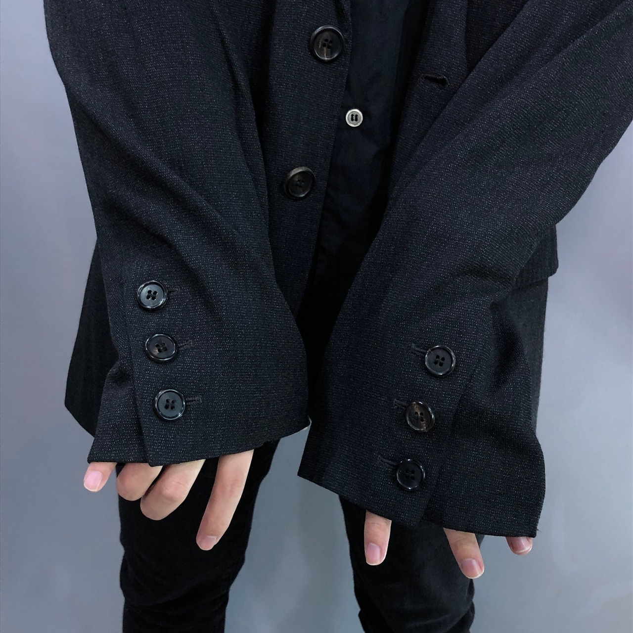 ロックとモードの雰囲気が混在するアンニュイなジャケット。スリムなシルエットと繊細な作りがデザイナーのこだわりを感じる逸品です。